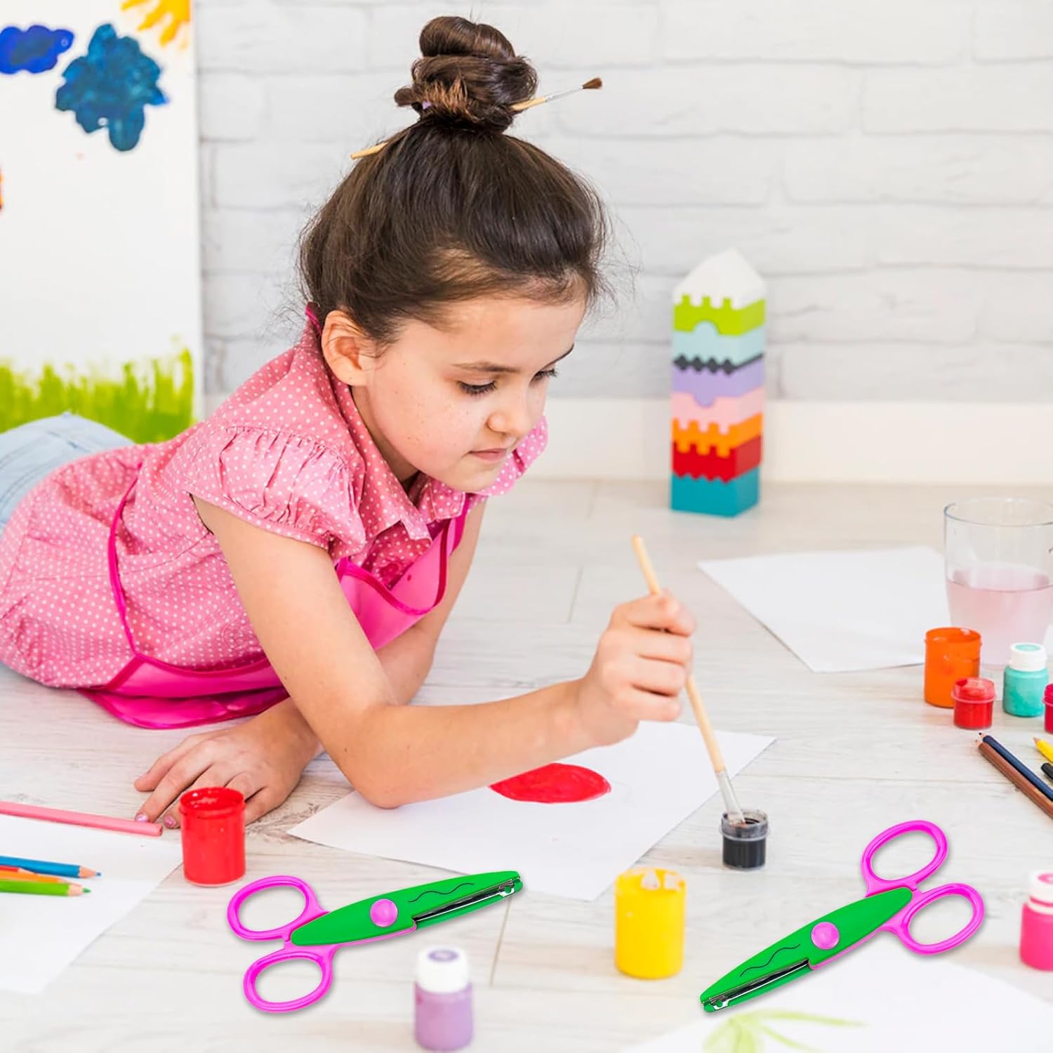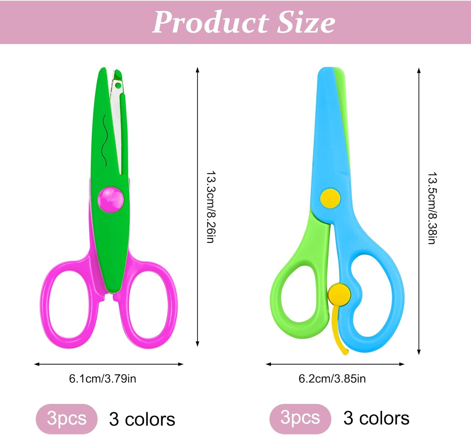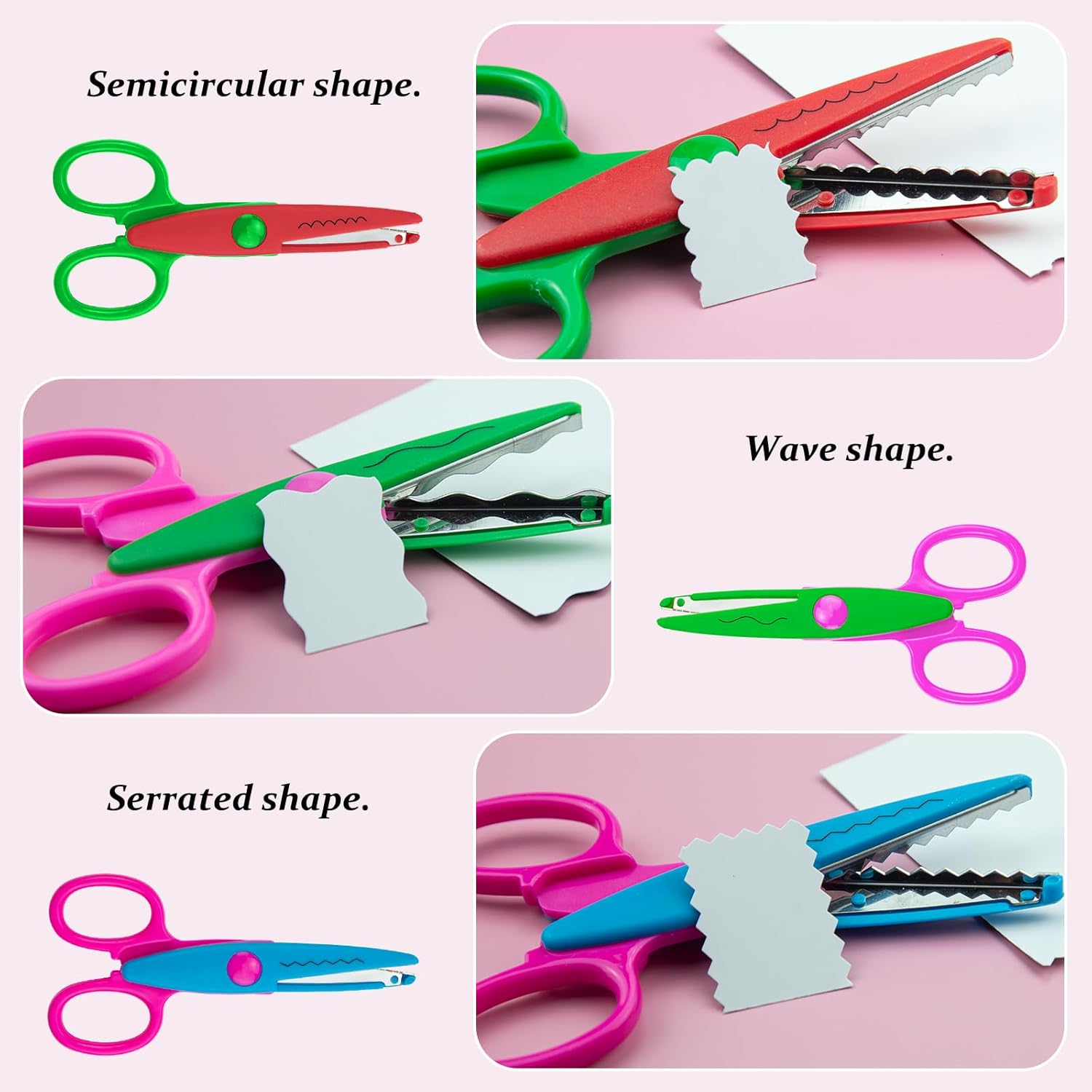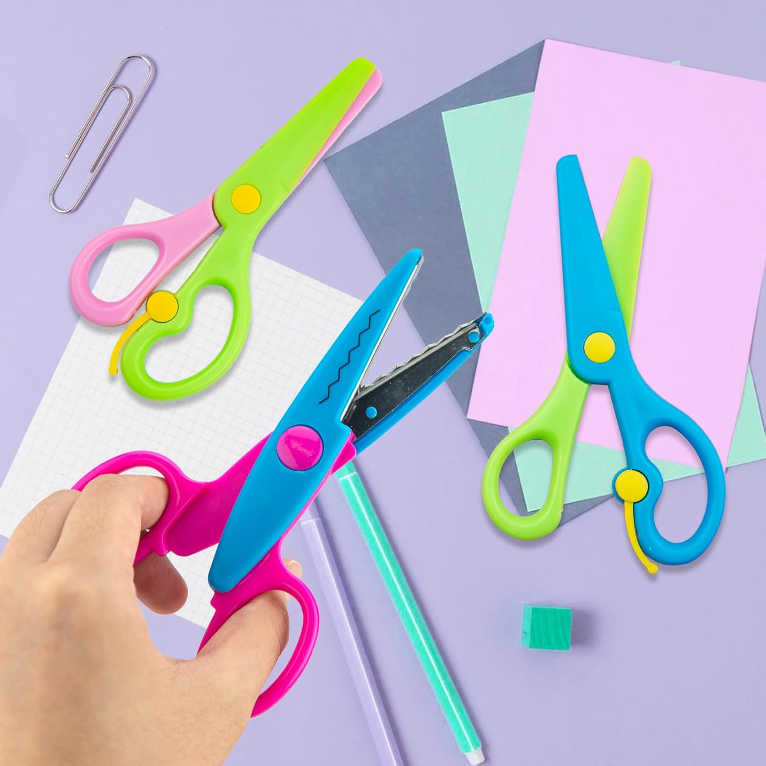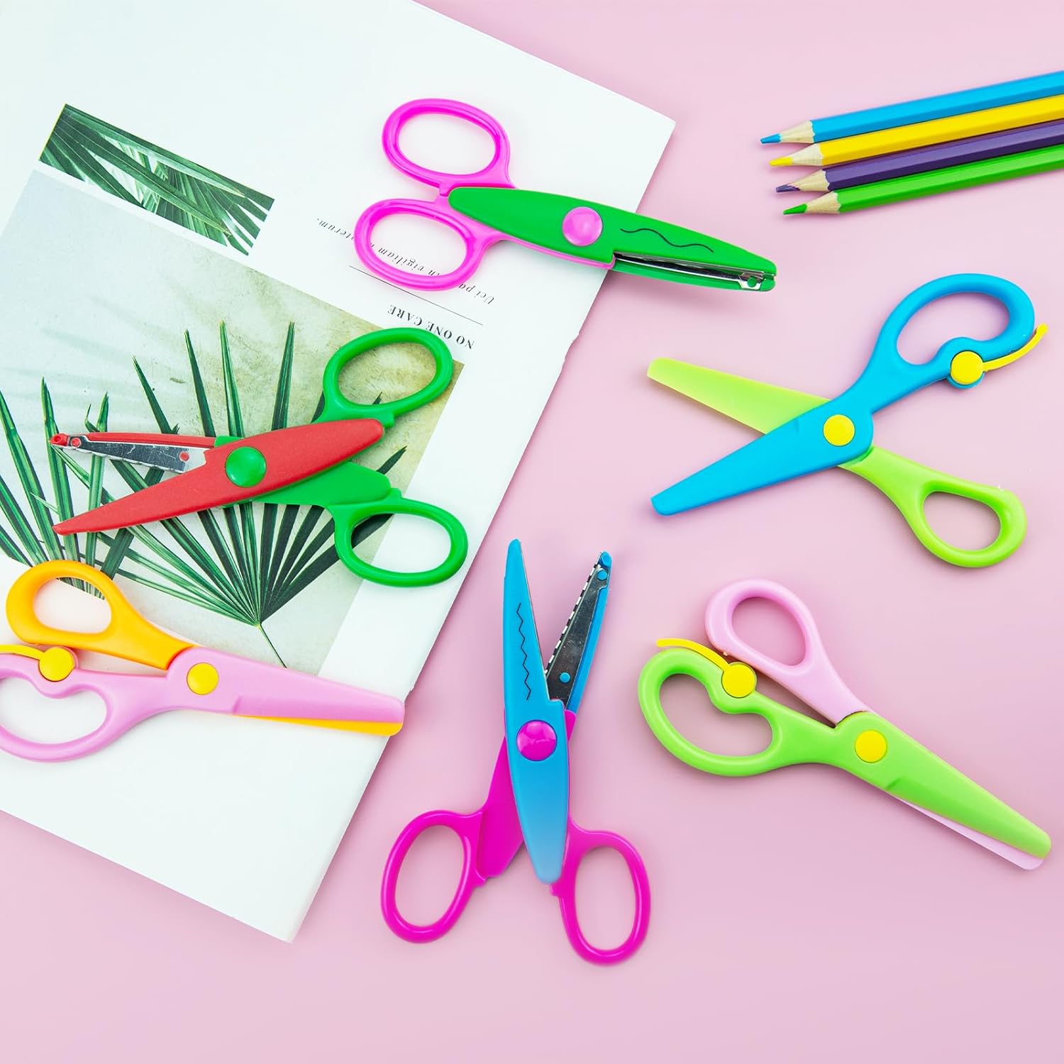 La confezione include: 6 set di forbici di sicurezza per bambini, tra cui 3 forbici seghettate per bambini e 3 forbici per bambini. Due diverse forbici per bambini sono sufficienti per soddisfare le esigenze creative dei bambini. Le forbici per bambini portano divertimento e attrazione ai bambini. Materiale di alta qualità: queste forbici di sicurezza per bambini sono realizzate in plastica PP di alta qualità e acciaio inossidabile. Le forbici per bambini possono tagliare carta o carte, quindi non devi preoccuparti di ferire i tuoi bambini. Design sicuro: la testa delle nostre forbici per bambini è rotonda e l'esterno delle forbici per bambini è completamente coperto da un guscio di plastica per evitare che i bambini vengano feriti da lame affilate, in modo che i bambini possano godersi la gioia di lavorare. Forme multiple: il nostro set di forbici per bambini ha 6 diversi colori di forbici e quattro diverse forme di ingranaggi, tra cui tipo castello, semicircolare, dentellatura grande e tipo di timbro postale. È possibile progettare vari mestieri per stimolare l'immaginazione dei bambini. Ampiamente uso: le forbici artistiche sono adatte per insegnanti, studenti e bambini in età prescolare nella formazione manuale. È possibile utilizzare le forbici per bambini per album di ritagli fai da te, album fotografici, biglietti e opere d'arte per bambini. Utilizzando queste forbici di sicurezza per coltivare l'immaginazione e le abilità pratiche del bambino.