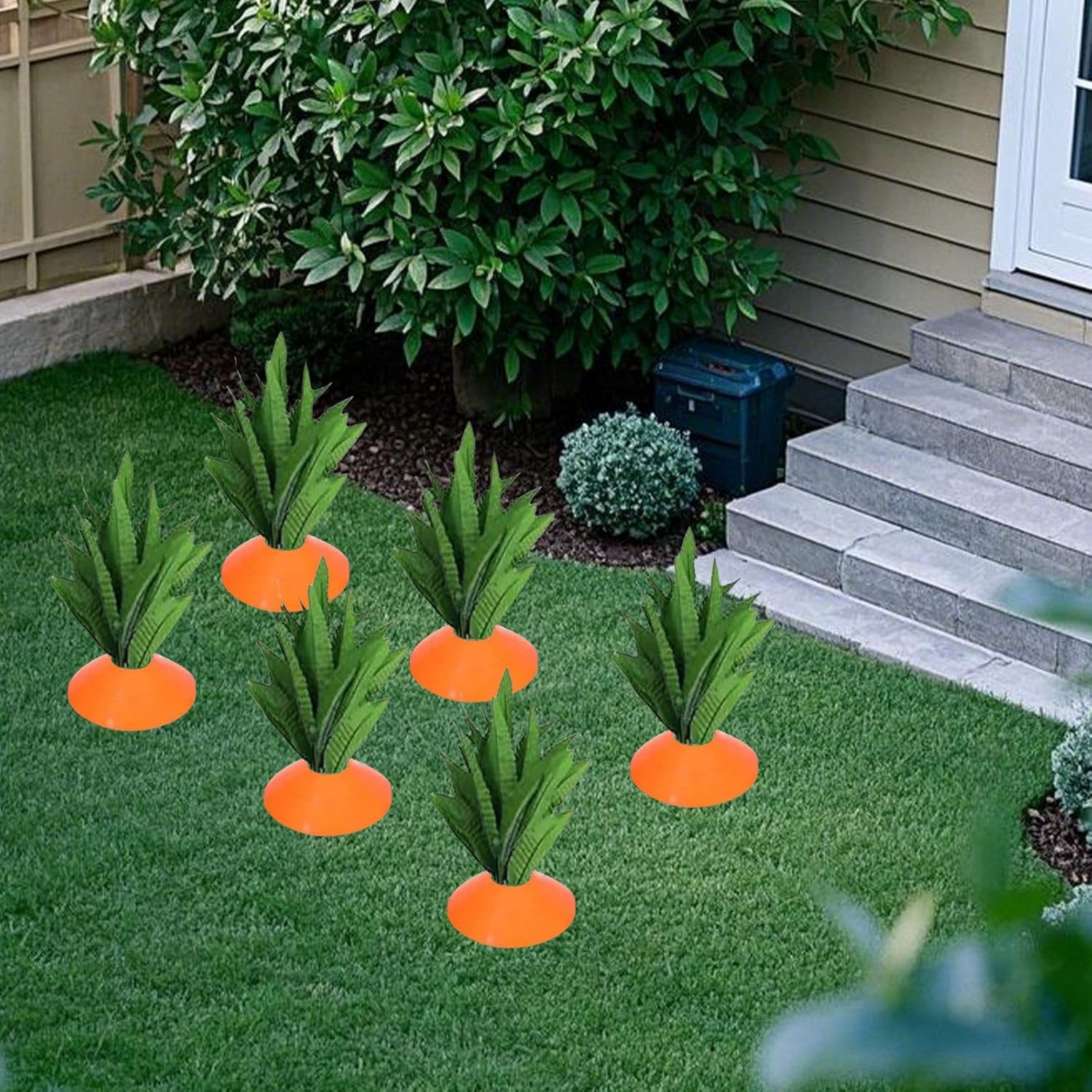 Luminose e accattivanti: con disegni colorati di carote e coniglietti, queste decorazioni si distinguono nel tuo giardino, attirando l'attenzione e aggiungendo un'atmosfera giocosa e festosa a qualsiasi spazio esterno o interno Durevole e resistente alle intemperie: realizzato in plastica PE di alta qualità con foglie in fiori di seta, i nostri cartelli a forma di carota sono e durevoli, garantendo un uso a lungo termine in una varietà di condizioni esterne Facile installazione e posizionamento versatile: con robusti pali in fibra di vetro, queste decorazioni sono da installare inserendole nel terreno. Sono ideali per decorare prati, giardini, portici, terrazze, aiuole o in vaso Fai da te: il set di decorazioni fai da te a forma di carota con felci ti consente di migliorare facilmente le tue celebrazioni pasquali
