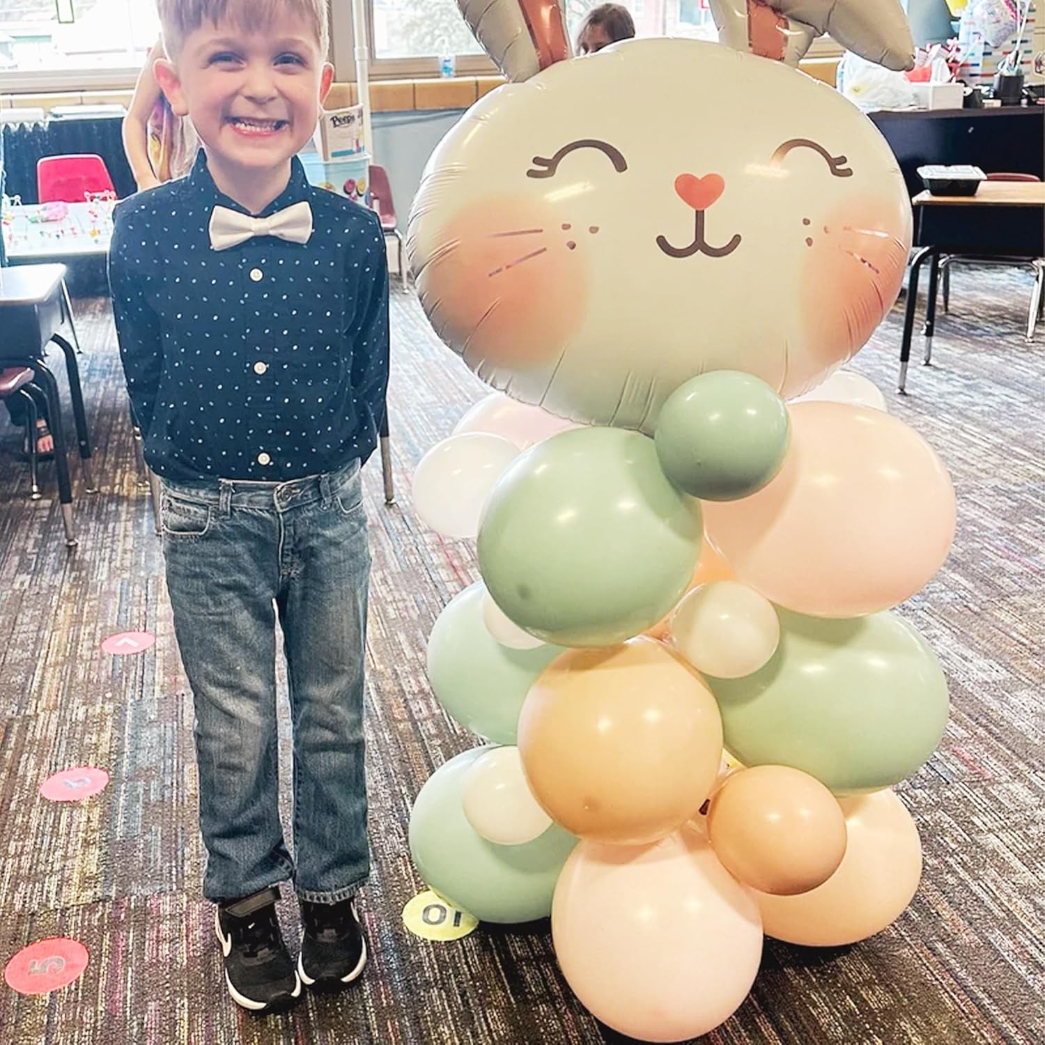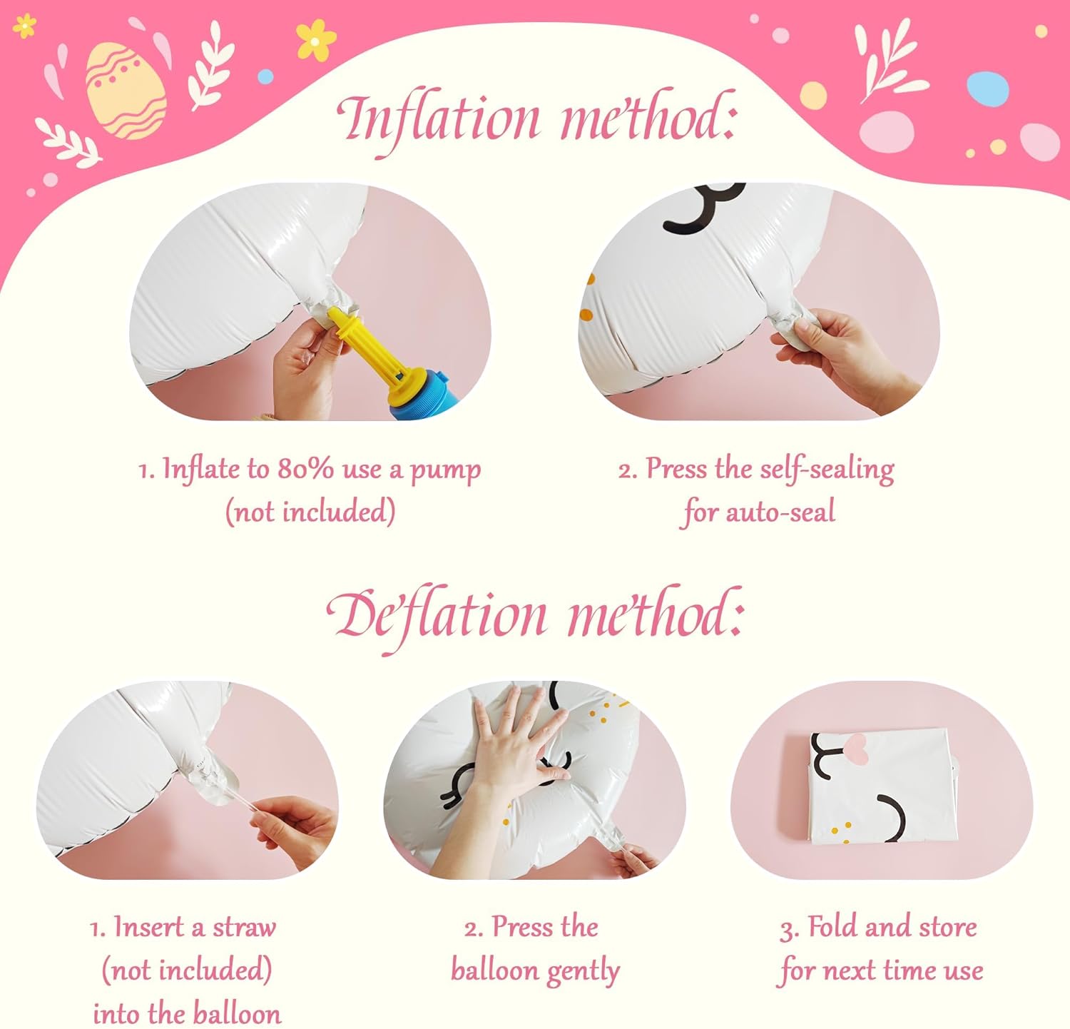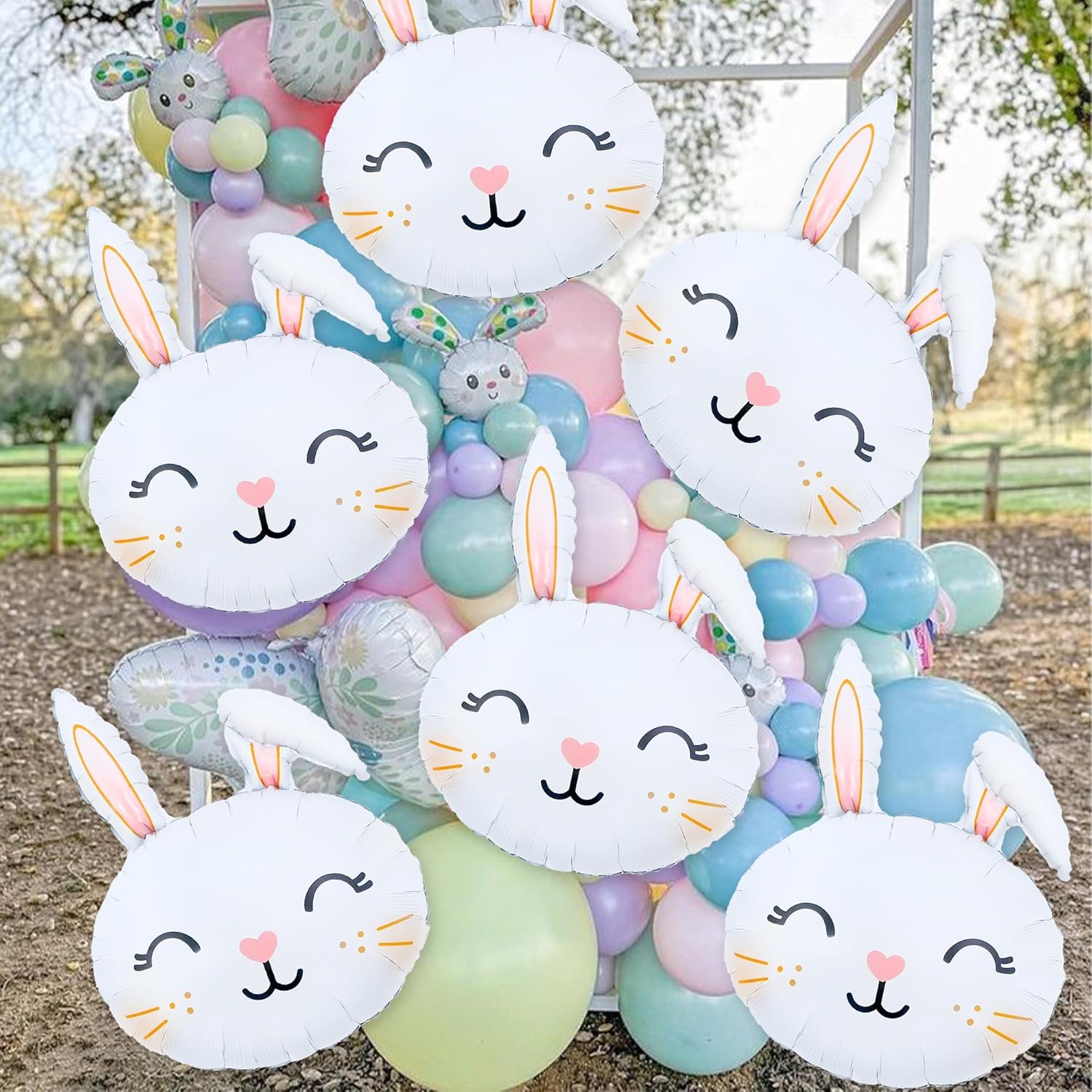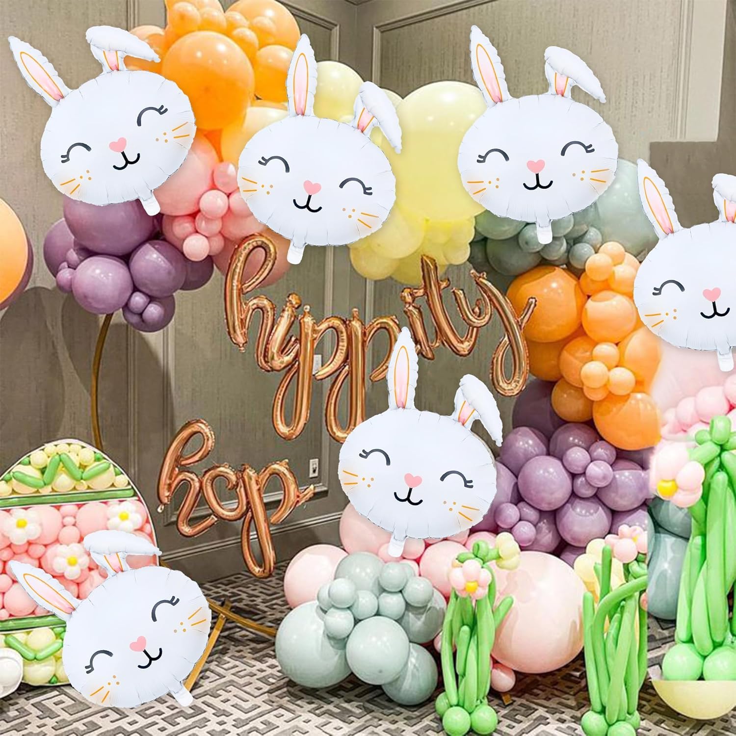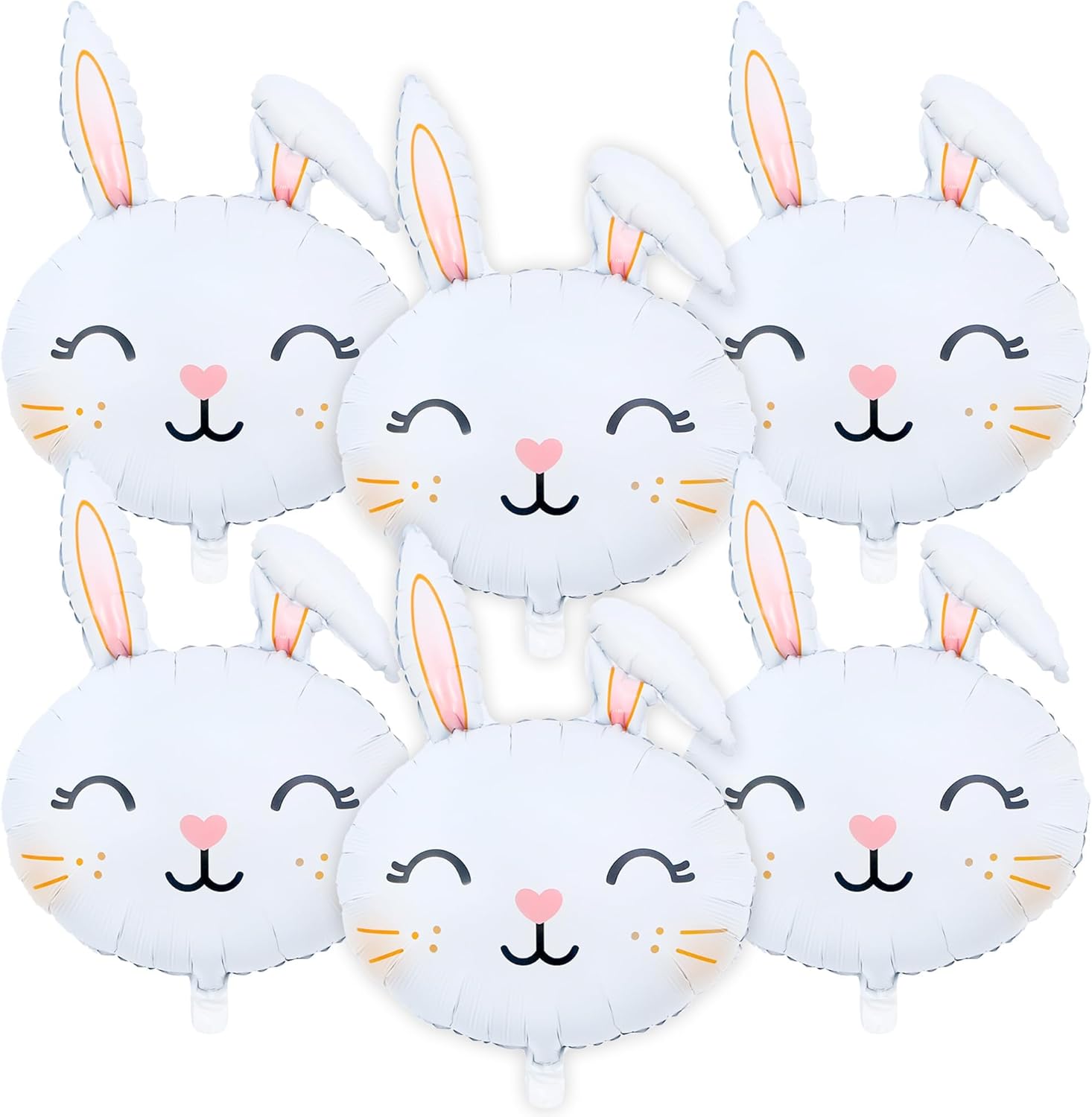 Easter must have: simpatici palloncini a forma di coniglietto pasquale, rendono il vostro bambino Pasqua, foresta, primavera, battesimo o festa di compleanno indimenticabile. Resistenti e riutilizzabili: questi bellissimi palloncini in Mylar a forma di coniglio sono realizzati in pellicola di alluminio spessa di alta qualità, con un'apertura autosigillante, e una valvola di scarico e ricaricabile, rendendoli riutilizzabili. Leggero, superficie liscia, colore brillante, sicuro, non facile da perdite, e durevole per un lungo periodo di tempo (2 settimane piene d'aria) FACILE DA USARE: questi palloncini a forma di coniglietto hanno un'apertura autosigillante e possono essere chiusi una volta gonfiati schiacciando, il che è molto pratico. Occasioni versatili: questi palloncini giganti con testa di coniglio sono versatili. È possibile appendere i palloncini, incollarli alla parete, al corridoio, alla veranda o al prato, posizionarli all'aperto o semplicemente portarli con sé come accessorio fotografico, è possibile creare qualsiasi stile da soli Rendi la tua festa vivace, bella e felice! Prezioso set: il set di decorazioni pasquali contiene 6 palloncini a forma di coniglio con testa di coniglio, con 20 punti adesivi, un rotolo di nastro e una paglia da 3,15 pollici, un grande set di palloncini pasquali per la festa.