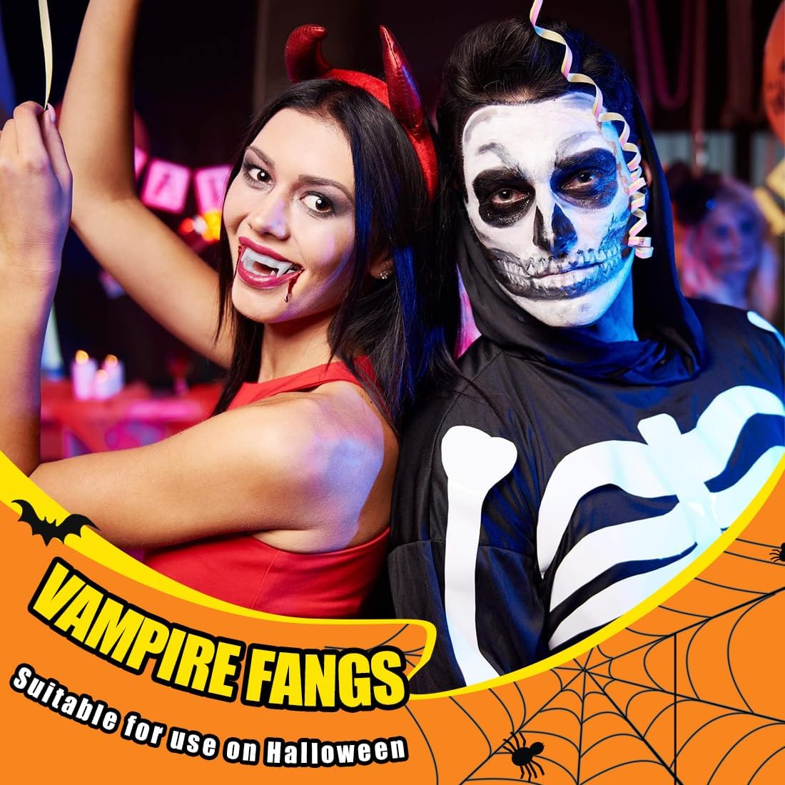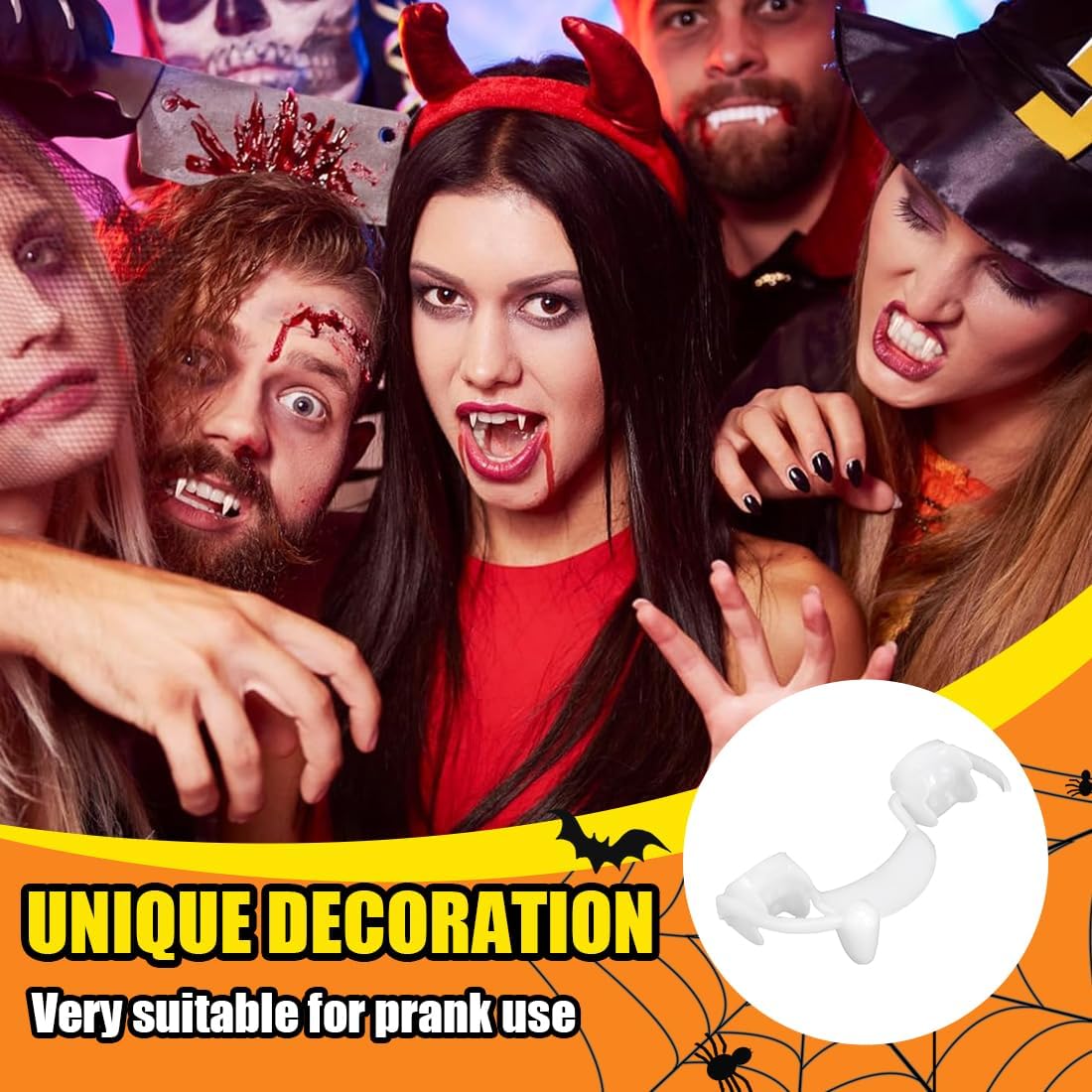 Oggetti di scena realistici per Halloween: le nostre zanne di Halloween hanno un design unico; indossarle ti trasporterà immediatamente nel terrificante e reale mondo dei vampiri, rendendo il tuo gioco di ruolo di Halloween più realistico. Materiale:Il nostro materiale è realizzato in silicone di alta qualità, che è sicuro, durevole, lavabile e riutilizzabile e non danneggerà le gengive. Ampia applicazione: queste zanne da vampiro non possono essere utilizzate solo nella vita quotidiana, ma sono adatte anche per Halloween, feste in maschera, giochi di scherzi, feste a tema fantasmi e horror, abbinandosi al tuo costume da vampiro. Regalo unico di Halloween:I nostri accessori per protesi sono perfetti per le feste di Halloween e gli scherzi quotidiani. È anche un regalo innovativo per gli amici, che offre divertimento senza fine a te e ai tuoi amici. Suggerimenti: se l'allineatore è troppo largo, è possibile tagliarlo lungo il bordo gengivale con le forbici. Tenere questo prodotto lontano dalla portata di neonati e bambini piccoli per evitare l'ingestione accidentale.