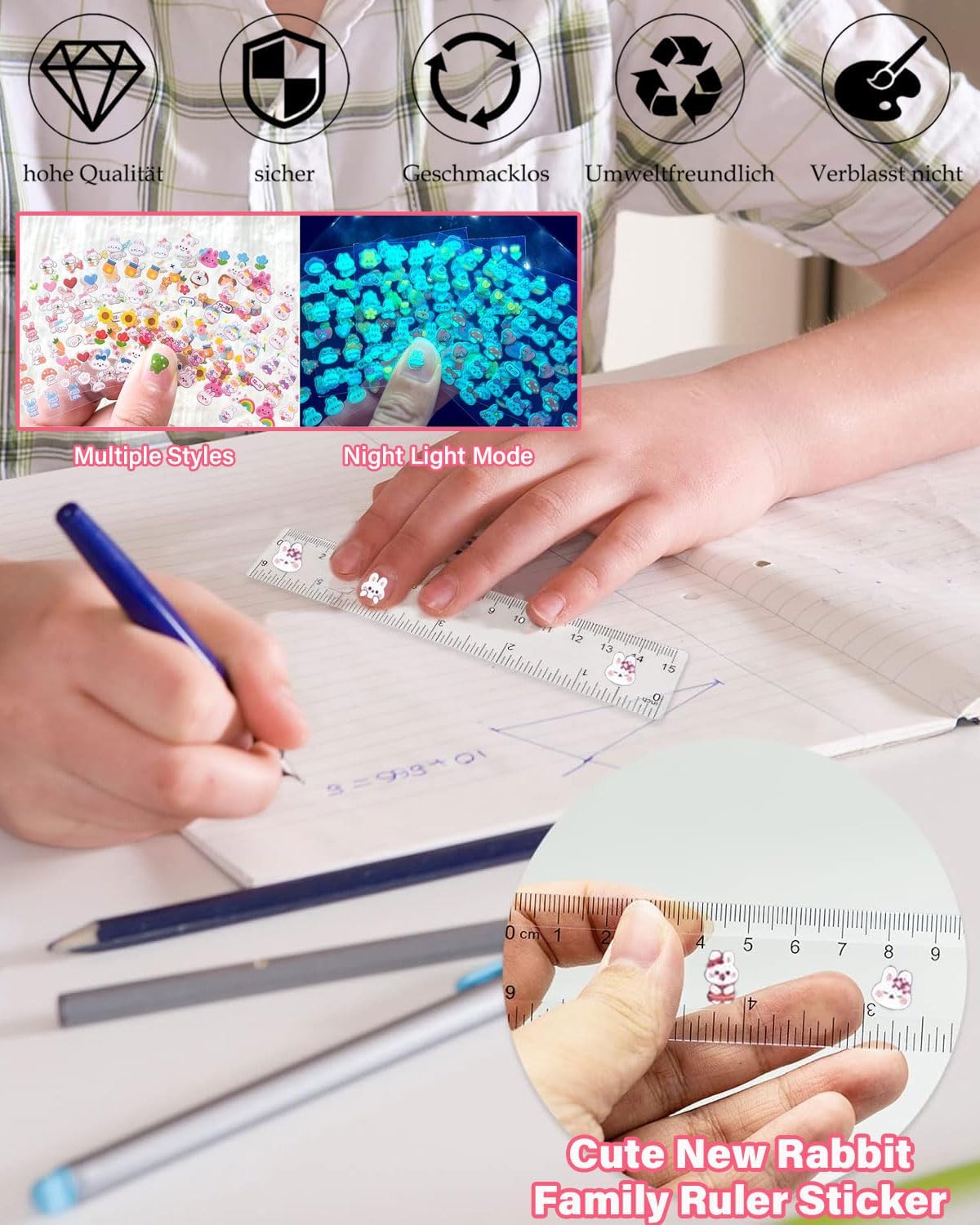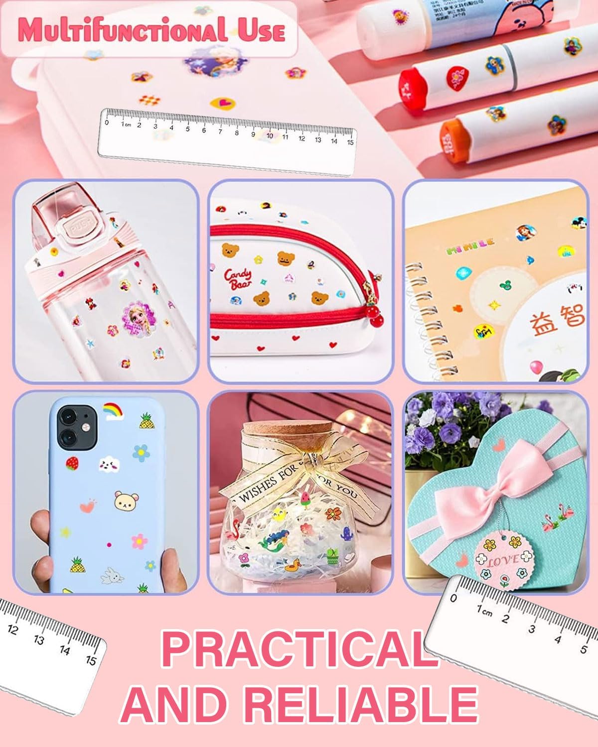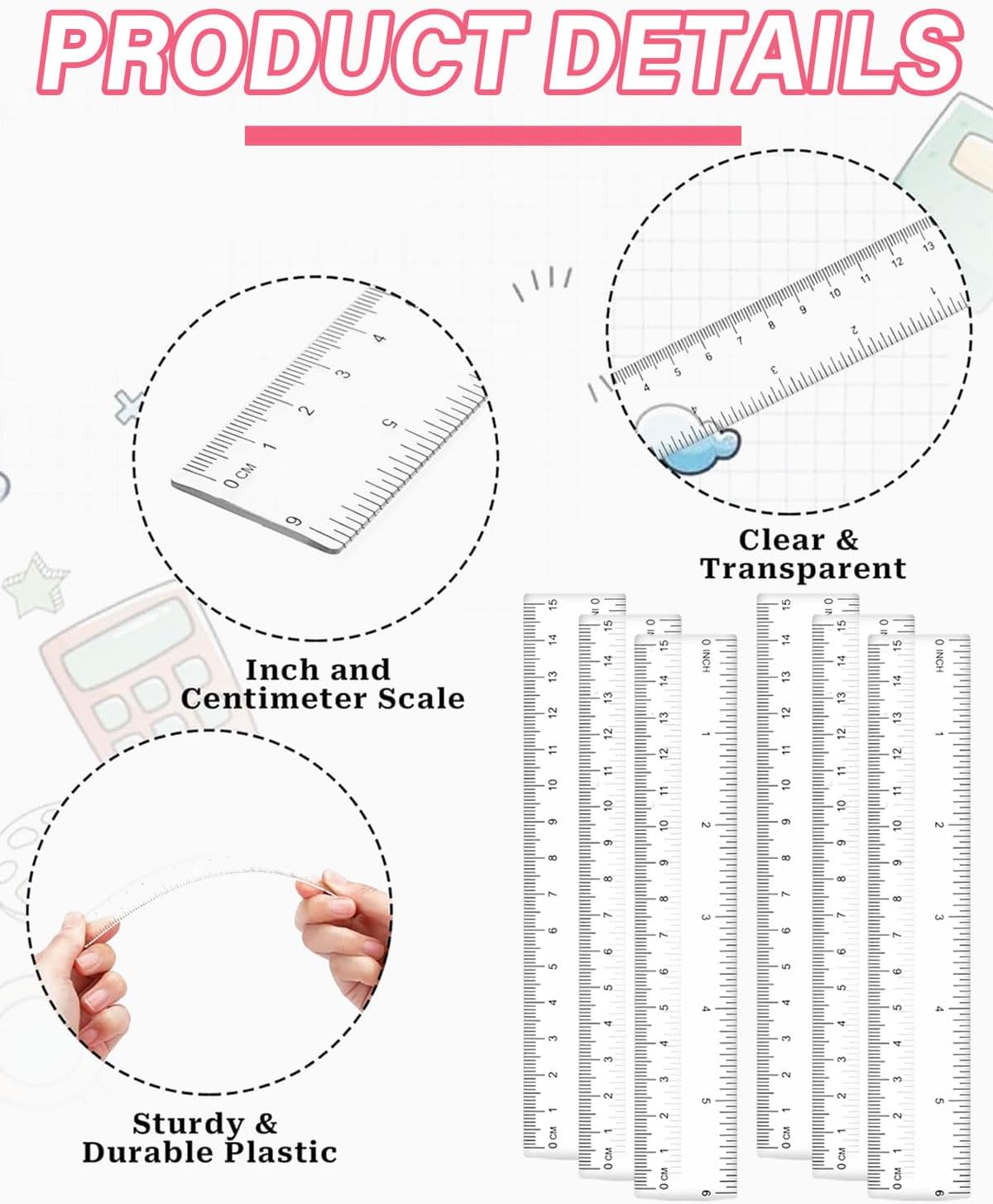 Design compatto: il nostro set include 6 comodi righelli e 5 adorabili adesivi, perfetti per i viaggi o l'uso quotidiano. Utilizzo flessibile: il nostro righello è adattabile e si piega per soddisfare diverse esigenze. Misurazione precisa: le tacche centimetriche stampate garantiscono una facile lettura per misurazioni accurate su qualsiasi progetto. Materiale robusto e resistente: il nostro righello è realizzato in plastica trasparente di alta qualità, che garantisce una lunga durata. Utilizzo versatile: adatto a vari contesti, a scuola, in ufficio o a casa.