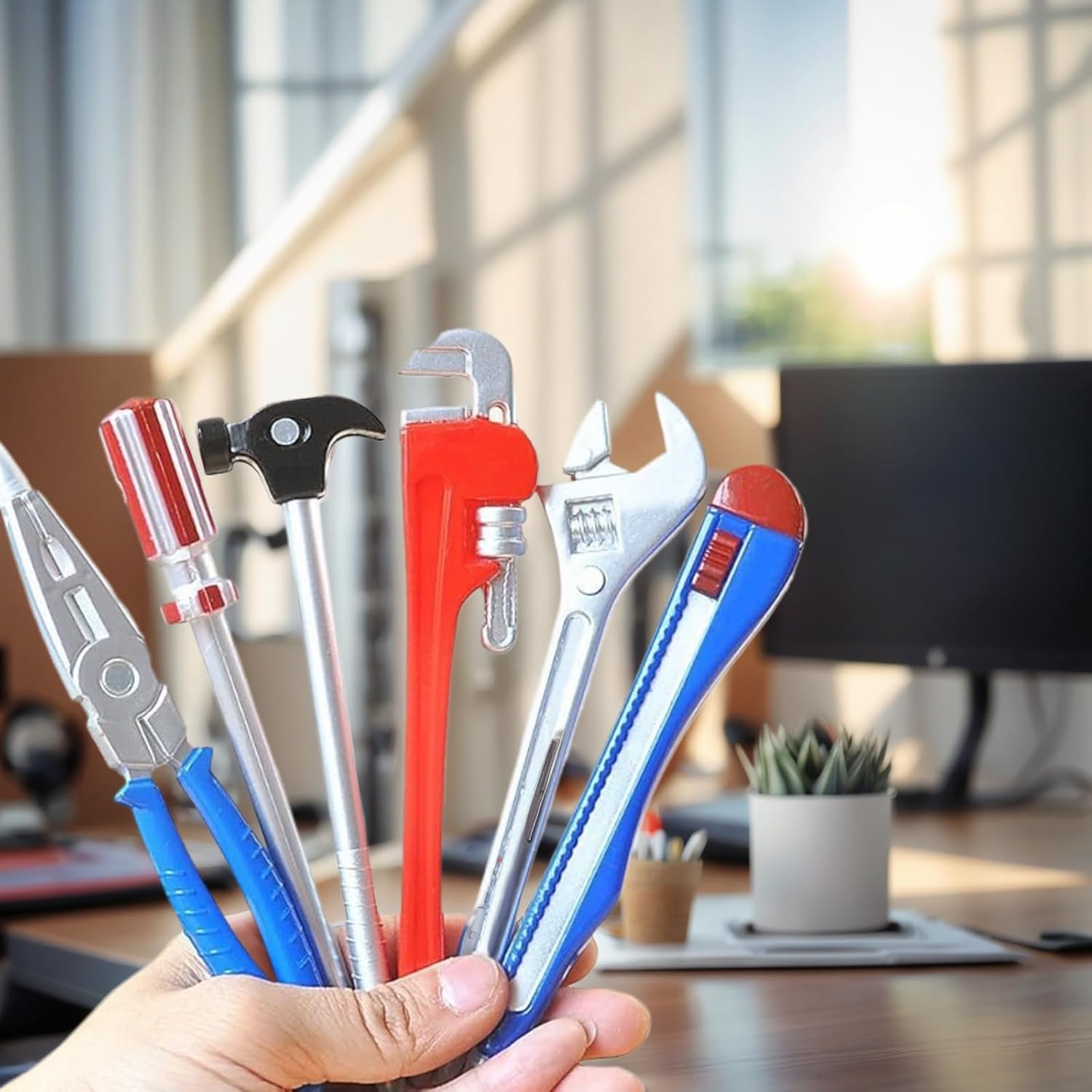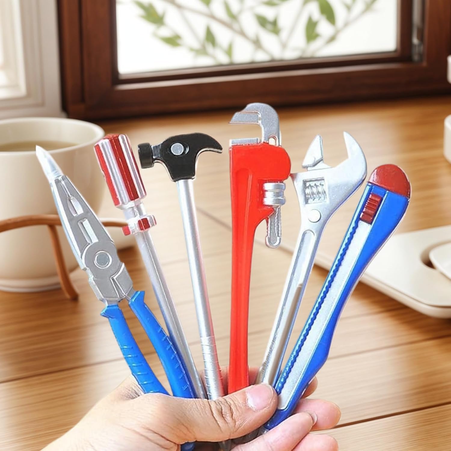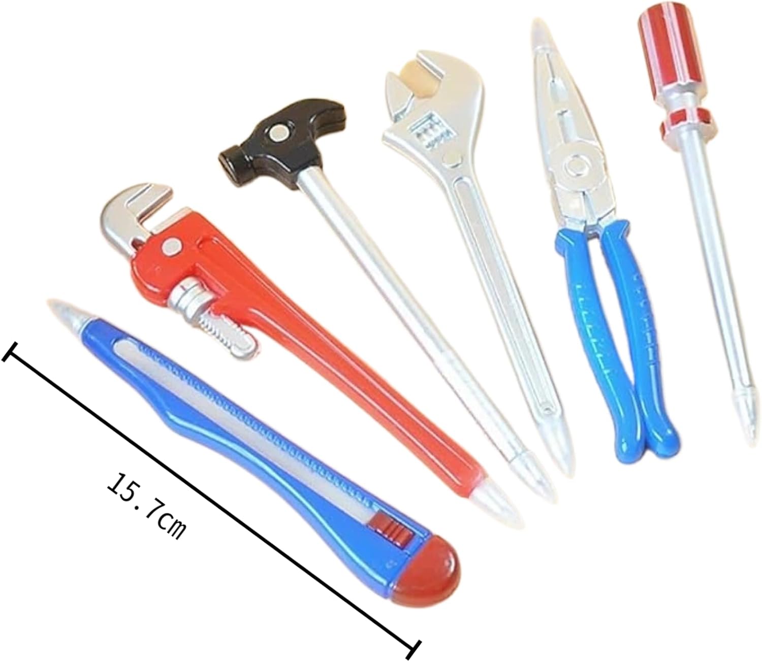 Il pacchetto include: Riceverai 6 penne a sfera nere di diverse forme, la dimensione della penna a sfera è 15,7 cm * 0,9 cm, quantità sufficiente per la tua scrittura. Materiale confortevole: le penne con inchiostro nero sono realizzate in plastica di alta qualità, comode da tenere, facili da scrivere, resistenti e leggere, sicure e divertenti, possono essere facilmente riposte nello zaino o nella borsa della scuola. Design di forme creative: novità di cancelleria, le penne a sfera sono in forme hardware, ci sono chiave inglese, coltello, martello, cacciavite, pinze grandi, morsa, il colore include rosso, blu, argento e così via, vari stili tra cui scegliere . Uso versatile: queste penne sono adatte a vari scopi, tra cui studio, scuola, casa o ufficio. Servono anche come giocattoli divertenti o affascinanti accessori da scrivania. Regalo ideale per la novità: che si tratti di un compleanno, di un'occasione speciale, queste fantastiche penne sono perfette come regali per bambini, studenti, compagni di classe e colleghi. Queste penne originali sono un'eccellente vacanza o un regalo di compleanno, portando un tocco di fantasia a qualsiasi ambiente .