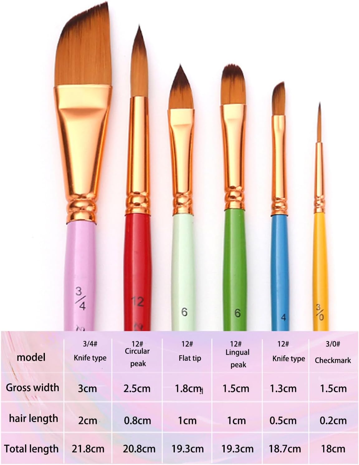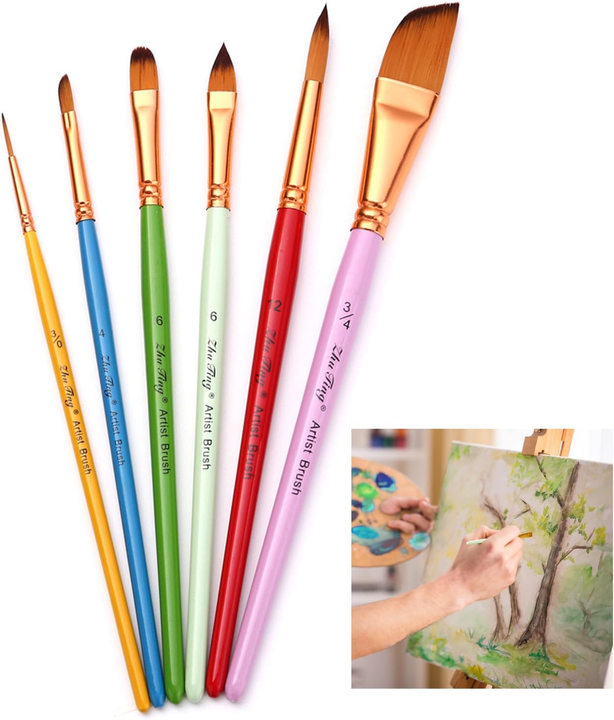 Meraviglioso regalo. Per principianti, studenti, lavoratori artistici e artigiani e artisti professionisti. Facile da lavare con acqua corrente e acqua calda. Consigli: prima dell'uso, si prega di immergere in acqua a bassa temperatura per alcuni minuti PENNELLO PROFESSIONALE. Pennelli professionali per pittura artistica: punta rotonda, piatta, obliqua, punta fine. Adatto per principianti, studenti, bambini e hobbisti. Adatto per principianti, studenti, bambini e hobbisti. Ogni pennello ha le sue dimensioni contrassegnate sul manico, facile da differenziare e utilizzare Facile da usare. Legno di alta qualità e setole in nylon molto grande assorbimento d'acqua, morbido e facile da colorare. Puntali in lega antiruggine sigillati estremamente saldamente che non fuoriescono o si allentano facilmente VERSATILITÀ, PRATICITÀ. 6 tipi di pennelli ad acquerello per varie esigenze di pittura e colorazione. Manico in legno antiscivolo, offre una presa comoda. Soddisfa facilmente varie esigenze di dettaglio, illustrazione, rivestimento, miscelazione Ampia gamma di applicazioni. Set di pennelli professionali per la maggior parte dei tipi di pittura come pittura su viso e corpo, arte murale, pittura a olio/acquerello/acrilico/guazzo, pittura con stencil, pittura su modellini in scala, arte roccia/ceramica/pittura su pietra