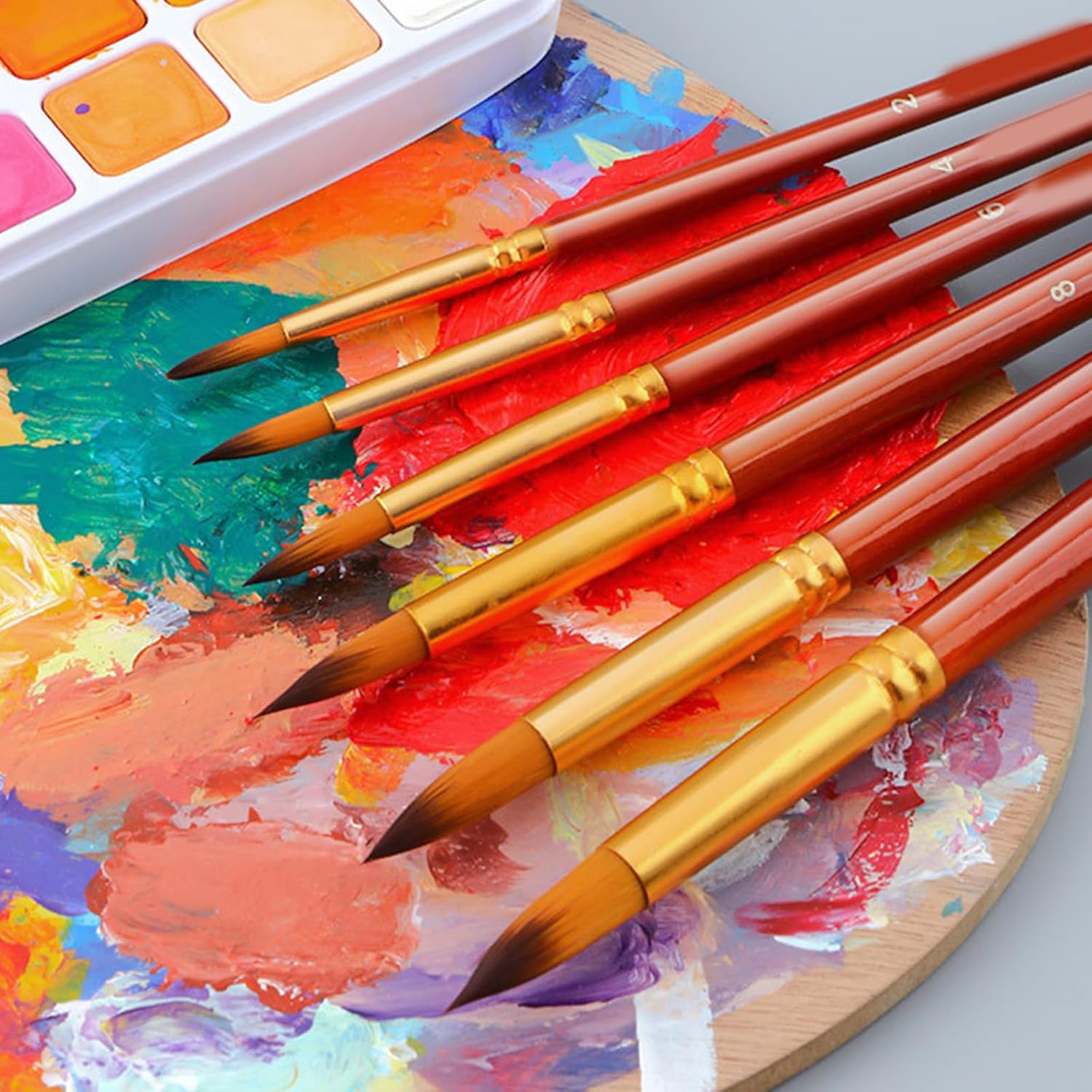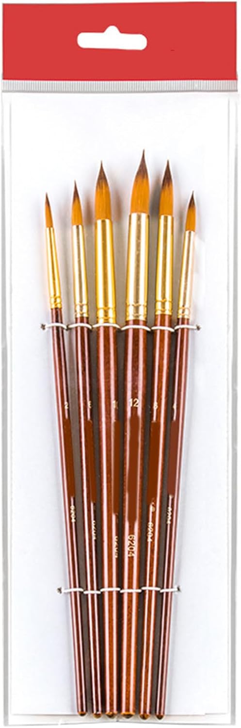 Ideale per artisti professionisti, principianti, hobbisti, studenti, artigiani e artisti professionisti. Facile da lavare con acqua corrente e acqua calda. Quindi utilizzare le dita pettinare delicatamente verso il basso. Posizionamento verticale per l'essiccazione 6 diversi pennelli con manico in legno, con design a punta rotonda, per varie esigenze di pittura, dettaglio, illustrazione e rivestimento, e migliorare la creatività per utenti di diversi livelli di abilità Pennello professionale adatto per pittura su viso e corpo, olio, pittura ad acquerello, acrilici, pittura a guazzo, pittura a stencil, pittura a scala, pittura su roccia su pietra, ansimare su tela e progetti artistici scolastici Realizzato in legno e setole di nylon, buon assorbimento d'acqua, morbido e facile da colorare. Migliora il tuo progetto di pittura con il nostro set di pennelli con manico in legno, progettato per fornire risultati di colorazione professionali, rendendolo un'aggiunta essenziale a qualsiasi kit di strumenti per pittura artistica Il set di pennelli professionali per acquerello con setole in nylon garantisce un'applicazione uniforme del colore e una maggiore durata, ideale per artisti che cercano uno strumento di disegno preofessionale