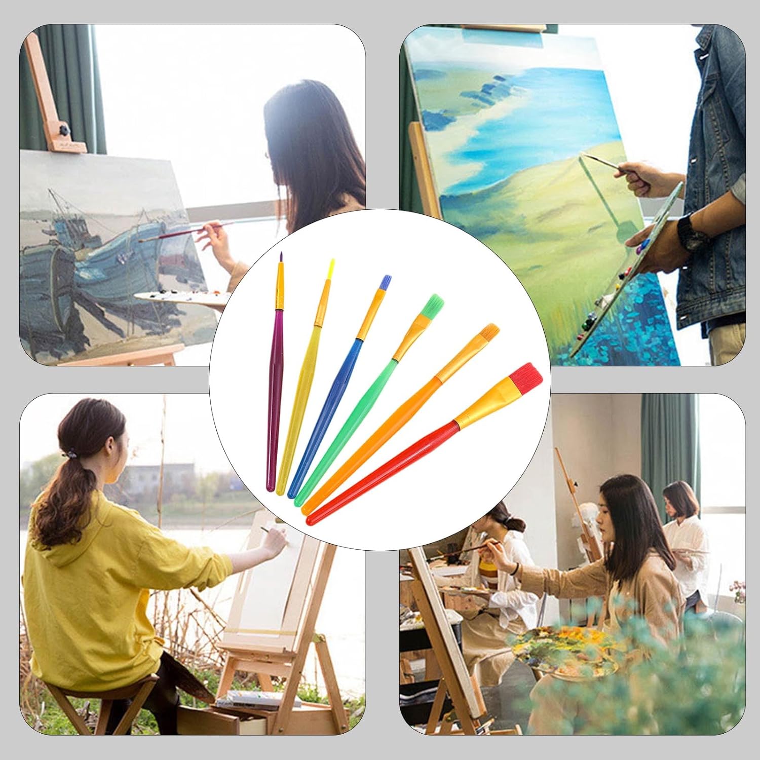 spazzole per pennelli color caramelle: punta piatta, punta fine. Adatto a studenti, bambini e hobbisti che pittura artistica, poster scolastico, progetto artigianale 6 tipi pennelli acquerello per varie necessità pittura e dettagli. Maniglia leggera, offrendo presa comoda. Soddisfare facilmente varie esigenze dettagli, illustrazioni, rivestimento, fusione Fift per studenti, bambini, artisti. Facile da lavare in acqua. Suggerimenti: prima uso immergiti in acqua a bassa temperatura per pochi minuti Capelli nylon qualità, buon assorbimento d'acqua, facile da usare. Ferrule del tubo in metallo sigillati in modo estremamente saldamente che non sarebbero facilmente sciolti Perfetto per la maggior parte dei tipi pittura come la pittura del viso e del corpo, l'arte della parete, acrilico acquerello olio, la pittura a stencil, la pittura modello in l'artigianato d'arte, la pietra e la roccia