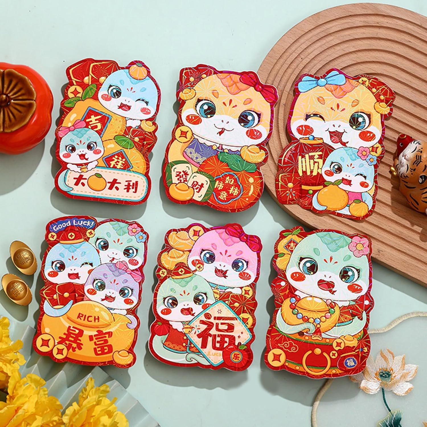 Questi pacchetti di carta sono dotati di una chiusura autoadesiva per un regalo sicuro e sono disponibili in una pratica dimensione piccola, perfetta per regali in denaro. Festeggia l'Anno del Serpente con le nostre buste rosse, ognuna decorata con motivi di serpente unici che simboleggiano prosperità e felicità. Queste buste rosse servono non solo regalo, ma anche oggetto da collezione e arricchiscono l'esperienza culturale del Festival di Primavera. Queste buste rosse sono adatte alle famiglie e a chiunque partecipi alle celebrazioni di Capodanno e sono un modo tradizionale per condividere le benedizioni con gli amici. Perfetto per feste di Capodanno cinese, matrimoni, compleanni ed eventi aziendali. Questi pacchetti di rossore aggiungono un tocco autentico a ogni occasione.
