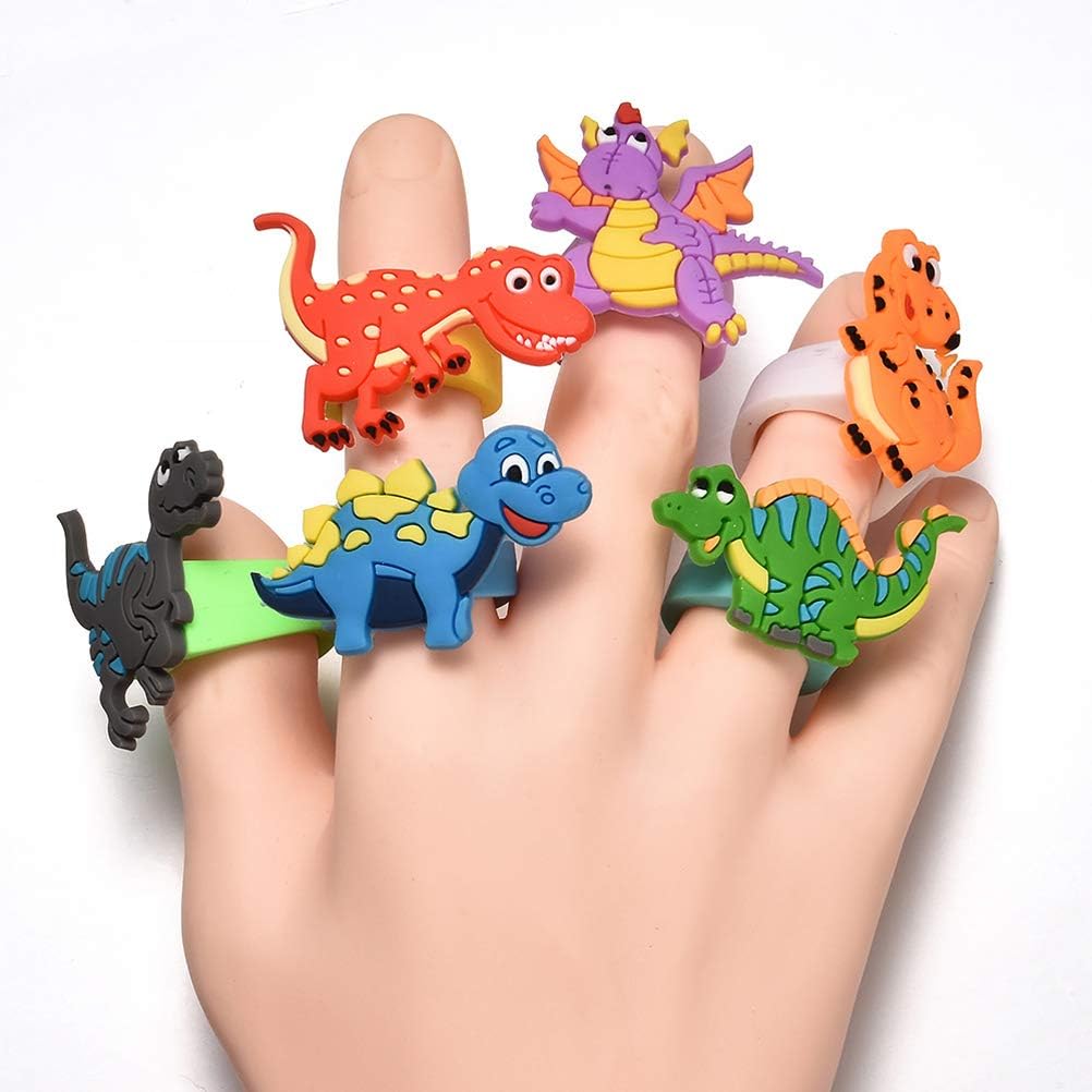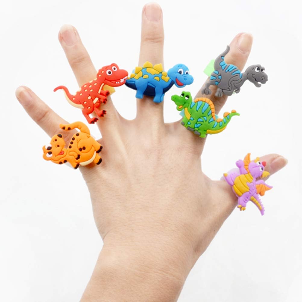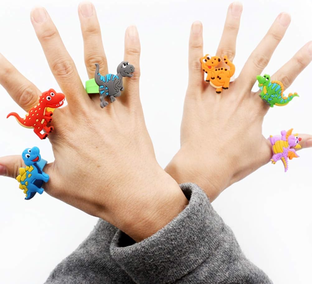 Regali perfetti per vacanze, feste di compleanno o semplicemente come sorpresa. I bambini adoreranno questi piccoli compagni dinosauri. Resistenti e di lunga durata, questi anelli possono resistere a giochi difficili. Facile da pulire e mantenere. Gli anelli sono regolabili, garantendo una vestibilità perfetta per bambini di diverse età. Può essere utilizzato anche come giocattolo divertente o come bomboniera. Realizzato in morbido materiale PVC che garantisce sicurezza al tuo bambino essendo comodo da indossare. Questo set include 6 anelli, ciascuno caratterizzato da un design unico e vivace di dinosauro dei cartoni animati, che offre varietà e divertimento per i bambini.