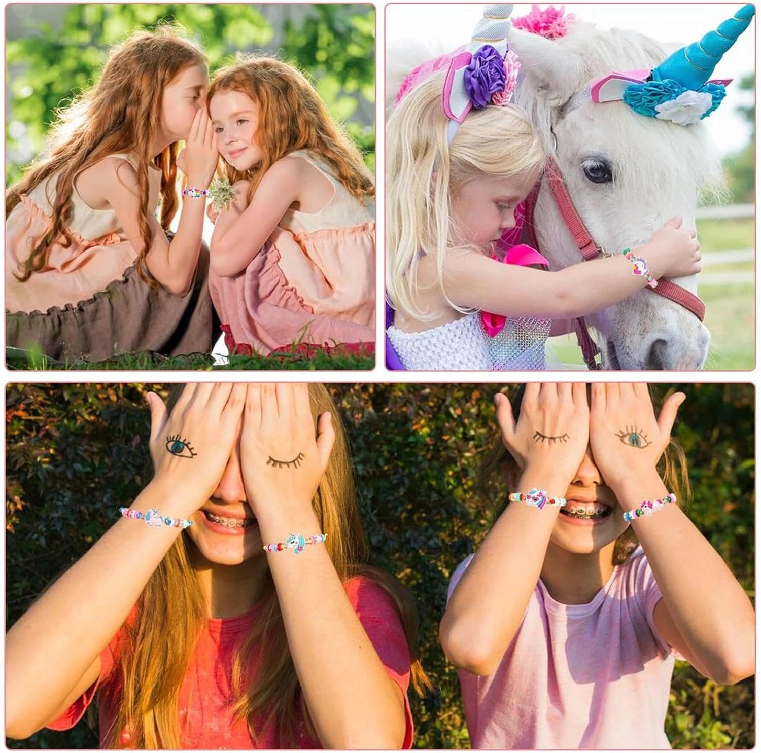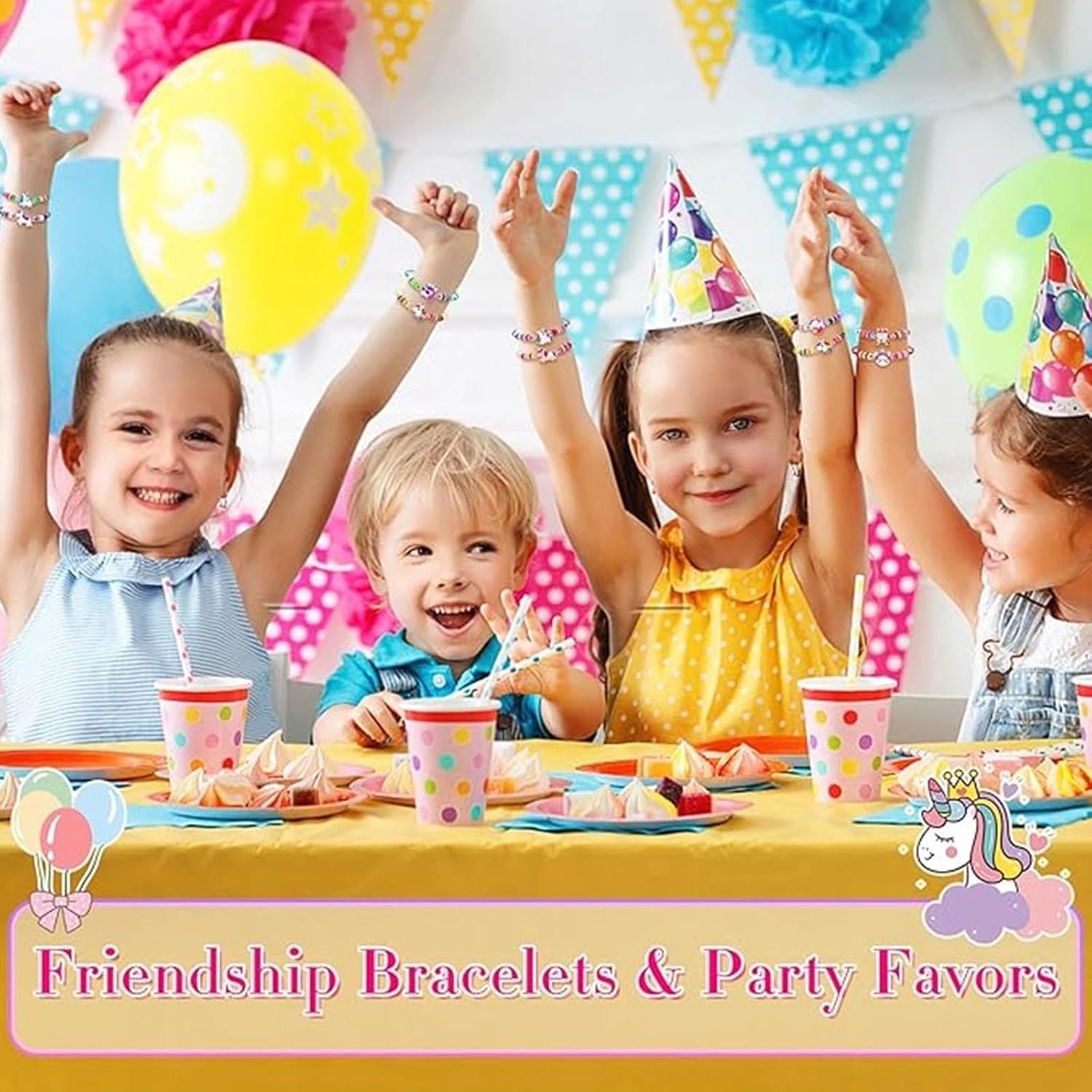 I braccialetti di amicizia per bambini sono anche un simbolo di amicizia, indossarli insieme può essere un buon modo per promuovere l'amicizia - Il braccialetto è molto resistente, non facile da sbiadire, rompere o indossare, garantendo l'usura a lungo termine dei bambini - Questi braccialetti d'amicizia intrecciati sono regolabili, è possibile stringere o sciogliere il braccialetto per adattarsi facilmente al polso -È un accessorio incantevole per abiti quotidiani e vestiti da festa per aiutare le ragazze a creare un look dolce Questi braccialetti sono adatti per favore di festa, favore di festa, premi in classe, premi di gioco, perfetti per feste di compleanno, feste di principessa, feste unicorno, Halloween o altre attività di tempo libero