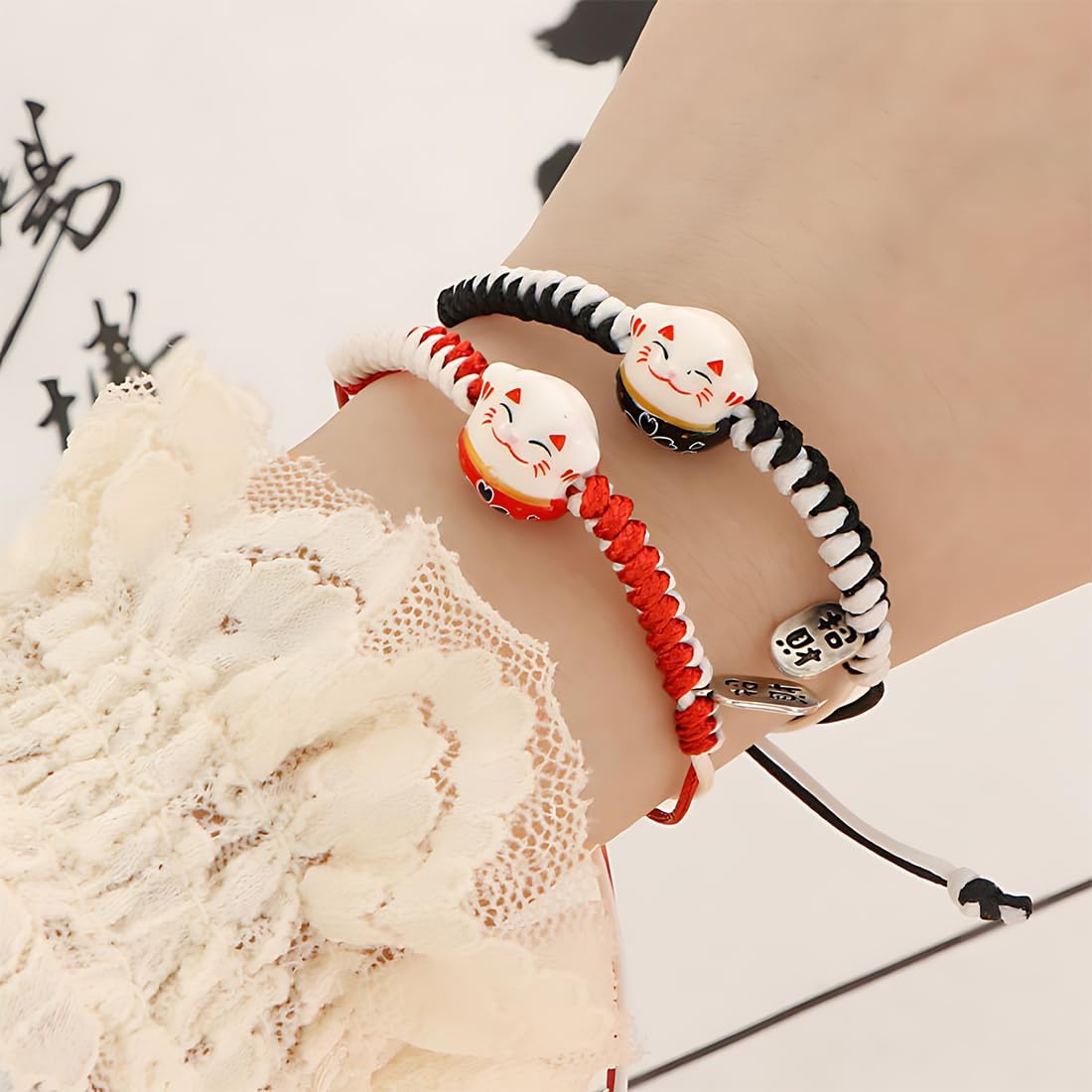 📿【Abbastanza】Una confezione di braccialetti per gatti contiene 6 braccialetti kawaii, inclusi 6 colori diversi come verde, blu e rosa. Quantità e colore sufficienti possono soddisfare le esigenze di utilizzo quotidiano e di sostituzione. 📿【Qualità affidabile】Il braccialetto per gatti giapponese è realizzato principalmente in lega, ceramica e filo di cotone. È leggero, riutilizzabile, non sbiadisce o si rompe facilmente e il materiale è affidabile e può essere utilizzato a lungo. 📿 【Indossabilità regolabile】 Il braccialetto per gatti giapponese può essere regolato in base alle dimensioni della tua mano. Non devi preoccuparti che il braccialetto cada, il che aumenta il comfort e ti offre una buona esperienza d'uso. 📿【Bellissimo Simbolismo】Il nostro braccialetto con ciondolo a forma di gatto ha principalmente l'immagine carina di un gatto con un campanello, noto come mascotte di ricchezza e buona fortuna. Porta felicità e salute nella tua vita ed è un buon accessorio. 📿 【Regalo divertente】 I nostri braccialetti per gatti sono bellissimi e sono adatti da regalare ai tuoi amici, colleghi, genitori o persone a cui tieni come regali per anniversari, San Valentino, compleanni, ecc.