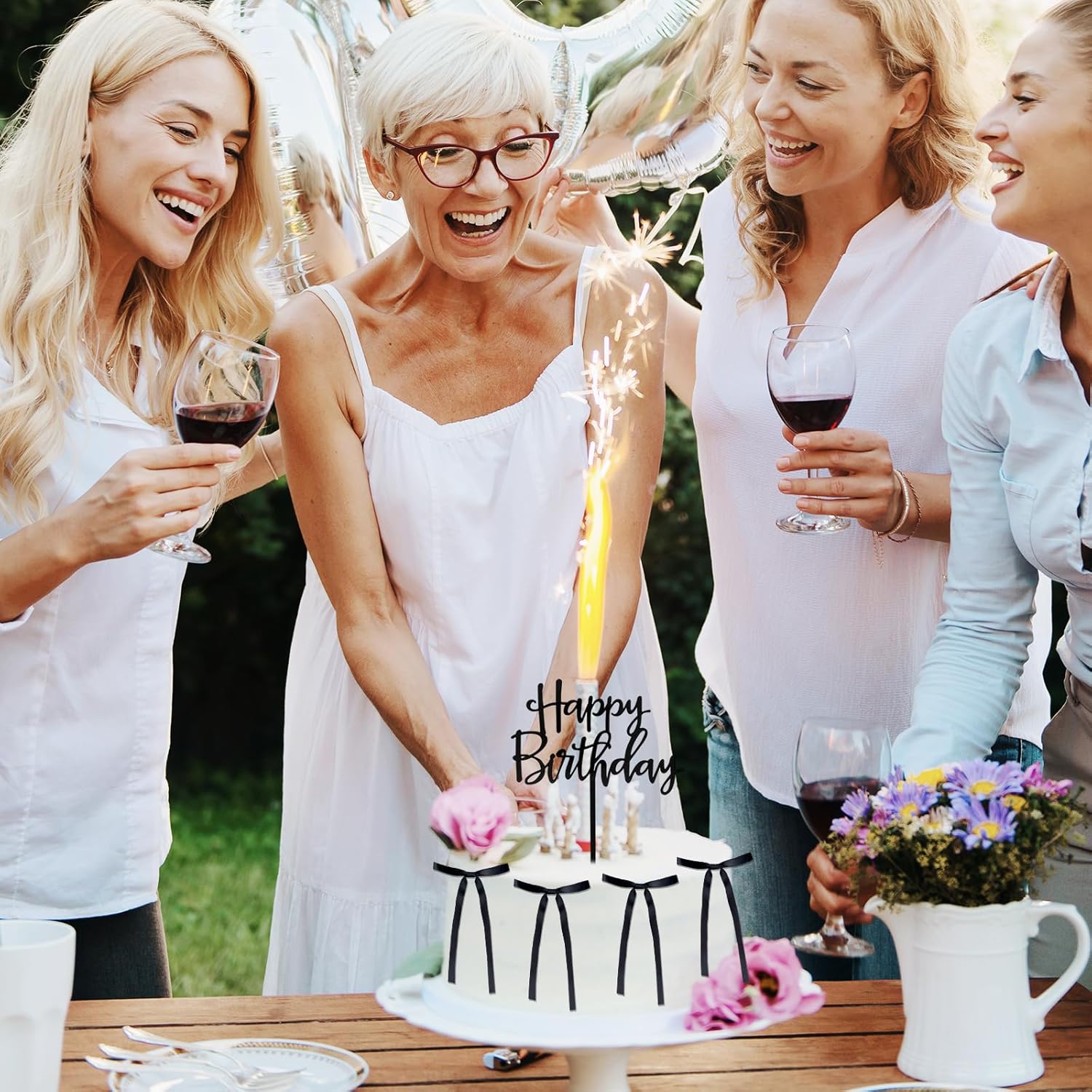 Elegante tocco vintage per la tua torta: con questo set di decorazioni composto da eleganti fiocchi neri e un affascinante cartello "Happy Birthday" trasformerai ogni torta in un elegante centrotavola. Lo stile vintage nostalgico si adatta perfettamente alle feste a tema Coquette e dona un tocco speciale alla tua festa. Decorare in modo semplice e veloce: I fiocchi sono dotati di pratici bastoncini che possono essere facilmente inseriti nella torta. In pochissimo tempo avrai una decorazione per torte impressionante e stabile, facile da maneggiare anche per i principianti. Resiste anche quando la festa è in pieno svolgimento: la decorazione è realizzata con materiali robusti, quindi durerà per tutta la festa senza ribaltarsi o piegarsi. Il design vintage si adatta perfettamente a qualsiasi torta a tema cuore o civetta e attirerà immediatamente l'attenzione sulla tua tavola da dessert. Tutto per un compleanno perfetto: questo set include sei fiocchi neri e un cartello di buon compleanno commestibili e sicuri per i tuoi ospiti. Con queste decorazioni potrai trasformare la tua torta in un festoso centrotavola. Ideale per ragazze o feste di compleanno in generale. Migliora lo stile della tua festa: con questa decorazione per torte puoi portare la tua festa al livello successivo. Le decorazioni aggiungono un tocco di eleganza e stile alla tua torta che si adatta a temi diversi. Sorprendi i tuoi ospiti con una bellissima decorazione per torta e rendi indimenticabile la tua prossima festa.