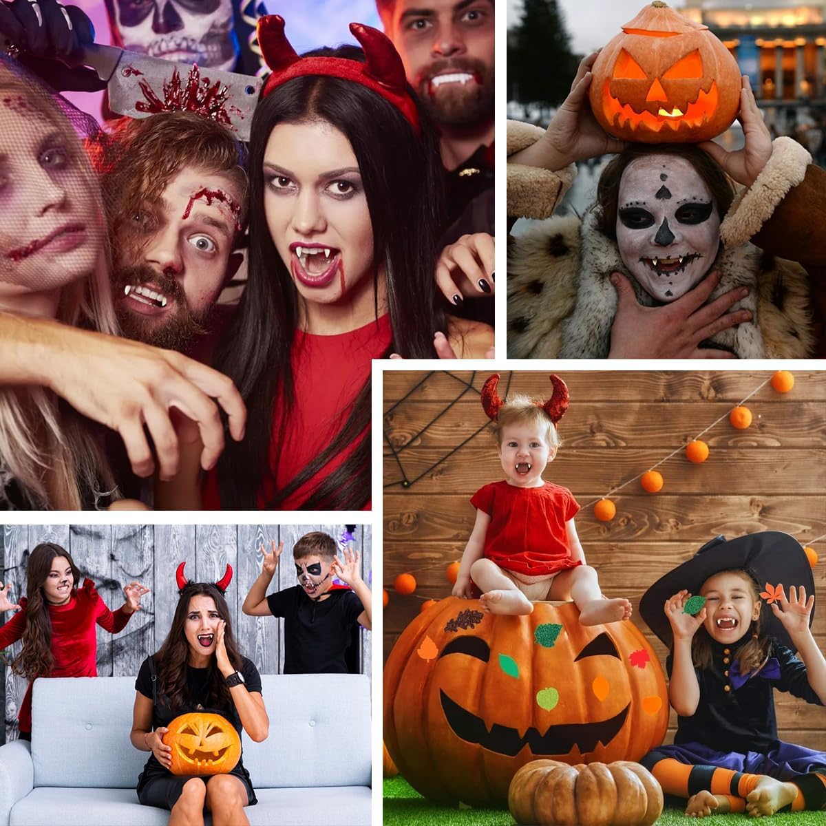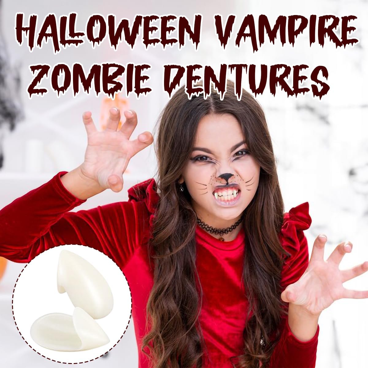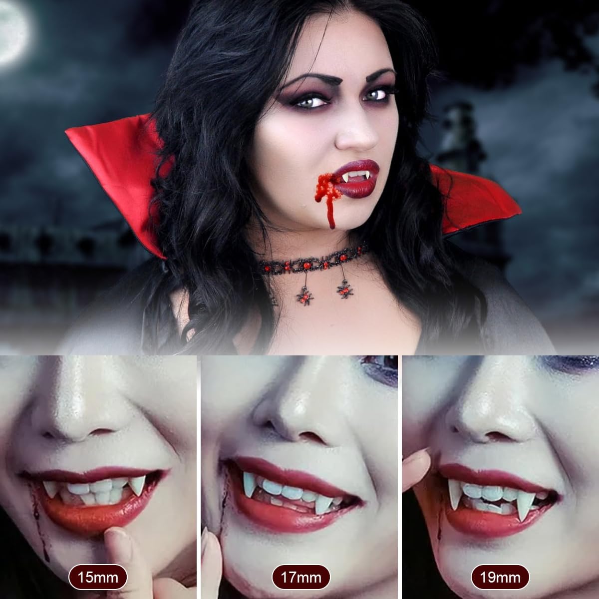 【Materiale】Questo set di zanne da vampiro per Halloween è realizzato in resina stampata a iniezione di alta qualità, atossica e inodore, che protegge i denti e ha un aspetto realistico. Il solido massaggiagengive è realizzato con materiali sicuri e atossici, atossici e inodori, e puoi usarlo in tutta sicurezza. 【Dimensioni】Ogni set di zanne da vampiro ha 3 diverse misure: 15 mm, 17 mm e 19 mm. Ci sono 2 paia di denti per ogni misura, per un totale di 6 paia, adatti a diversi tipi di denti, comodi da indossare senza cadere e perfettamente adatti ai denti naturali. Può soddisfare le tue esigenze per shooting fotografici, Halloween e varie feste. 【Modo d'uso】Riscalda le perle di gel per la dentizione con acqua calda per sbiancarle e renderle trasparenti, quindi applicale nella cavità dentale e riempile. Asciuga i denti naturali che desideri indossare con un fazzoletto di carta, quindi premi delicatamente i blocchi sui denti naturali. 【Ampia applicazione】Le zanne da vampiro di Halloween sono perfette come accessori per feste di ruolo da vampiri, lupi mannari, zombi e costumi da gioco di ruolo, e possono anche essere regalate a familiari e amici. 【Realistici e unici】Queste zanne da vampiro si abbinano perfettamente al tuo costume da vampiro, rendendolo più realistico e mettendo in risalto il tuo fascino da vampiro.