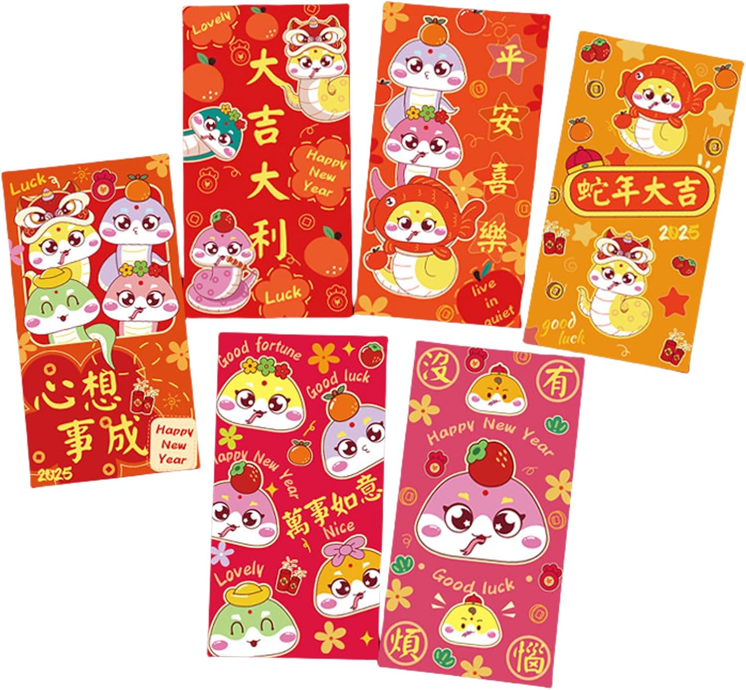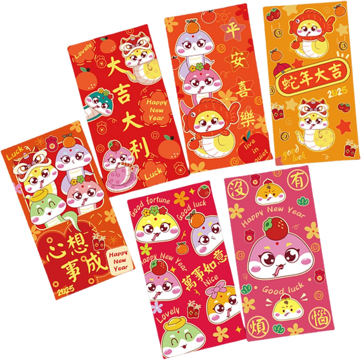6 pezzi di lamina d'oro Capodanno pacchetti di denaro cartone animato 2025 temi buste rotative cinesi festa di primavera Hongbao