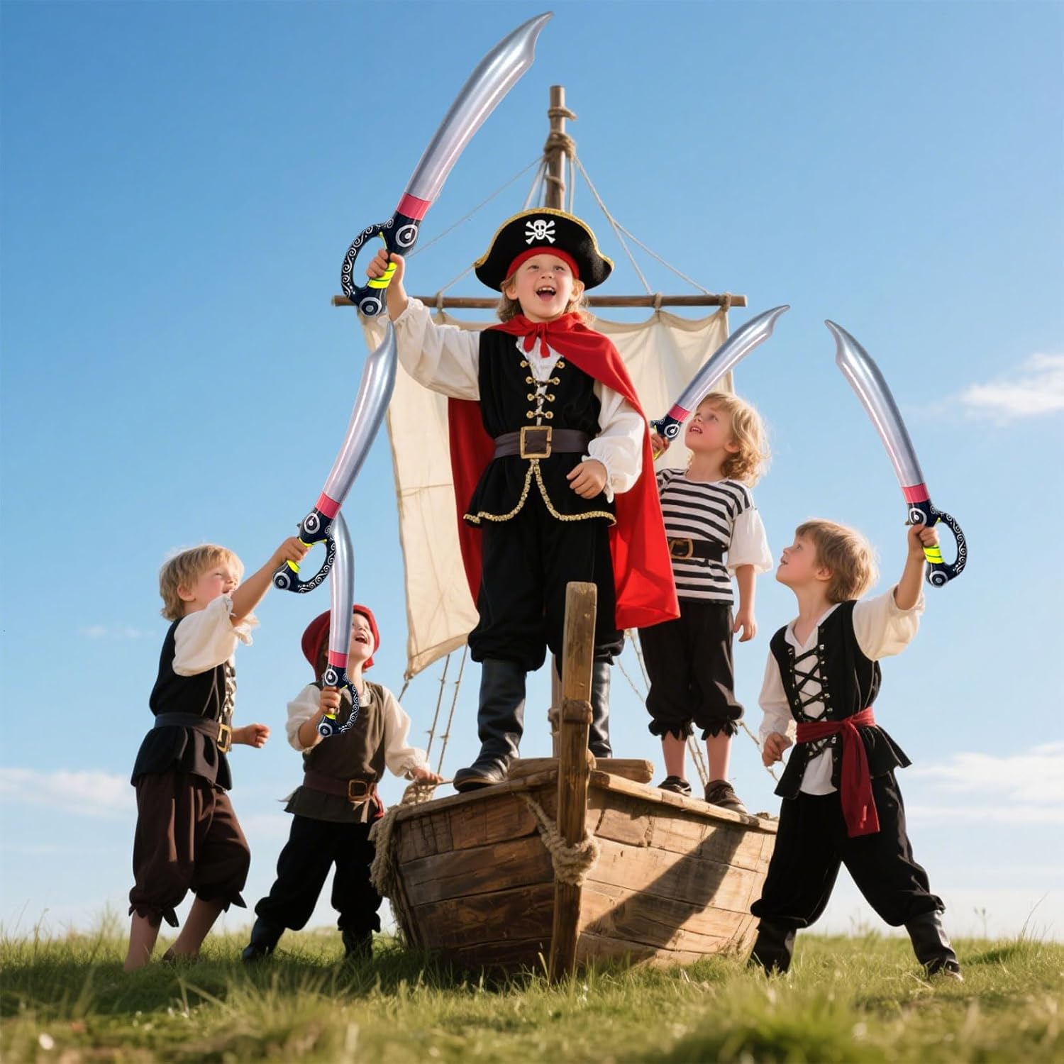 SPADE PER BAMBINI: Il set di giocattoli pirata include 6 pezzi di spada pirata gonfiabile. La spada in gommapiuma per bambini aggiungerà divertimento e atmosfera alla tua festa, ottima per travestirsi in occasione di feste a tema e diversi tipi di eventi speciali PREMIO MATRIALE: Il PVC di qualità è il materiale principale dei nostri accessori pirata, che è morbido e leggero, perfetto per spettacoli teatrali, abiti per la giornata mondiale del libro, Natale, attività scolastiche, parco acquatico, acquario FAVORIRE LA PARTITA: Gli accessori del costume da pirata sono spada gonfiabile progettato per il costume di partito a tema pirata, adatto per il partito trucco, pirati cosplay partito, festa di carnevale, festa in spiaggia estate e piscina nuoto pary AMPIE APPLICAZIONI: Accessori gonfiabili pirata perfetti per varie occasioni come forniture per feste di Halloween, festival, decorazione della stanza, decorazioni per feste pirata e come oggetto di scena per la fotografia REGALI PERFETTI: La spada finta per i bambini sono regalo perfetto per qualcuno il vostro amore per il compleanno, Natale, Halloween e più, giocattoli gonfiabili con forme uniche hanno un buon fascino, e sono sia i giocattoli e dress-up oggetti di scena