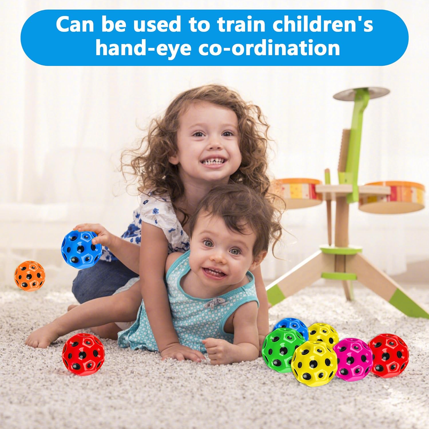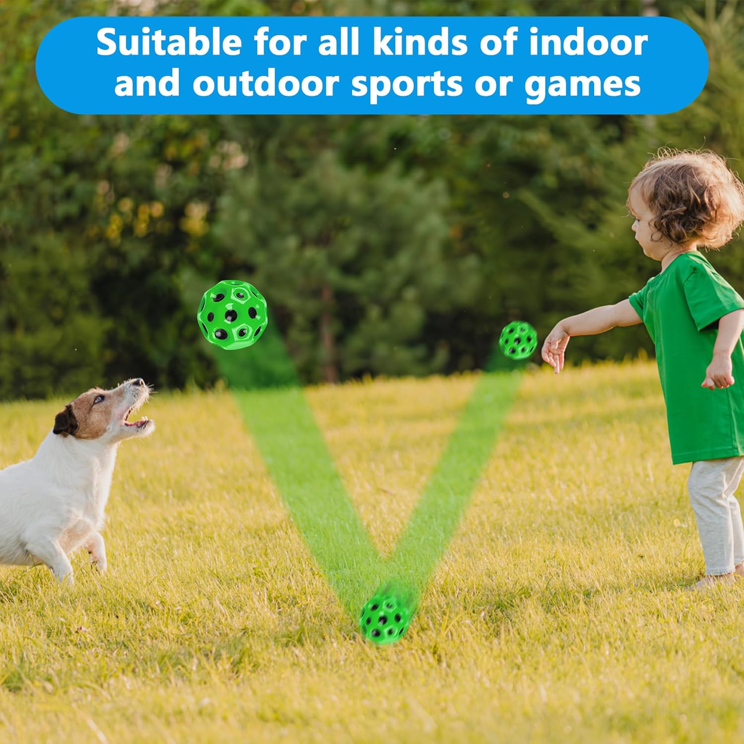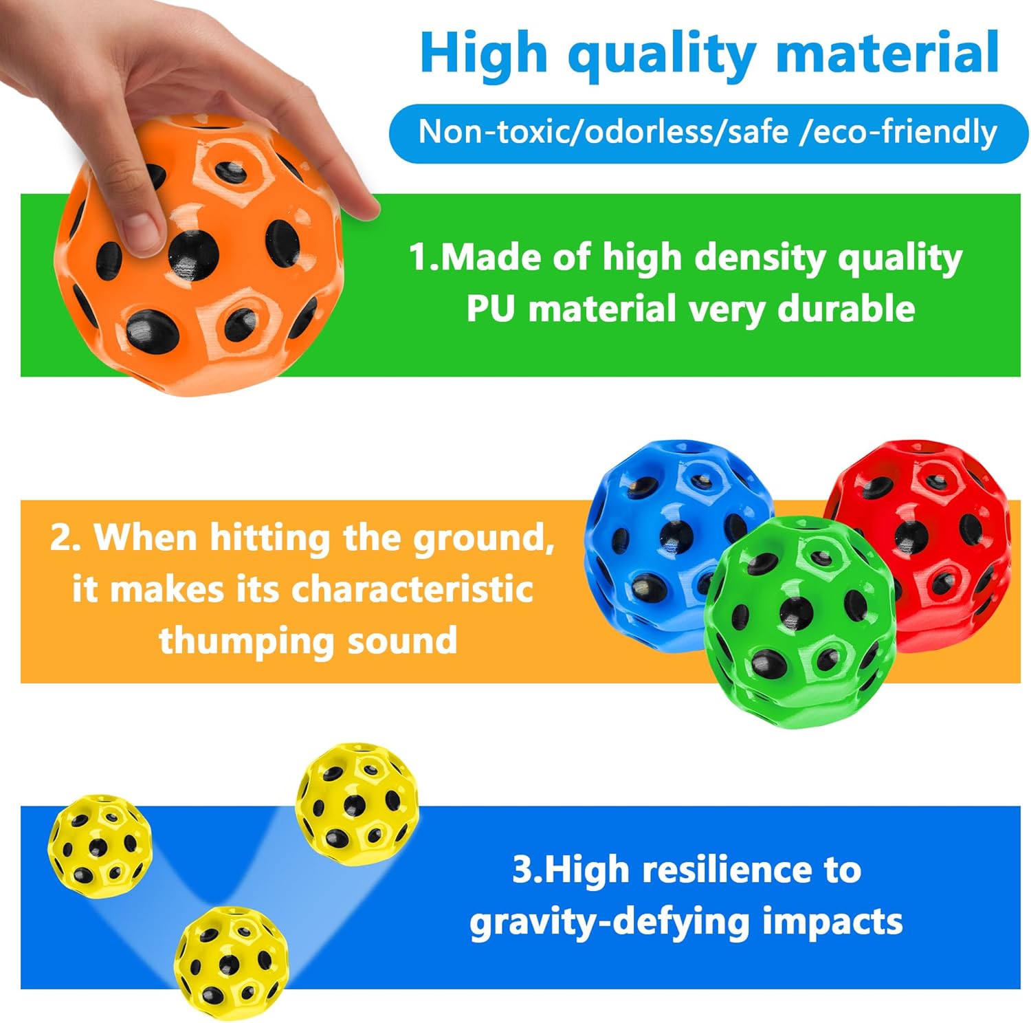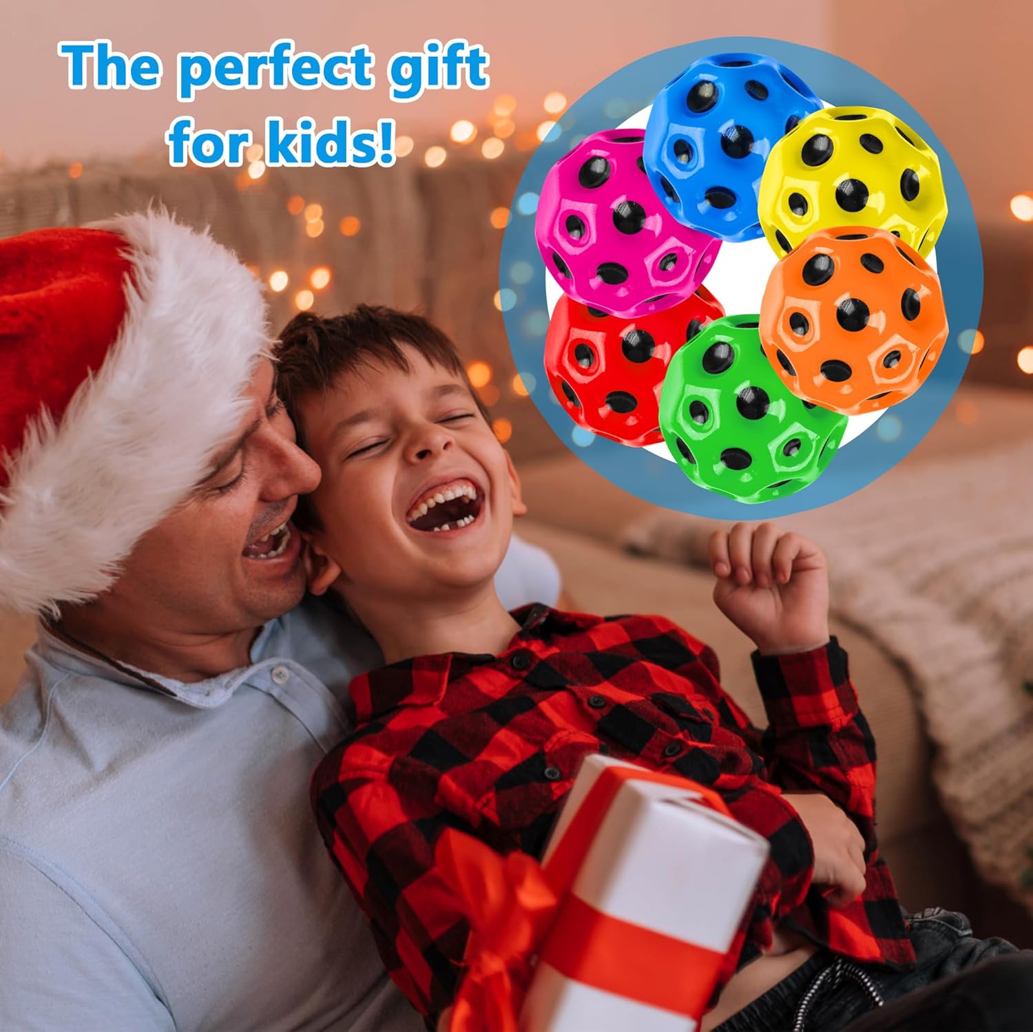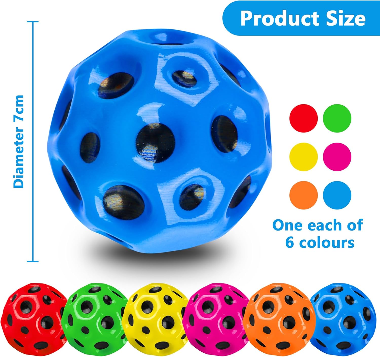 La confezione include: riceverete 6 palline da salto, con un diametro di 7 cm e un peso di soli 55 g, la palla è leggera con una morbida elasticità, in modo da poterla afferrare e controllarla facilmente. Questa palla sensoriale sarà il tuo compagno di allenamento perfetto e ti aiuterà a migliorare la precisione, la flessibilità e la coordinazione durante l'allenamento. Materiale durevole: il design esterno del giocattolo Space Ball con piccoli fori, Space Moon Ball è realizzato in materiale PU di alta qualità ad alta densità, estremamente resistente e altamente elastico, la Moon Ball resiste a salti infiniti ed è adatta per sport, giochi al chiuso e all'aperto. Facile da afferrare e catturare: utilizza questa pallina per rimbalzare facile da afferrare e catturare per migliorare la coordinazione occhio-mano in modo semplice. Questa palla Space Moon sarà il tuo compagno di allenamento perfetto e ti aiuterà a sviluppare precisione, flessibilità e coordinazione durante l'allenamento, senza danneggiare le dita o le mani, dimensioni del manico portatile e facile da trasportare. Multiscenario -- Con le sue dimensioni perfette e il suo design leggero, questa palla spaziale diventa il tuo parco giochi portatile, in modo da poter godere di giochi emozionanti all'interno o all'esterno. Portalo al parco, in spiaggia o rimbalza comodamente a casa. Regalo perfetto: le palline Spaceballs Ottima scelta per bambini e adulti come regalo di compleanno, regalo di Natale e antistress, un giocattolo interattivo per interazioni familiari, attività all'aperto, giochi d'acqua.