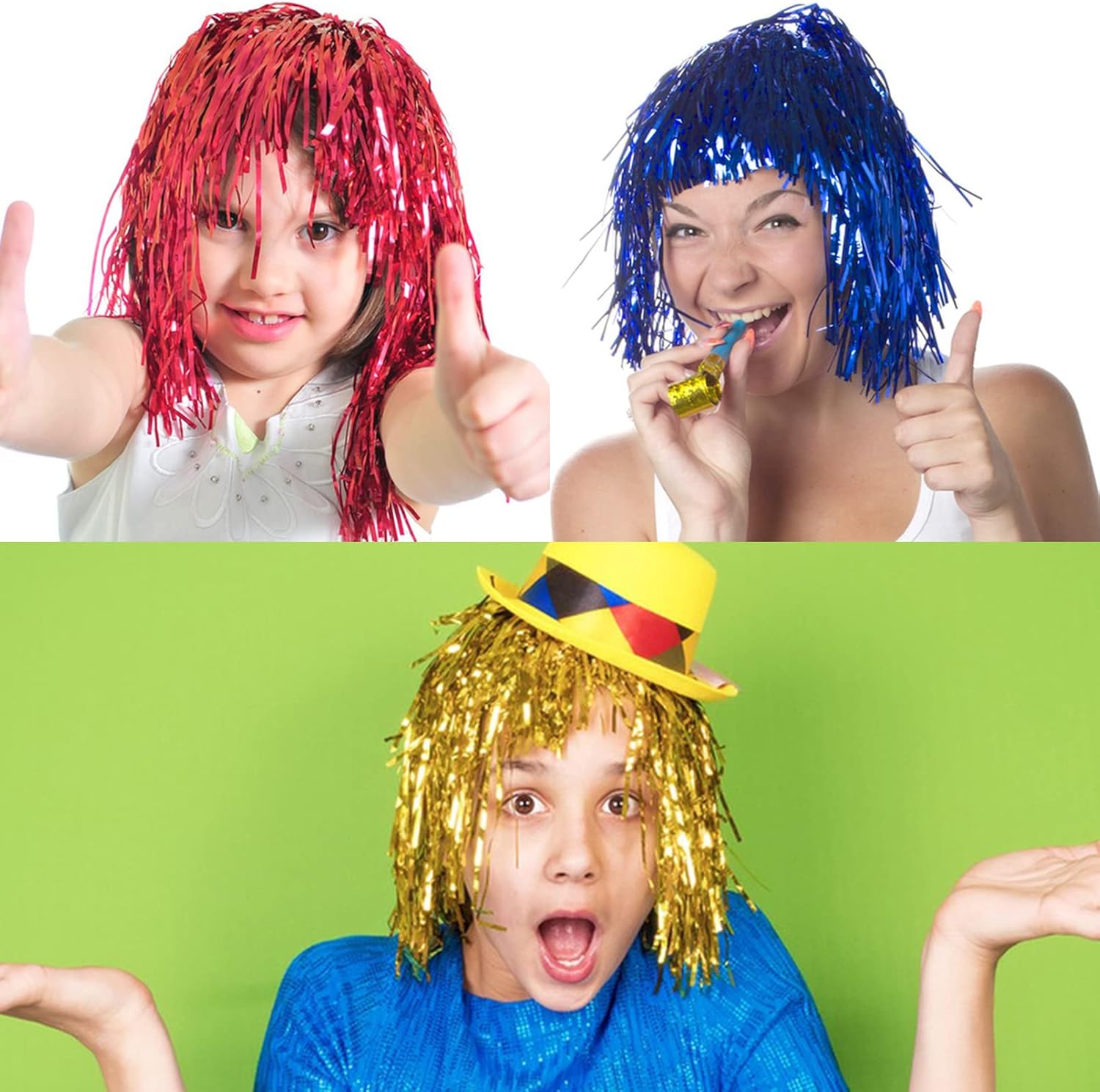 [Parrucca in lamina liscia] La parrucca in lamina di metallo ha 6 diversi colori: rosso metallico/argento/oro/colore/rosso rosa/blu. Le donne nuove e alla moda amano le parrucche colorate e le parrucche in lamina di metallo sono più alla moda. [Parrucca in lamina leggera] è realizzata in lamina di metallo, lucida, leggera, riutilizzabile e adatta sia per uomini che per donne. Indossa una parrucca lucida per un look indimenticabile [Facile da usare] Ogni parrucca ha una fascia elastica corta, che può essere utilizzata per regolare le dimensioni ed è adatta per gli adulti. Indossare questa parrucca ti mette sotto i riflettori [Parrucche per feste] Le parrucche in metallo sono divertenti accessori per feste in maschera, feste cosplay, feste a tema punk rock, feste in maschera, carnevali o feste in famiglia [Contenuto della confezione] 6 parrucche di filo metallico, puoi condividere con i tuoi vicini, amici, parenti e colleghi, e saranno felici di ricevere questo regalo