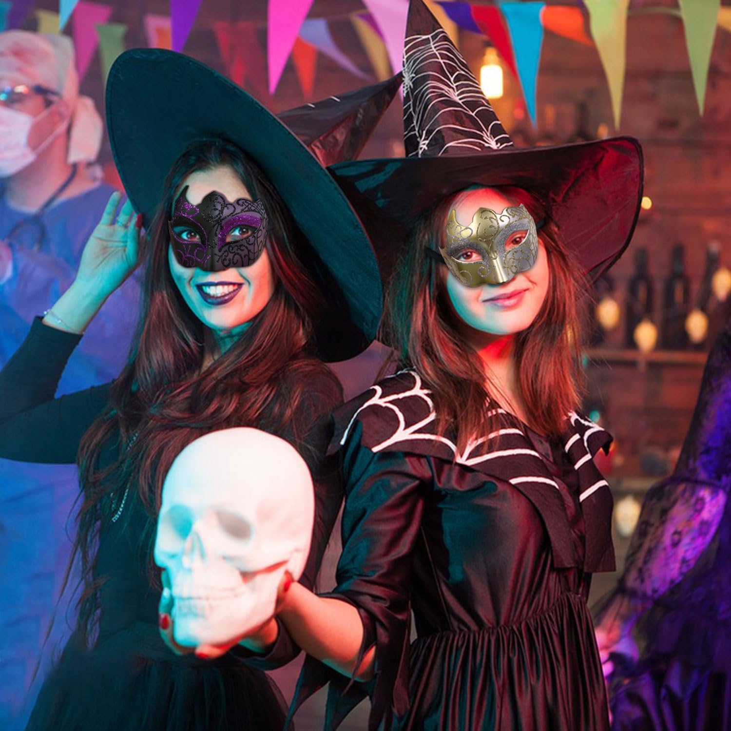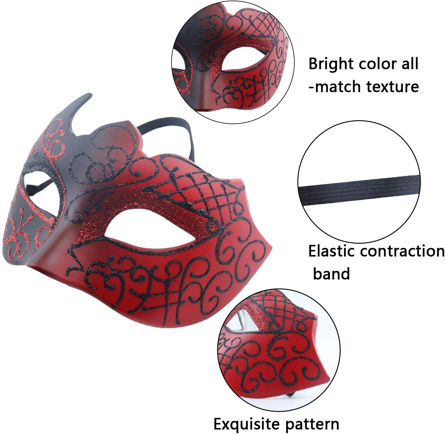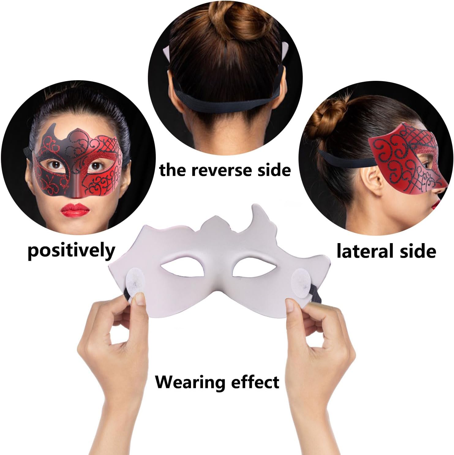 6 masques achetés pour 4 personnes, pour une soirée costumée. Sur des enfants les masques ne tiennent pas, et sur les adultes le masque n'est pas du tout confortable. Je devais sans cesse tirer sur le mien pour le remettre en place, c'est vite pénible et peu immersif quand on veut profiter de sa soirée. Côté qualité rien à redire, ils ont tenu même entre des mains d'enfant donc c'est déjà ça de pris.