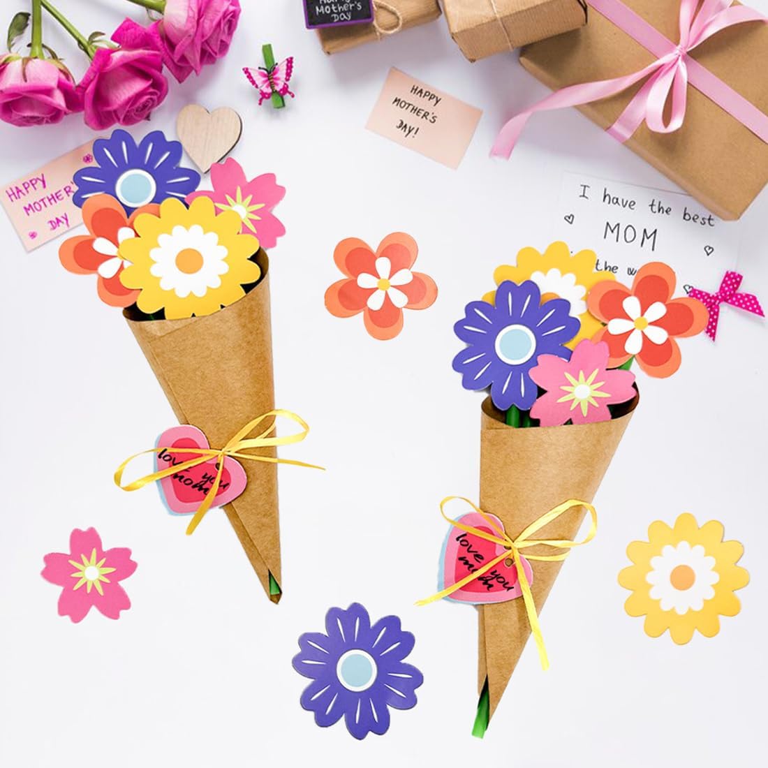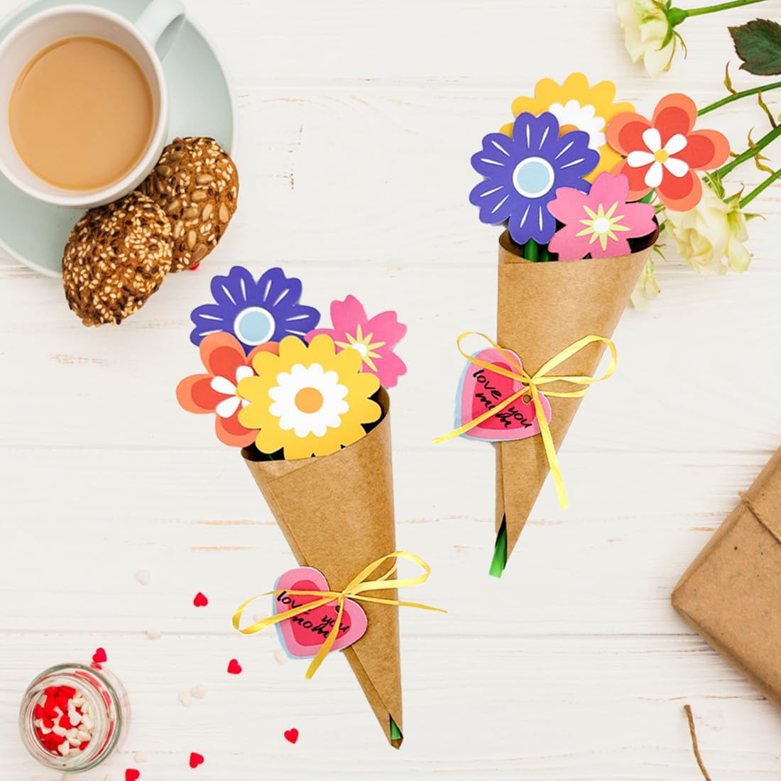 Mini buste versatili: Dimensioni perfette per biglietti regalo, biglietti di ringraziamento, biglietti da visita, etichette regalo e biglietti personali. Ideali anche per progetti creativi come calendari dell'avvento o messaggi personalizzati Design unico: Include adesivi floreali e materiali per steli che trasformano il biglietto in un bouquet di fiori, rendendolo più originale e speciale Scelta colorata: Permette di creare fino a 6 bouquet floreali, ciascuno composto da 4 fiori, con una varietà di colori vivaci per un tocco allegro e creativo Ampia applicazione: Perfette per occasioni speciali come la Festa della mamma, la Festa del papà, la Giornata degli insegnanti e altre festività, ideali per regalare a chi si desidera Contenuto ideale: Perfette per progetti creativi, eventi speciali o per l'uso quotidiano, queste buste aggiungono un tocco di eleganza e personalità ai tuoi messaggi