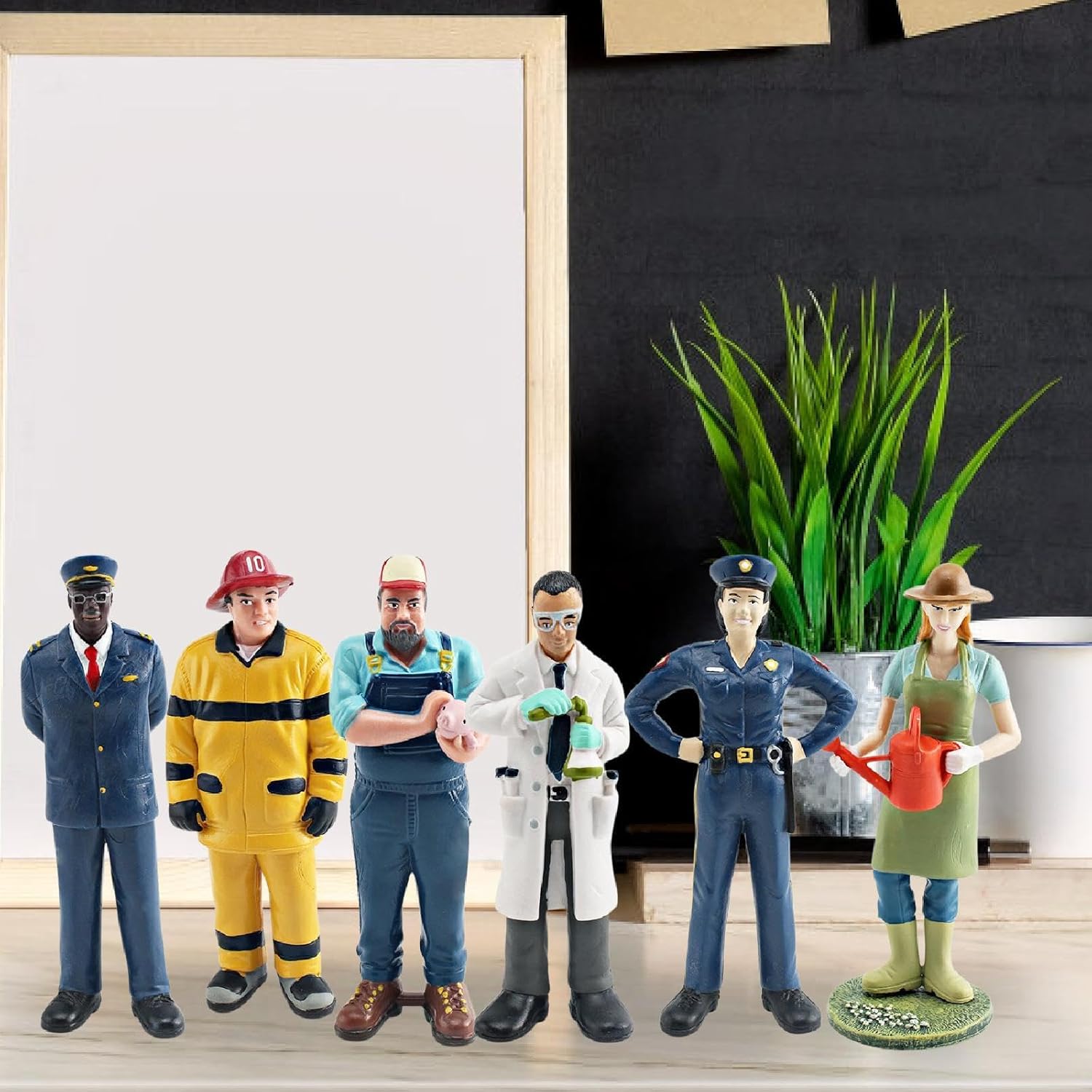 Set di figure realistiche: include sei figure dettagliate in miniatura che rappresentano insegnanti, chef, giardinieri, guardiani dello zoo, medici e infermieri per migliorare l'autenticità nei diorami e nelle scene di modella Struttura in PVC resistente: realizzato in PVC di qualità che garantisce una struttura robusta e una maneggevolezza sicura, mantenendo dettagli intricati attraverso l'uso regolare 【Applicazioni versatili da esposizione】: adatto per espositori educativi, progetti di hobby, layout fai da te, modelli paesaggistici, decorazioni da tavolo e espositori per scaffali Design dettagliato: caratteristiche realistiche e dettagli vividi che danno vita a ogni professione, migliorando l'aspetto visivo in varie configurazioni di visualizzazione Set completo pronto all'uso: la confezione include tutte e sei le figure dipinte professionalmente, ognuna misura 12,3-13,2 cm di altezza per una presentazione uniforme in scala