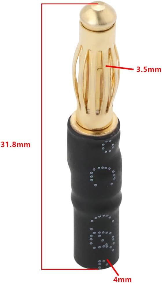Da 4 mm maschio a 3,5 mm femmina : Converte senza problemi i connettori maschio da 4 mm in connettori femmina a proiettile da 3,5 mm, rendendolo versatile per varie configurazioni RC e migliorando la compatibilità. Lunghezza : Progettato con una lunghezza di 31,8 mm per una perfetta aderenza e una facile integrazione in spazi ristretti, ideale per una vasta gamma di veicoli e componenti RC. Costruzione : Realizzato in metallo e plastica, per garantire prestazioni durature e resistenza all'usura in ambienti difficili. Versatile per applicazioni RC : Perfetto per collegare gli ESC ai motori di auto RC, barche e droni FPV. Affidabile per molteplici applicazioni RC e garantisce connessioni stabili. Set da 6 pezzi : Include 6 adattatori, che forniscono una quantità sufficiente per molteplici utilizzi o pezzi di ricambio, rendendolo un'aggiunta pratica al tuo kit di accessori RC.