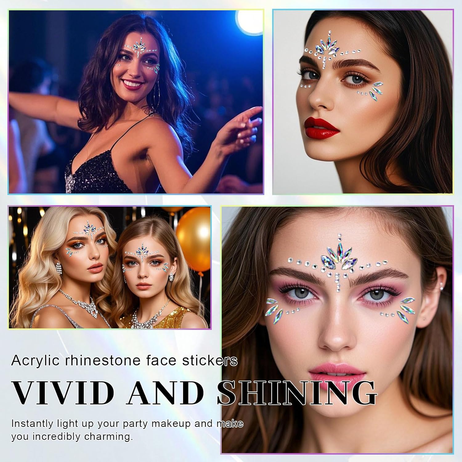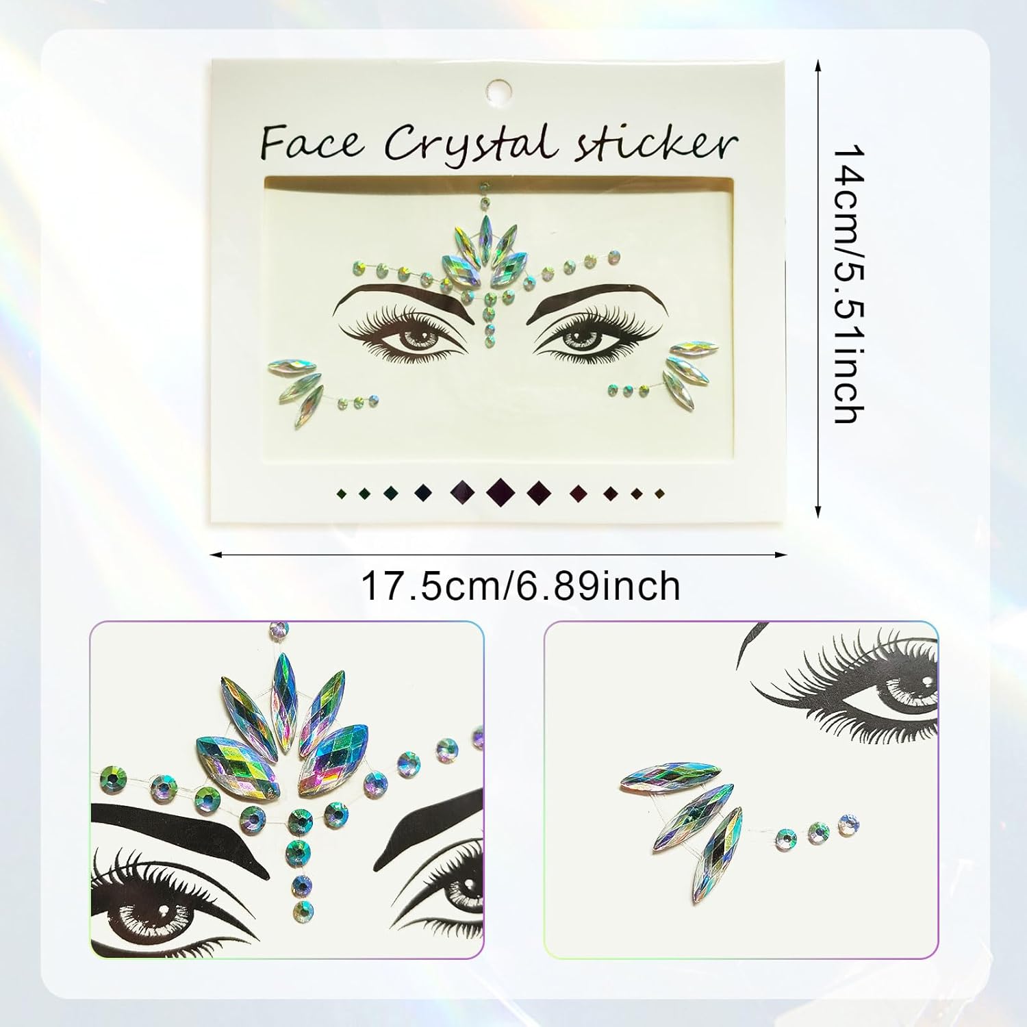 La confezione include: riceverai 6 adesivi PC con aspetto raffinato e materiali di qualità, quantità sufficiente per soddisfare le diverse esigenze di decorazione. Versatile: questi adesivi per il viso sono ampiamente utilizzati. Usa queste pietre glitterate per il viso per varie feste, come carnevale musicale, ballo in maschera, festa da ballo, festa di compleanno di matrimonio, festa di Natale, feste a tema sirena, feste di compleanno per bambini e feste pazze. Qualità premium: questi adesivi con pietre glitterate per il viso sono realizzati in materiale di resina di alta qualità, sicuro, ecologico e durevole, nessun odore, nessun danno alla pelle. Adatto a tutte le età, uomini, ragazzi, ragazze. Facilità d'uso: le nostre gemme per il viso con strass hanno un design autoadesivo, devi solo pulire la pelle, quindi staccare la carta di supporto e incollarla secondo il disegno. Le gemme glitterate per il viso possono anche essere riutilizzate e si prega di pulire e riapplicare la colla per ciglia o la colla per il corpo quando sono pronte per l'uso. Attraente: l'adesivo per il viso è realizzato con strass trasparenti colorati e lucenti, può essere utilizzato su fronte, guance e occhi. Aggiungi un pizzico di glitter per una brillantezza extra e creare un effetto sirena.