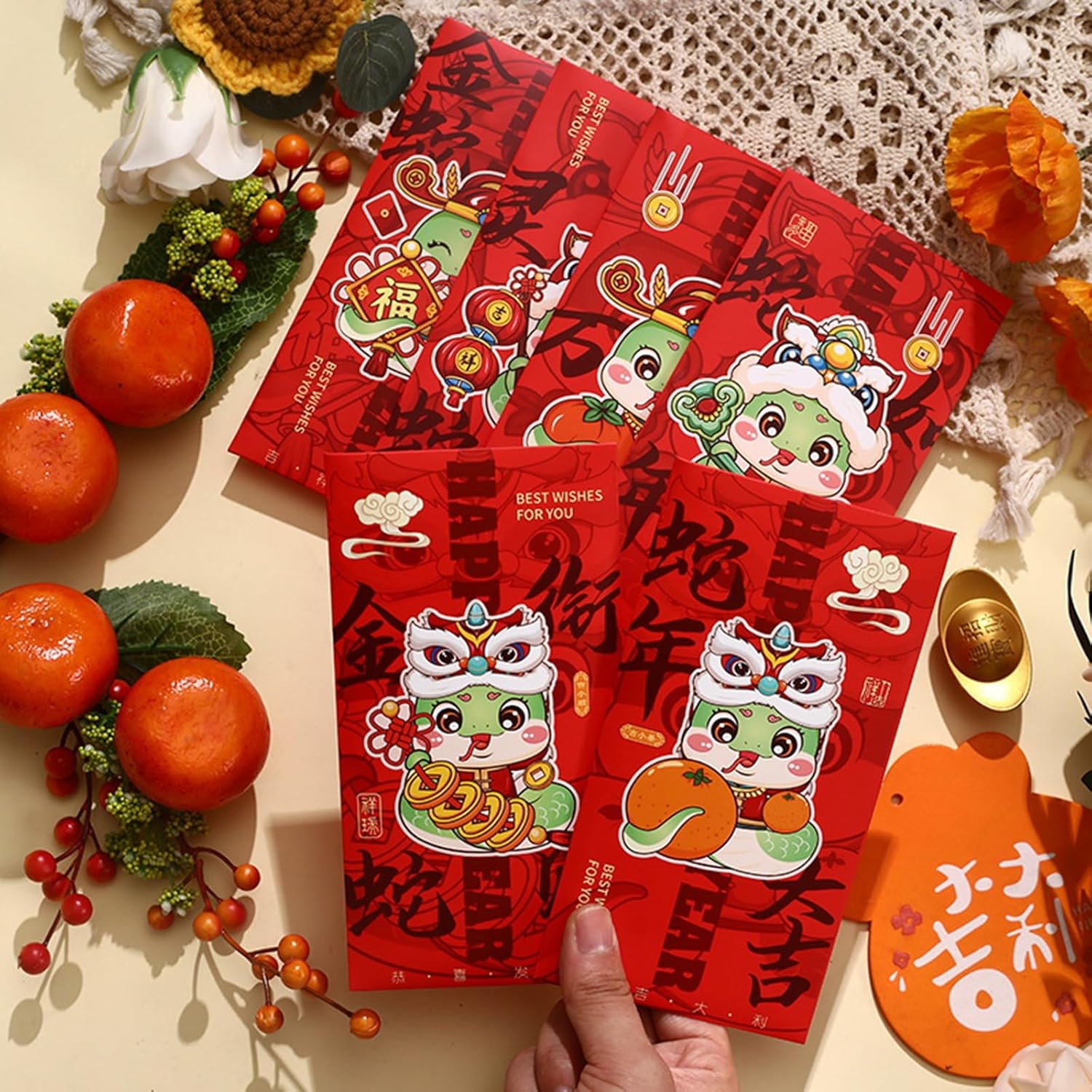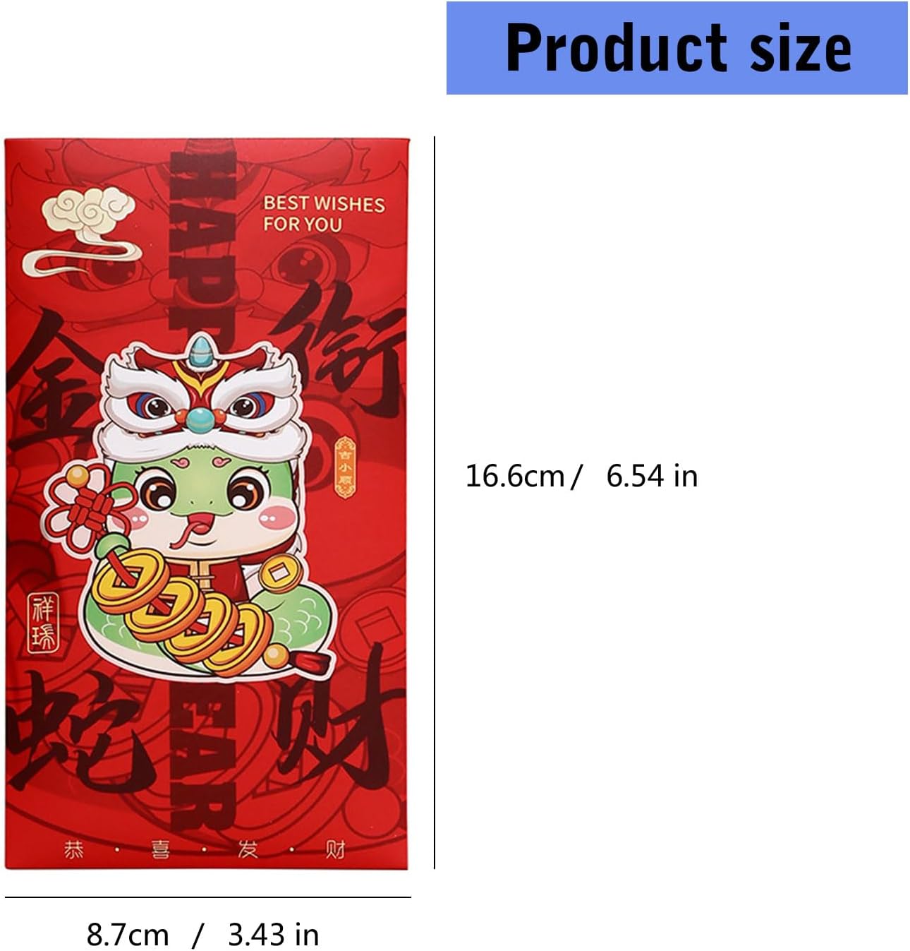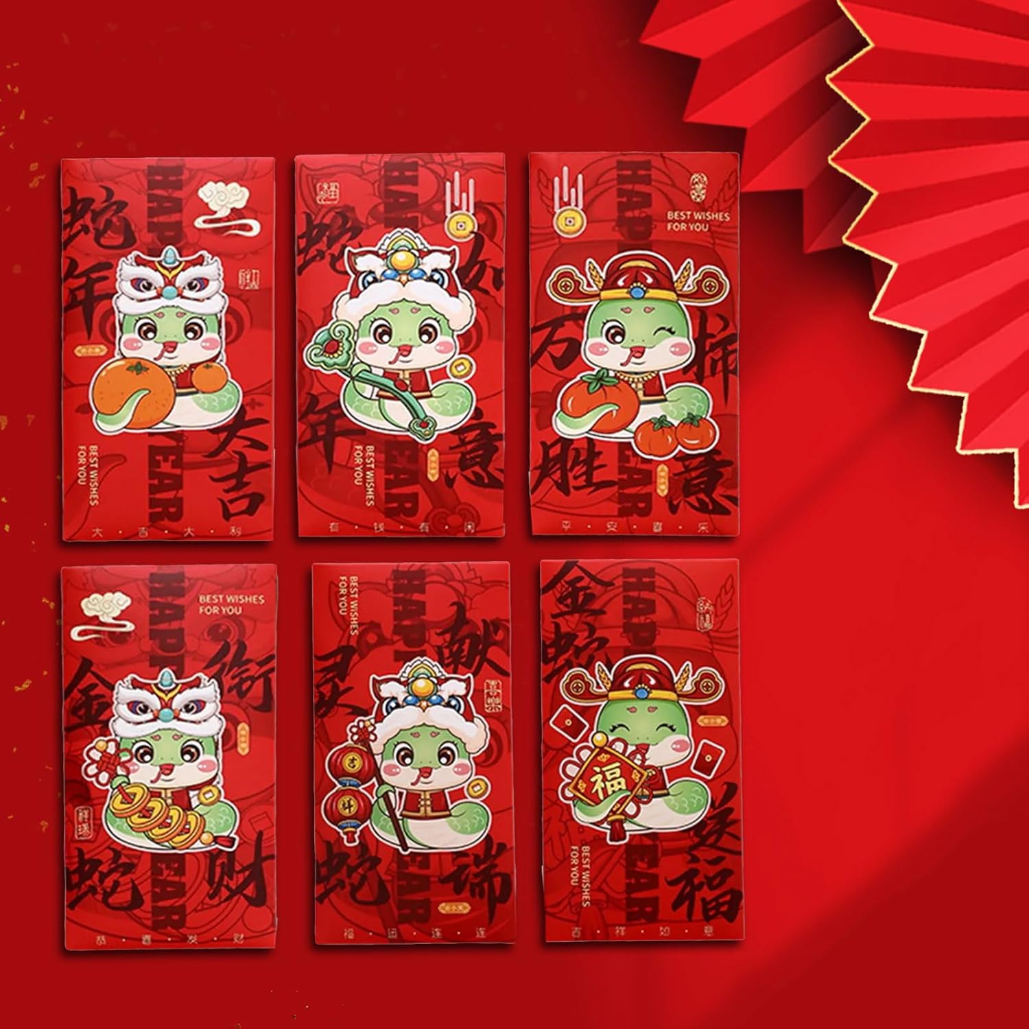 Realizzati in carta, questi pacchetti rossore presentano una chiusura a sigillo per un regalo sicuro e sono disponibili in piccole dimensioni per regali in denaro. Per la celebrazione del capodanno cinese, matrimoni, compleanni ed eventi aziendali, questi pacchetti rossore aggiungono un tocco autentico a ogni occasione. Queste buste rossore non servono solo come un ma anche un oggetto da collezione, migliorando la cultura della festa di primavera. Adatto per famiglie e chiunque partecipi a feste di Capodanno, queste buste rossore sono un modo tradizionale per condividere la benedizione con gli amici. Festeggia l'anno del serpente con le nostre buste rossore, ognuna adorna con disegni unici a serpente che simboleggiano prosperità e fortune.