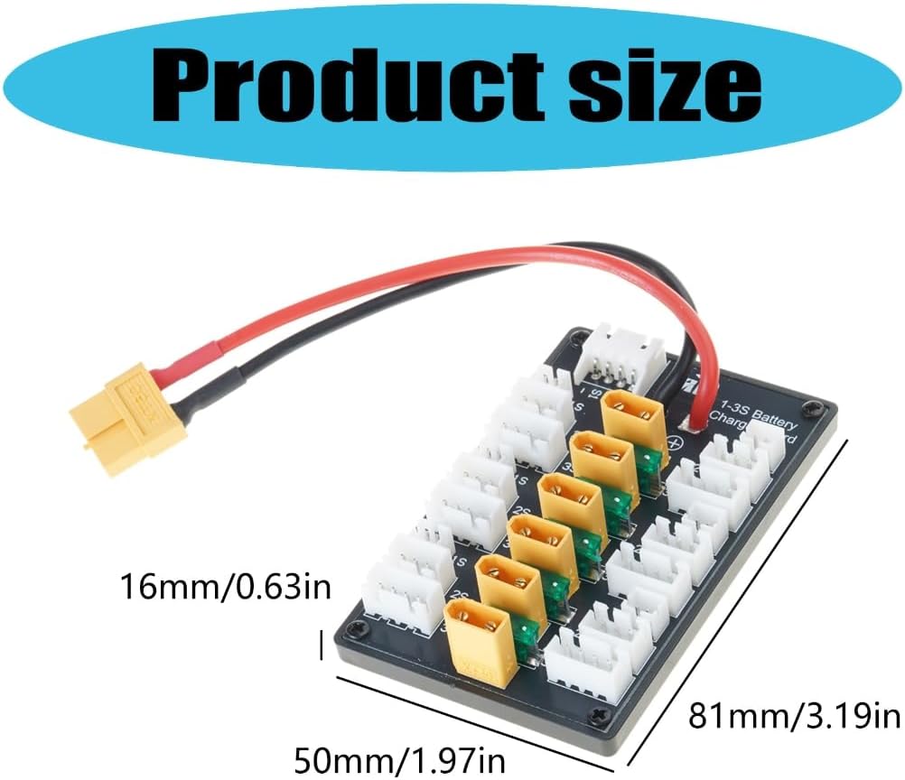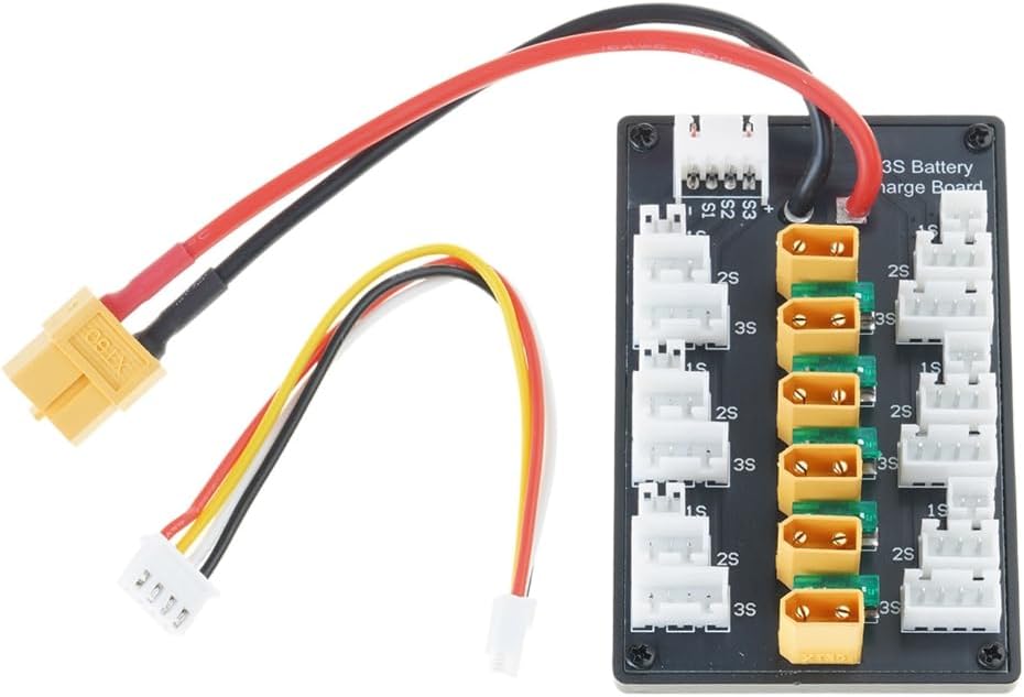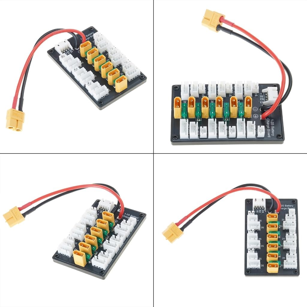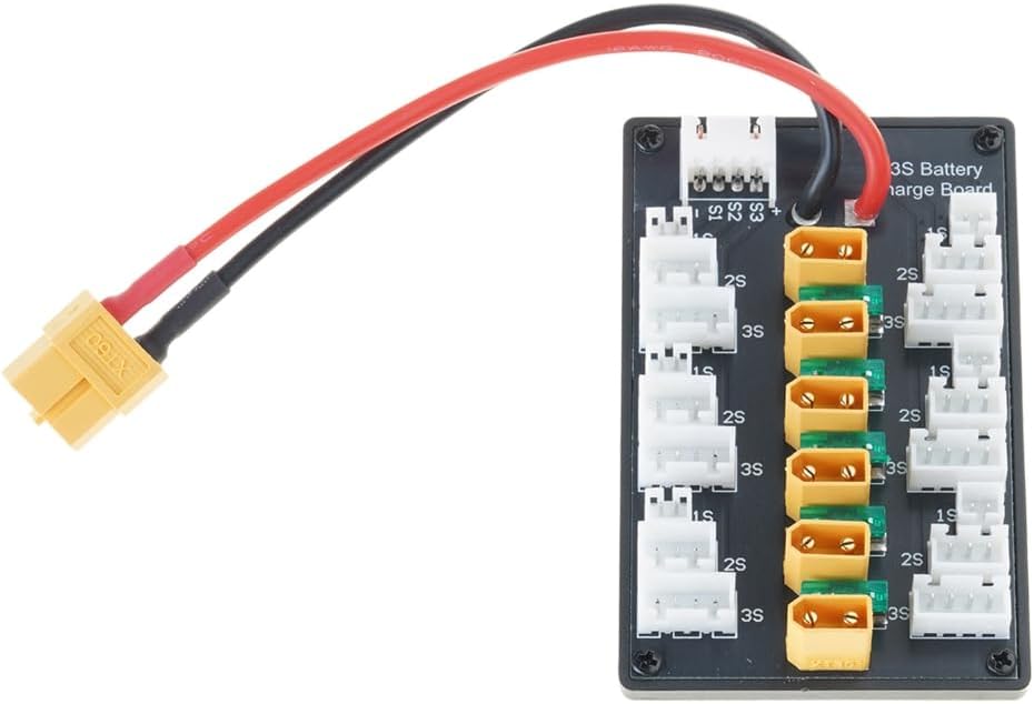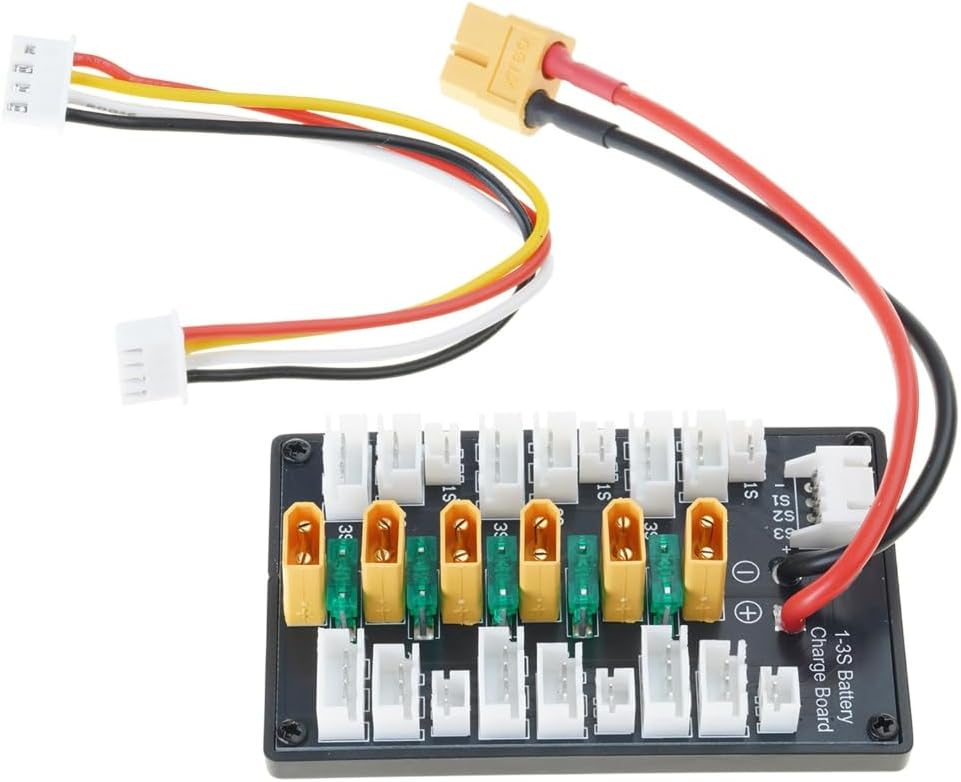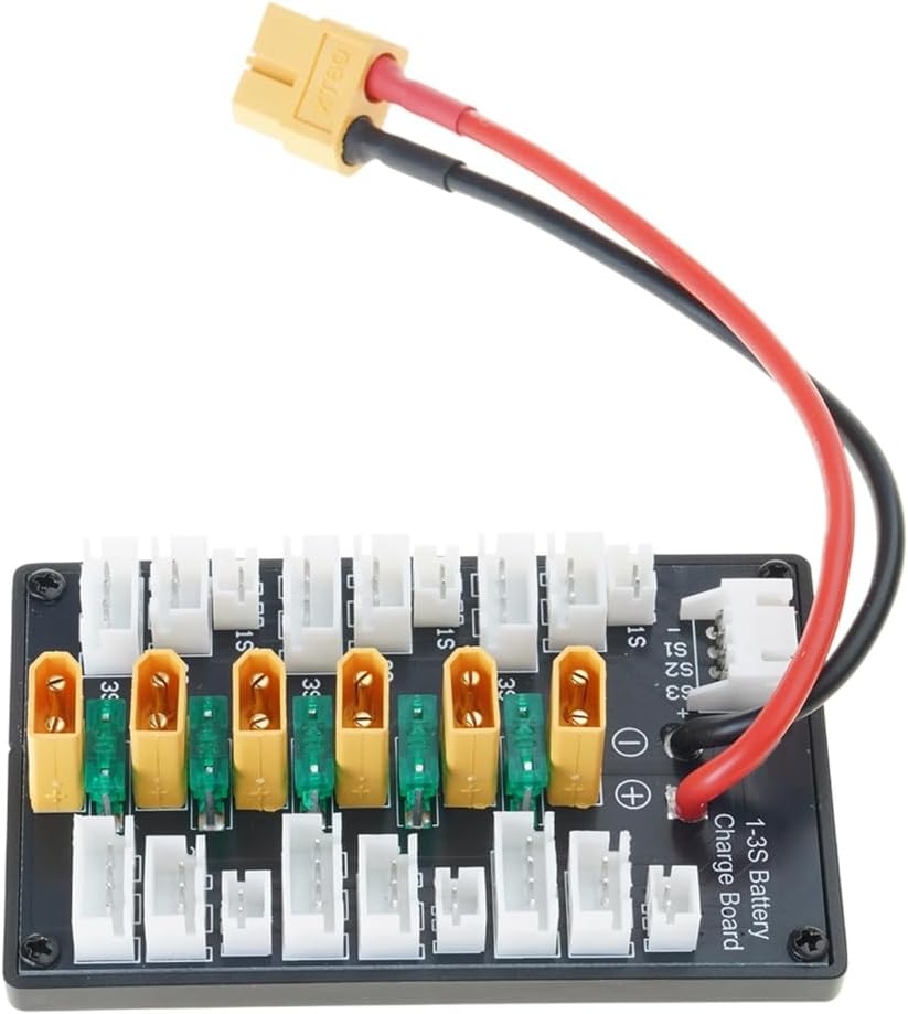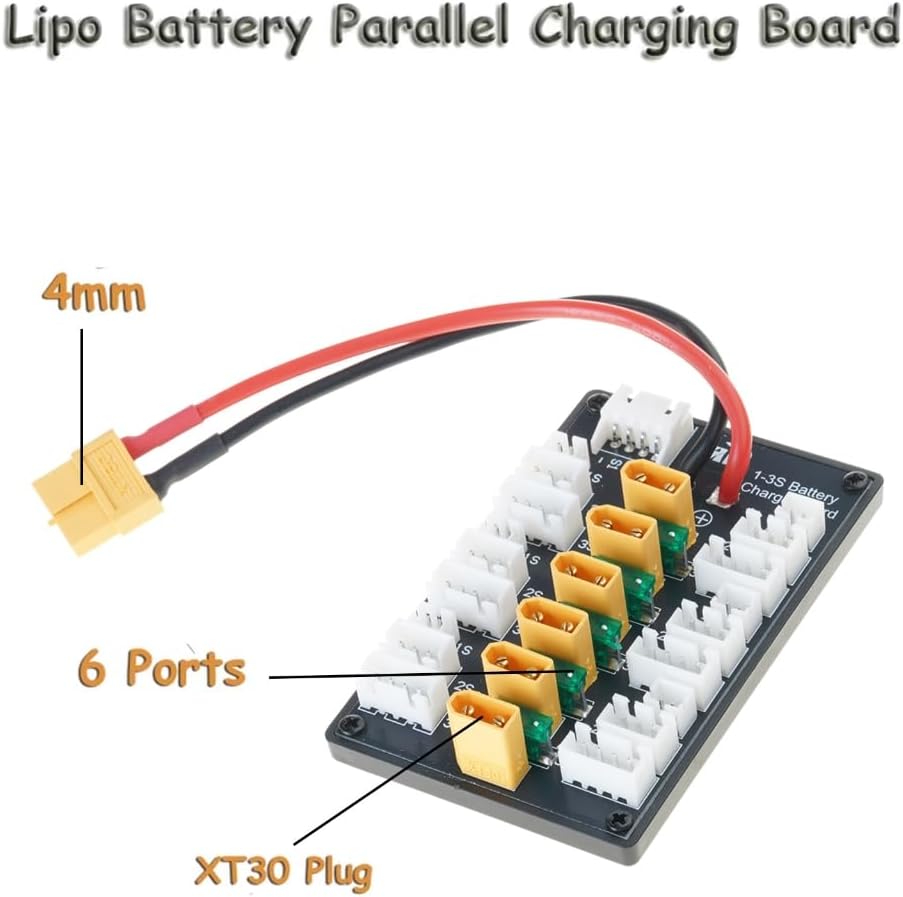 La scheda di ricarica parallela XT30 è per una ricarica efficiente, supportando fino a 20 A corrente di carica. Caricatore compatibile B6, che lo rende uno strumento essenziale per una ricarica rapida e affidabile della batteria. Design durevole, questa scheda include un cavo in silicone da 18 AWG per l'uscita del bilanciamento, garantendo un uso prolungato e una facile connessione senza cablaggi complessi. Per gli appassionati di droni e appassionati di modelli remoti, questa scheda di ricarica consente agli utenti di caricare più batterie contemporaneamente, migliorando il tempo di volo e l'efficienza operativa. Perfetto per attività all'aperto, lavori di laboratorio o progetti fai da te domestici, fornisce una soluzione flessibile ed efficiente per caricare facilmente le batterie.