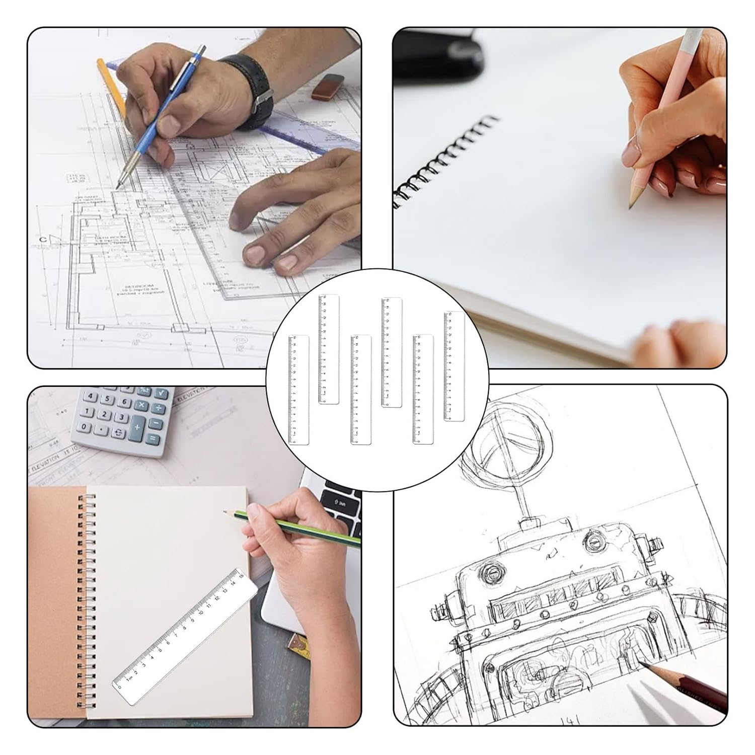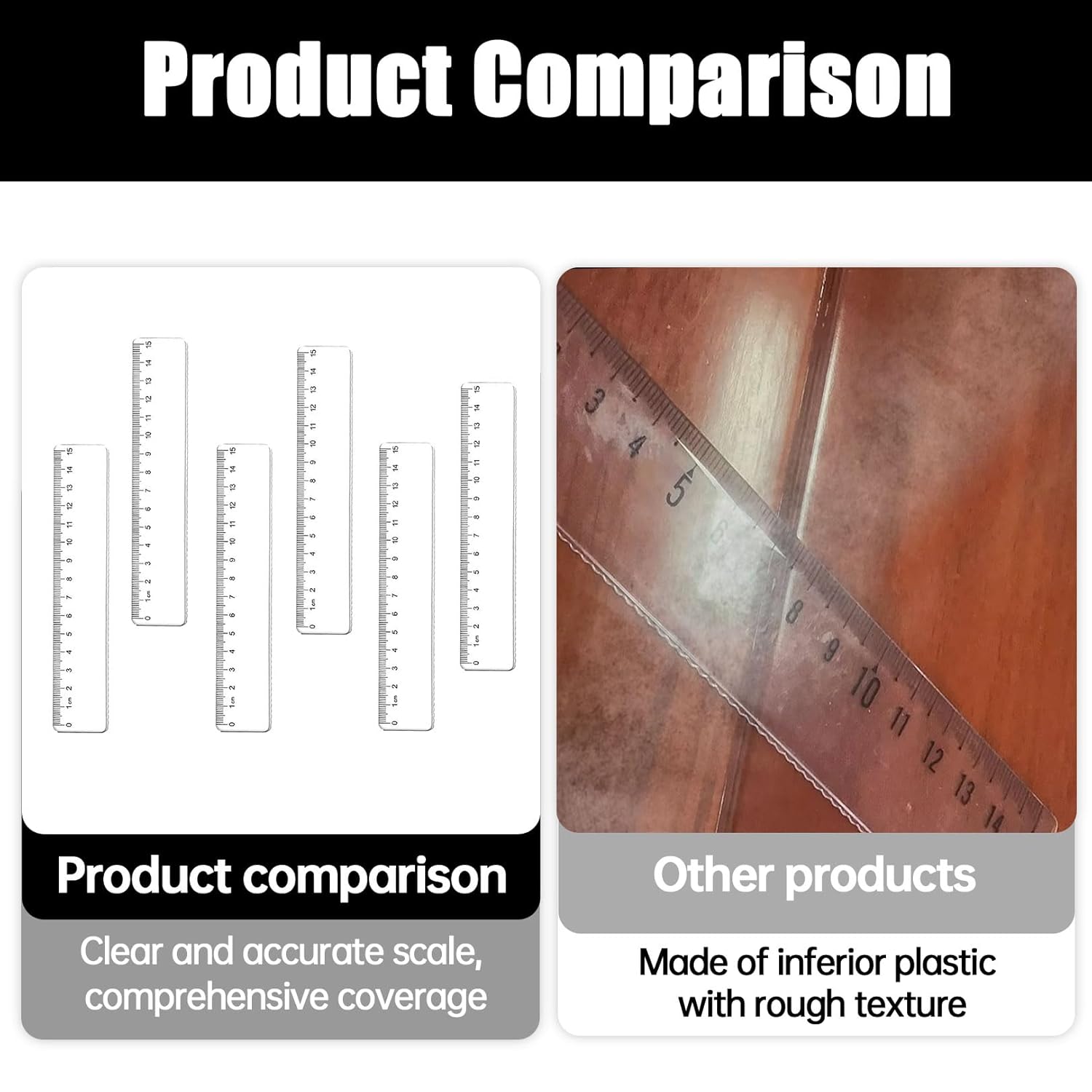 1. Riceverete un set di 6 righelli con una lunghezza di 15 cm. Con questo set avrete abbastanza righelli per diverse applicazioni, che si tratti di lavori scolastici, attività di ufficio o compiti a casa. 2. I righelli sono realizzati in plastica. Questa plastica è trasparente, il che significa che puoi vedere bene gli oggetti o i documenti sottostanti durante la misurazione o il disegno. 3. I righelli sono dotati di una suddivisione in centimetri sottili, che garantisce un'elevata precisione nelle misurazioni. La loro struttura flessibile consente loro di essere facilmente inclinati senza rompersi. Il design è semplice e maneggevole, perfetto per l'uso quotidiano. 4. Questo prodotto è ideale per i bambini delle scuole elementari che stanno appena imparando a misurare e disegnare. Ma anche gli adulti negli uffici o a casa possono usarlo. È adatto a vari scenari come disegnare, misurare documenti, bozze a scuola o quando si lavora su progetti in ufficio. 5. Grazie per aver scelto il nostro set di righelli Siamo orgogliosi di offrire un prodotto di alta qualità. Il nostro team di assistenza clienti è sempre a vostra disposizione per rispondere a tutte le domande e garantire un utilizzo ottimale del vostro set di righelli.