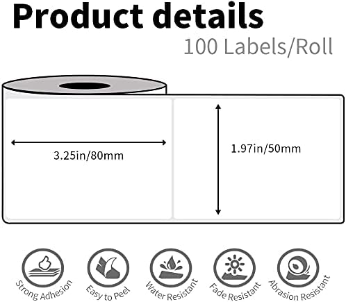Dettagli: 50 mm (1,97") x Lunghezza: 80 mm (3,15"), Quantità: 6 rotoli, Colore: Nero su bianco. Suggerimenti: Estendere la carta nella direzione indicata dalla freccia sulla carta per circa 1-2 cerchi, quindi stringere o bloccare il supporto Compatibilità al 100%: Compatibile con la stampante di etichette Phomemo M110/M120/M200/M220. Funziona con le stampanti di etichette termiche che utilizzano carta adesiva nera su bianco Forte praticabilità e facilità di sbucciatura: La carta termica può essere utilizzata sia per applicazioni esterne che interne, come la classificazione della cucina e dei documenti e l'etichettatura degli articoli. È presente anche una linea di taglio appositamente progettata per facilitare il distacco della carta Non è necessario l'uso di inchiostro o toner: L'etichettatrice Bluetooth non richiede inchiostro perché è una stampante termica diretta e consente di risparmiare denaro. È perfetto per l'organizzazione della casa o dell'ufficio e per risparmiare denaro Diffuso I nastri per etichette di alta qualità aderiscono a plastica, carta, metallo, legno e vetro e sono ideali per etichettare forniture per ufficio, accessori elettronici, utensili, articoli da cucina, attrezzature per garage, cestini, armadietti, scatole per la conservazione, oggetti personali, artigianato, regali, file e altro ancora, per identificare e organizzare rapidamente gli articoli. Tradotto con www.DeepL.com/Translator (versione gratuita)