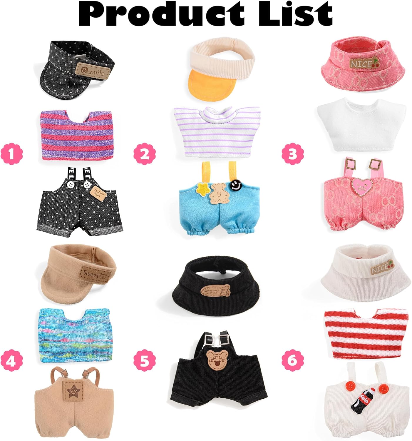 Set di vestiti per bambole alla moda per bambole da 17 cm: vesti la tua bambola con questo set di vestiti alla moda da 17 cm, che consente un gioco comodo e un display elegante. Il set di vestiti per bambole da 17 cm include: 6 set di vestiti con stili diversi (bambola e occhiali non sono inclusi); Vestiti fatti a mano per bambole: meticolosamente realizzati con squisita attenzione ai dettagli, questo vestito garantisce un aspetto unico ed elegante per la tua figura da collezione. Progettato con cura con funzioni regolabili, consente una vestizione senza sforzo e una visualizzazione senza interruzioni. Questo vestito per bambole è compatibile con bambole da 17 cm, design carino con accessori come cappello a maglia, borsa... Puoi vestire le tue bambole con uno stile diverso come desideri. Facile da usare: i vestiti e gli accessori per bambole sono semplici nel design, i bambini possono facilmente cambiare vestiti e accessori per le loro bambole da 17 cm da soli, che non solo possono coltivare le loro abilità pratiche, ma anche stimolare la loro creatività;