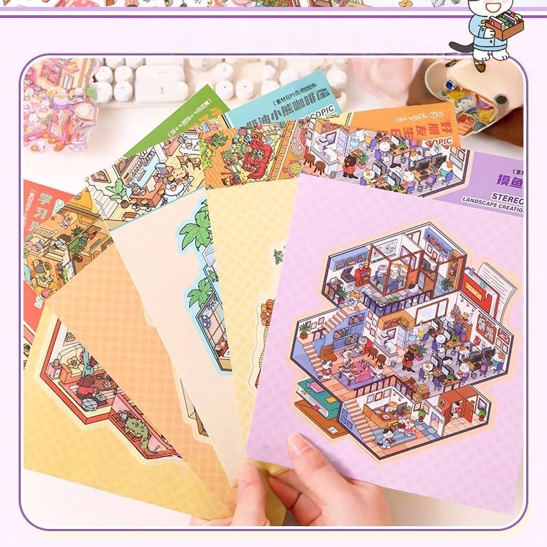Terapia con adesivi, 20 temi che portano creatività infinita per liberare la tua immaginazione con il nostro set di scene 3D con 20 temi unici. Ogni kit di strumenti include adesivi di scena riutilizzabili, piastre di sfondo e uno schizzo di precisione perfetto per creare scene di adesivi magici che ispirano gioia e calma. La bellissima scena di adesivi 3D è realizzata con cura con carta di alta qualità e i nostri adesivi per case 3D fai-da-te non sono solo durevoli ma anche sicuri e non tossici. I motivi delle scene degli adesivi ad alta risoluzione forniscono straordinari effetti stereoscopici, mentre le superfici rivestite garantiscono che non si strappino facilmente. Utilizziamo materiali PET di alta qualità per realizzare adesivi che garantiscono un'applicazione facile e duratura. Con le pinzette legate l'adesivo può essere facilmente strappato senza piegarsi. Questi adesivi con mini scene 3D sono regali amorevoli per compleanni, vacanze o occasioni creative che attirano una vasta gamma di interessi ed età. Adatto a bambini e adulti, questo regalo sorprenderà le persone che ami e fornirà loro uno sbocco creativo e una fonte di gioia. Che tu voglia creare un regalo speciale o personalizzare i tuoi oggetti, i nostri adesivi per case 3D fai-da-te sono un'attività rilassante e divertente. Costruire queste scene può servire come hobby terapeutico per aiutarti a rilassarti e alleviare lo stress. Ideale per riunioni di famiglia, feste di compleanno e altri eventi.