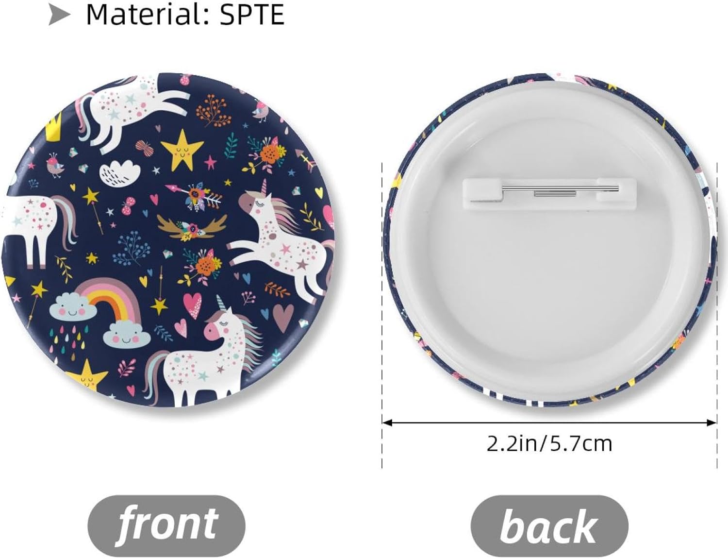 Questi bottoni per zaino sono realizzati in materiale stagnato di qualità, stabili e solidi, non si rompono facilmente, si deformano o sbiadiscono, affidabili per servire a lungo. Puoi inviare i nostri perni e bottoni per zaino come regalo delicato ai tuoi amici e familiari, per mostrare il tuo amore e la tua cura. Specifiche tecniche: Materiale: SPTE Dimensioni: 5,7 cm. Colore: come da immagine. Caratteristiche: Riutilizzabile di alta qualità. Design Pinback, facile da usare; Adatto per vari fai da te su badge; Supporta modelli personalizzati. La confezione include: 6 spille per bottoni. Note: * Si prega di considerare un margine di errore nelle dimensioni. * Il colore può esistere una leggera differenza a causa delle diverse impostazioni dello schermo. * Si prega di tenere lontano dalla portata dei bambini piccoli per evitare rischi di deglutizione