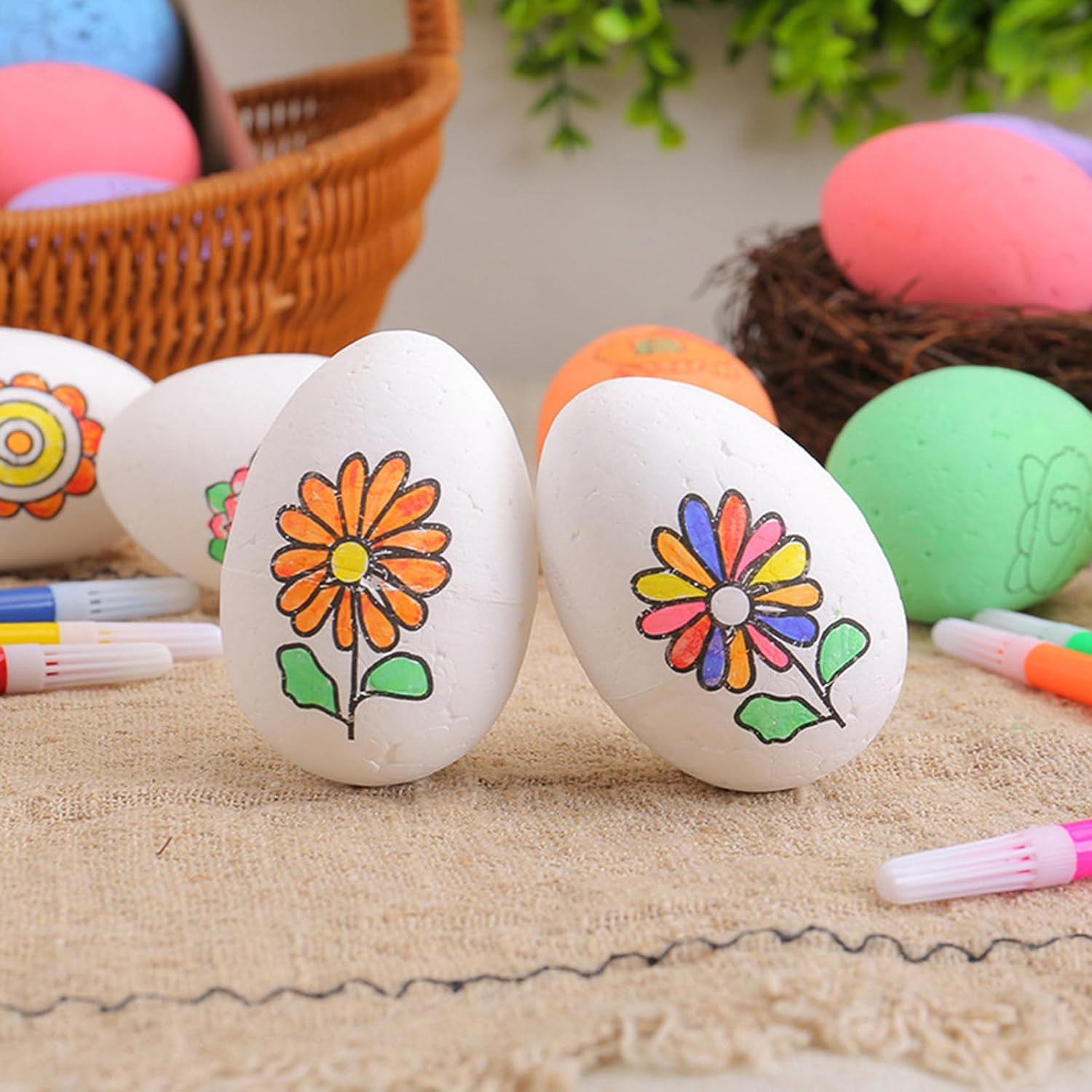 Adatto per bambini dai 3 anni in su, questo set di pittura artistica incoraggia l'espressione artistica e migliora le capacità motorie. Widelu utilizzato per attività di genitori e bambini, corsi di artigianato all'asilo, decorazioni per feste e come presernt per le vacanze, questo set porta divertimento a qualsiasi occasione festiva. Libera la creatività dei tuoi bambini con il nostro set di pittura con uova artigianali, con 6 uova in schiuma e 6 penne ad acquerello colorate, ideali per attività artigianali divertenti ed educative. Trasforma il momento ordinario in una memoria straordinaria con questo set di pittura artigianale con uova, promuovendo l'immaginazione e la creatività nel progetto artigianale. Realizzate in schiuma, queste uova artigianali da pittura con superfici lisce facili da dipingere e decorare, garantendo un divertimento a lungo.