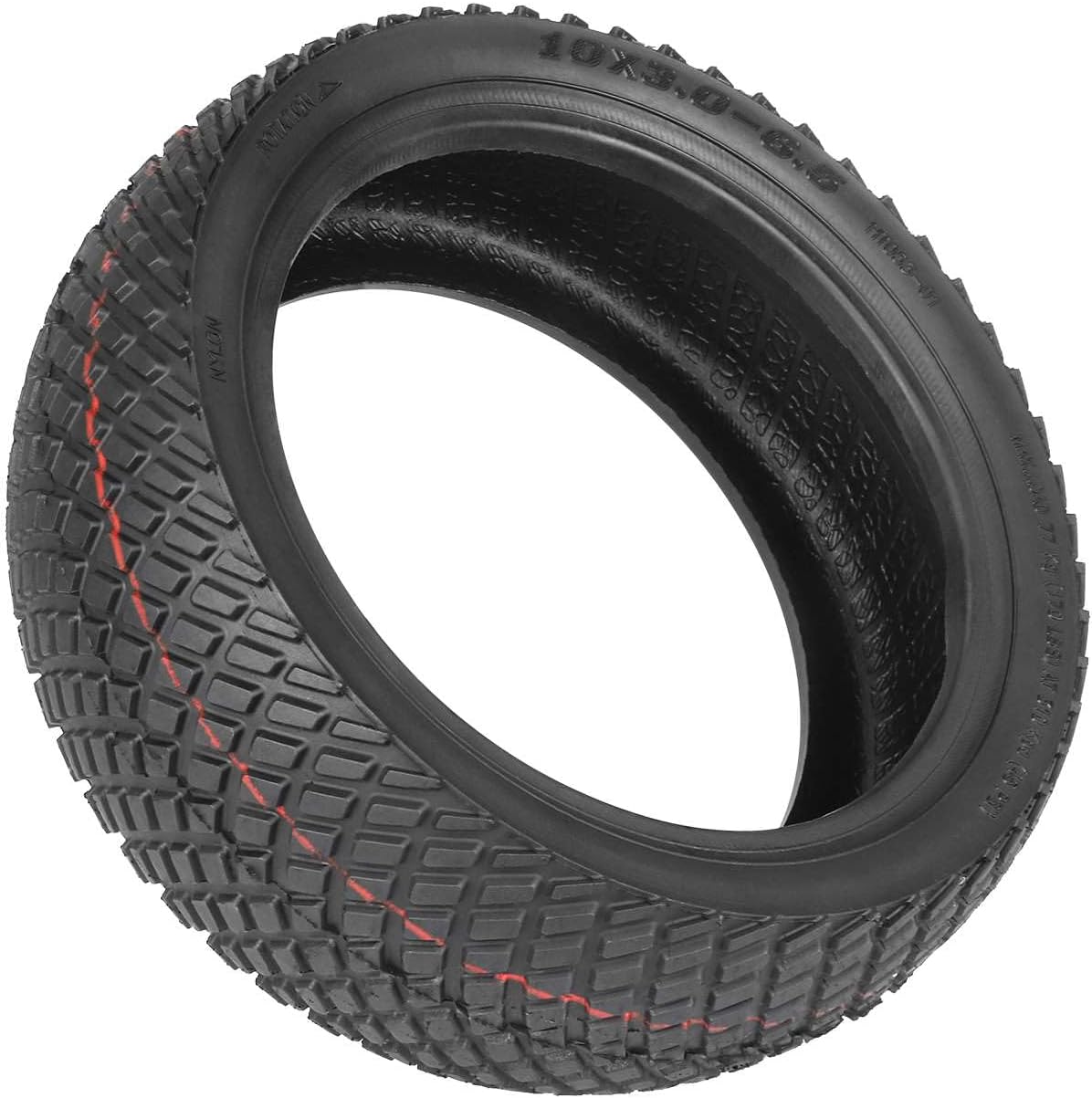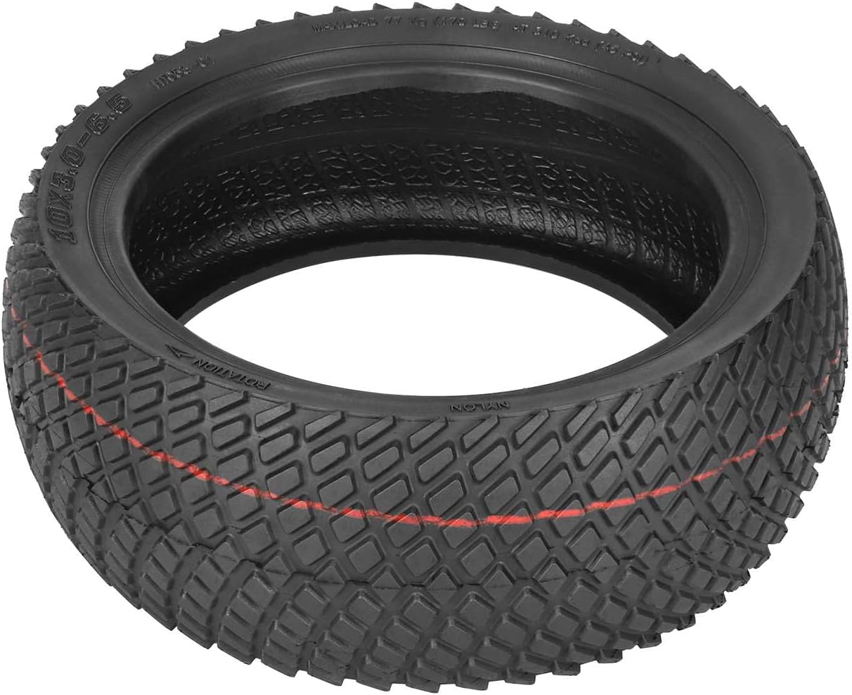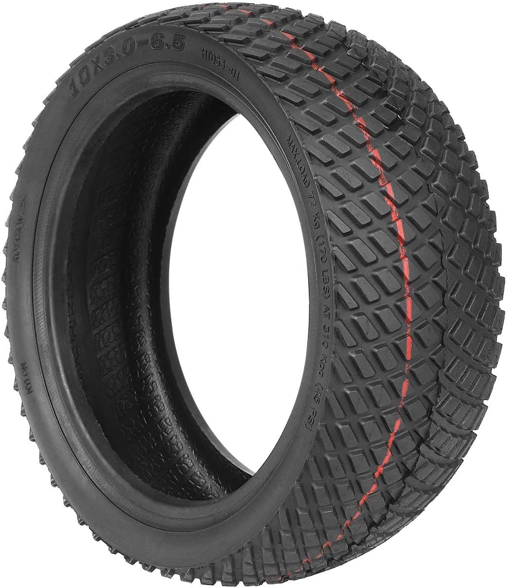 60/70-6,5 pneumatici con profilo stradale più ampio. Pneumatico tubeless 10x3.0-6.5 appositamente progettato per sostituire le ruote anteriori o posteriori originali da 10 pollici per scooter elettrico Ninebot Max G30/Max G30D/Max G30D2. Realizzato in gomma morbida naturale di alta qualità, la sua elasticità è migliore di quella della gomma dura. Resistente all'usura, antideflagrante e resistente alla pressione e può essere utilizzato a lungo. I pneumatici tubeless possono essere utilizzati in condizioni stradali relativamente complesse. Gli pneumatici tubeless non hanno problemi con lo scoppio degli pneumatici. Il problema più comune è una perdita lenta a causa di una foratura, che può essere risolta aggiungendo un po 'di liquido di riparazione pneumatici a vuoto. Profilo profondo, antiscivolo, migliore drenaggio, eccellente assorbimento degli urti, leggero, durevole, elasticità moderata. Grazie al suo motivo antiscivolo, può essere utilizzato in modo sicuro per lo scooter in caso di neve e pioggia. Rispetto al tubo interno + pneumatico esterno, lo pneumatico tubeless è più comodo da installare e utilizzare, resistente all'usura e alle forature. Rispetto al pneumatico pieno, lo pneumatico tubeless è più favorevole all'assorbimento degli urti e alla velocità.