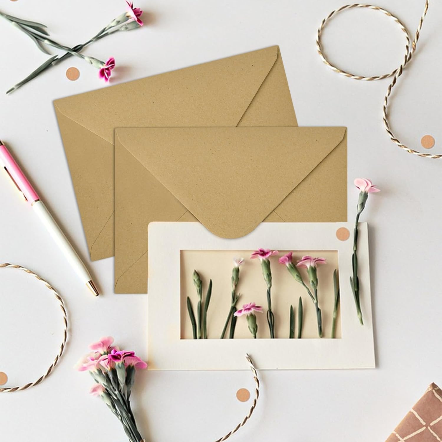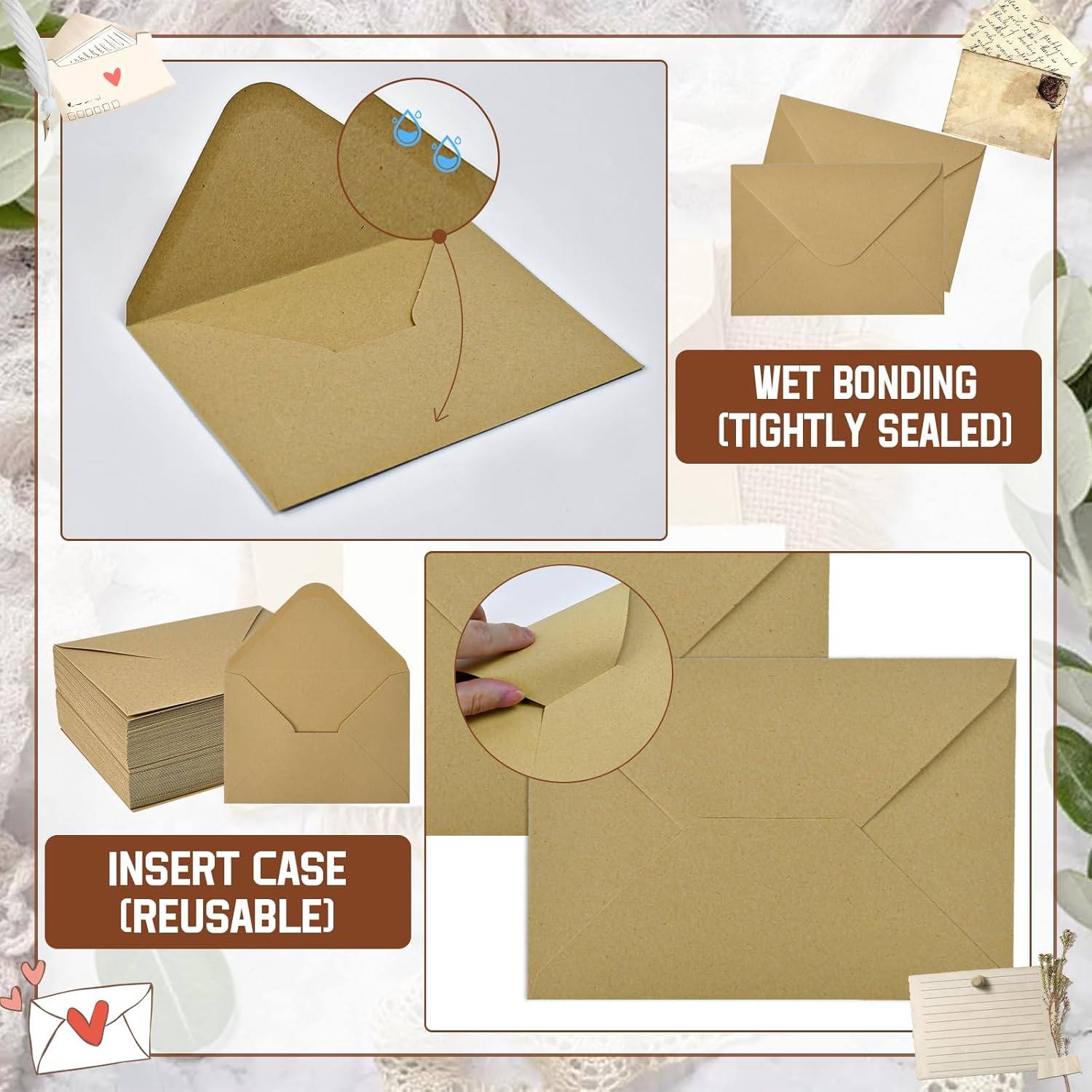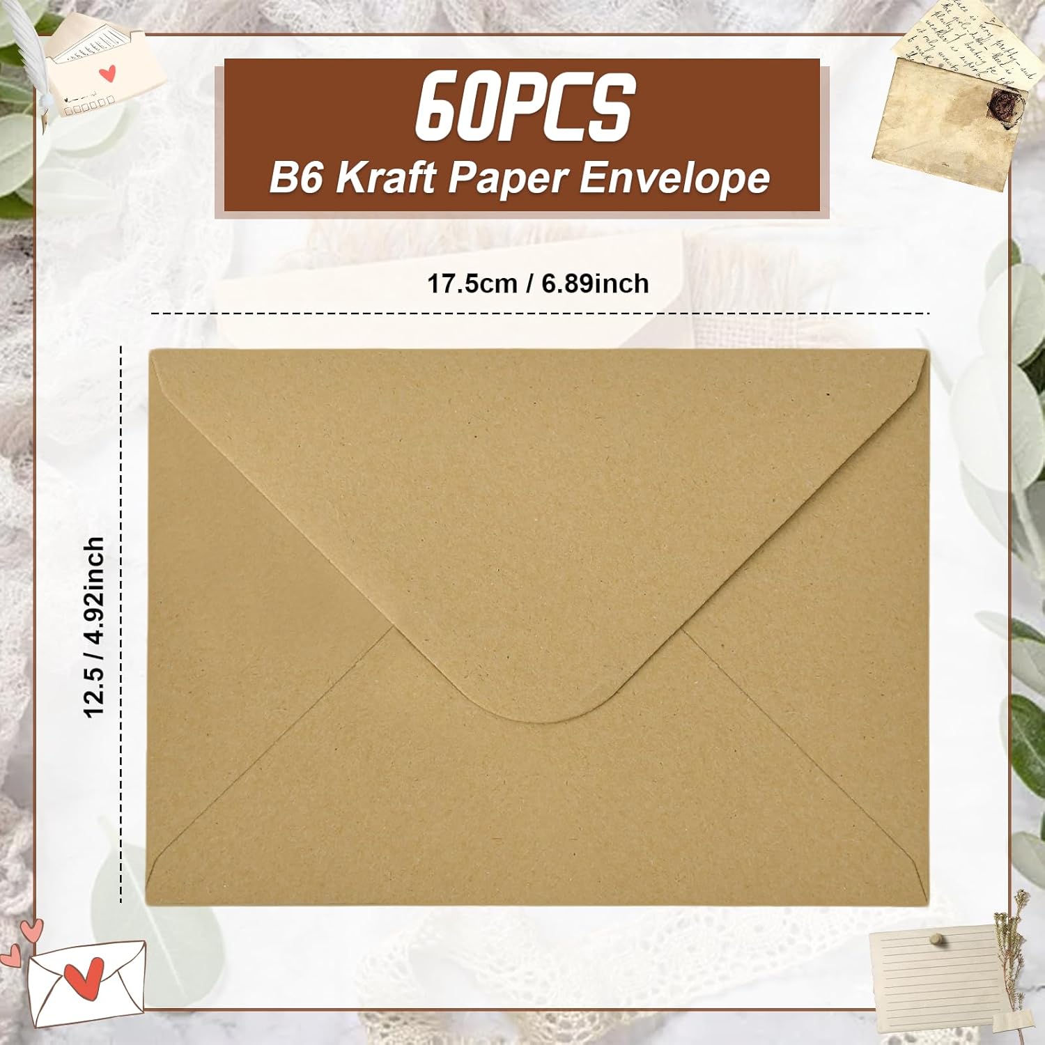 【La carta kraft di alta qualità protegge le tue lettere】 Le buste in carta kraft naturale con una trama resistente proteggono efficacemente le lettere da danni durante il trasporto o lo stoccaggio. Che si tratti di un documento importante o di un caloroso biglietto di auguri, offrono una protezione affidabile per i tuoi contenuti, lettere e biglietti di auguri. La consistenza e la sensazione della carta kraft conferiscono alle tue lettere un tocco di lusso e sicurezza, per una consegna serena 【Chiusura a colla bagnata, facile da usare】 Questa busta di carta kraft ha una tradizionale chiusura a colla bagnata, che si chiude in modo sicuro con un semplice passaggio di un panno o della lingua. Questo classico metodo di chiusura è ecologico e pratico, evitando i disagi e gli sprechi legati al nastro adesivo. Nei giorni feriali o festivi, chiudi rapidamente le tue lettere, dì addio agli strumenti ingombranti e semplifica la tua vita 【Superficie vuota, libera per te da creare】 Questa busta di carta kraft adotta un design senza finestre e completamente vuoto, offrendoti una libertà creativa illimitata. Che tu scriva i tuoi desideri su di essa, aggiunga una firma personalizzata o disegni un motivo unico e creativo, sublimerà la tua lettera e diventerà il mezzo ideale per trasmettere le tue emozioni. Dì addio ai vecchi modelli, mostra la tua attenzione ai dettagli e dai a ogni spedizione un tocco caldo e personale 【Un set di 60 buste per soddisfare varie esigenze】 Ogni set di buste in carta kraft contiene 60 buste con una dimensione di 12,5 * 17,5 cm, adatta per vari biglietti di auguri, inviti, ecc. La quantità è sufficiente, sia per uso domestico che aziendale, per fornirti un numero sufficiente di buste per garantire che le tue lettere e i tuoi documenti siano adeguatamente imballati e consegnati 【Design semplice, adatto a molteplici situazioni】 Questa busta in carta kraft dal design semplice ed elegante è adatta per ogni occasione, dai biglietti d'auguri agli inviti di nozze, agli scambi di lavoro e alle lettere personali. È adatto a molti scenari. La sua perfetta combinazione di lusso e praticità ti permetterà di scegliere la tua busta in ogni circostanza, per una consegna piena di rituale e calore