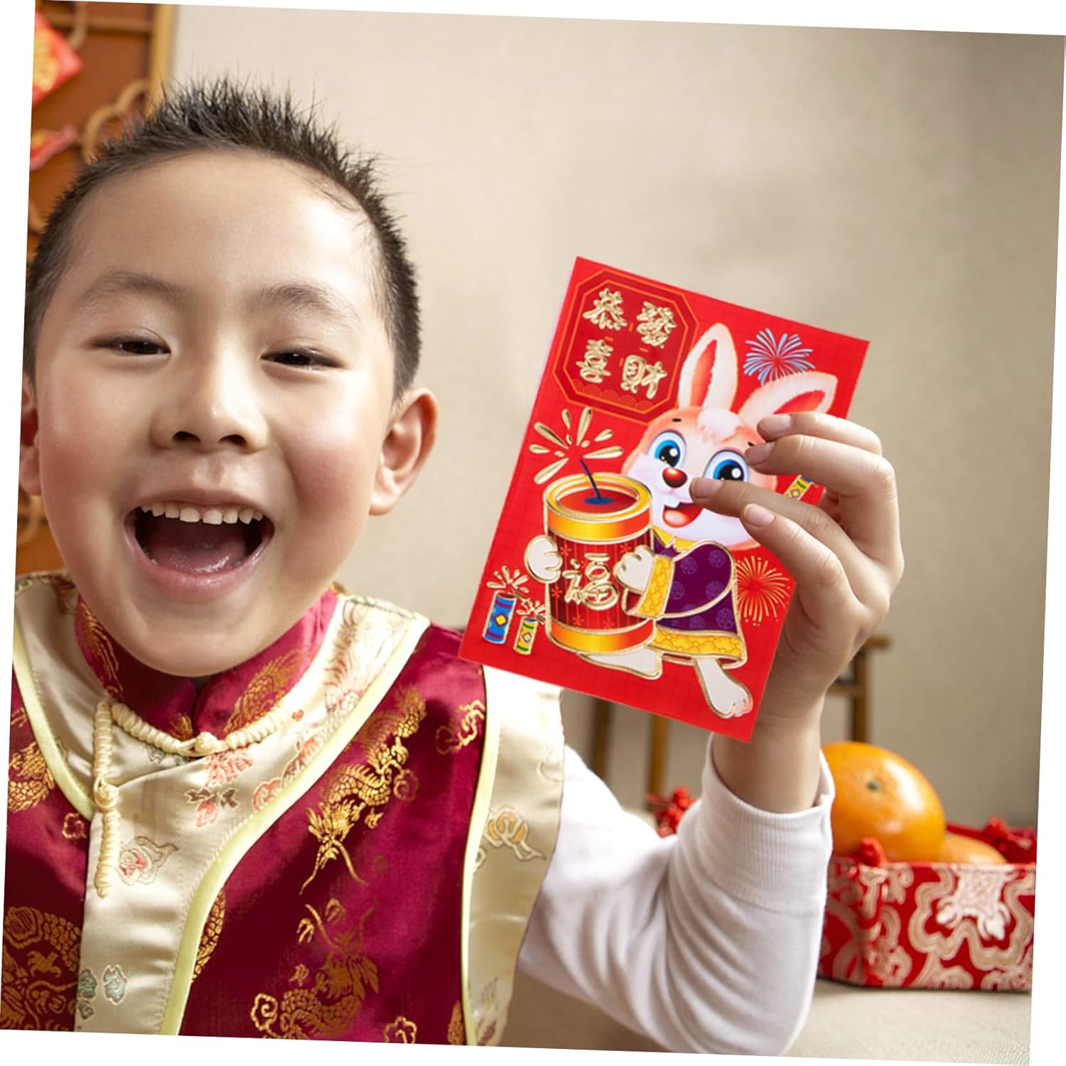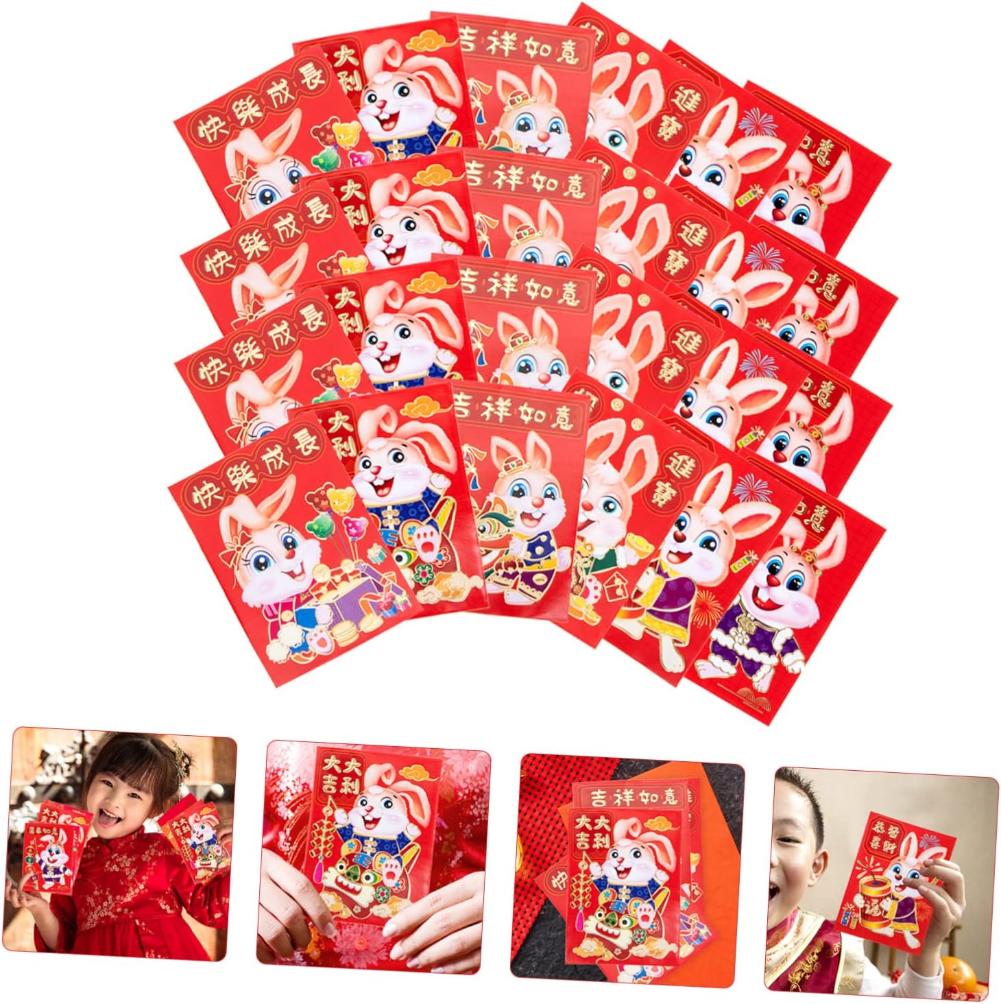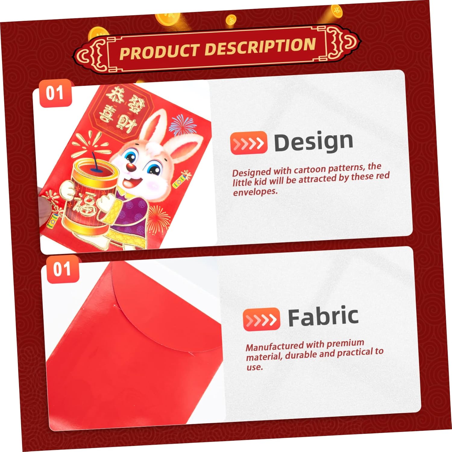 Pacchetto rosso dell'anno del coniglietto: festa per il capodanno lunare cinese, festa, festival o feste, decorazioni per feste di capodanno Pacchetto rosso dei cartoni animati: pacchetti rossi che simboleggiano felicità, prosperità, fortuna, benedizioni ecc., buste di carta rosse Pacchetti di carta rossi con motivo a coniglietto: i pacchetti rossi rappresentano felicità, salute, fortuna e ricchezza durante il anno, tasca per i contanti del anno Buste rosse per l'anno del coniglio: metti un po' di soldi o in buste rosse come busta per il capodanno, il compleanno, il shower, ecc Pacchetti rossi: quantità sufficiente per soddisfare le tue esigenze di quantità, abbastanza da condividerla con i tuoi amici o familiari, busta rossa hong bao