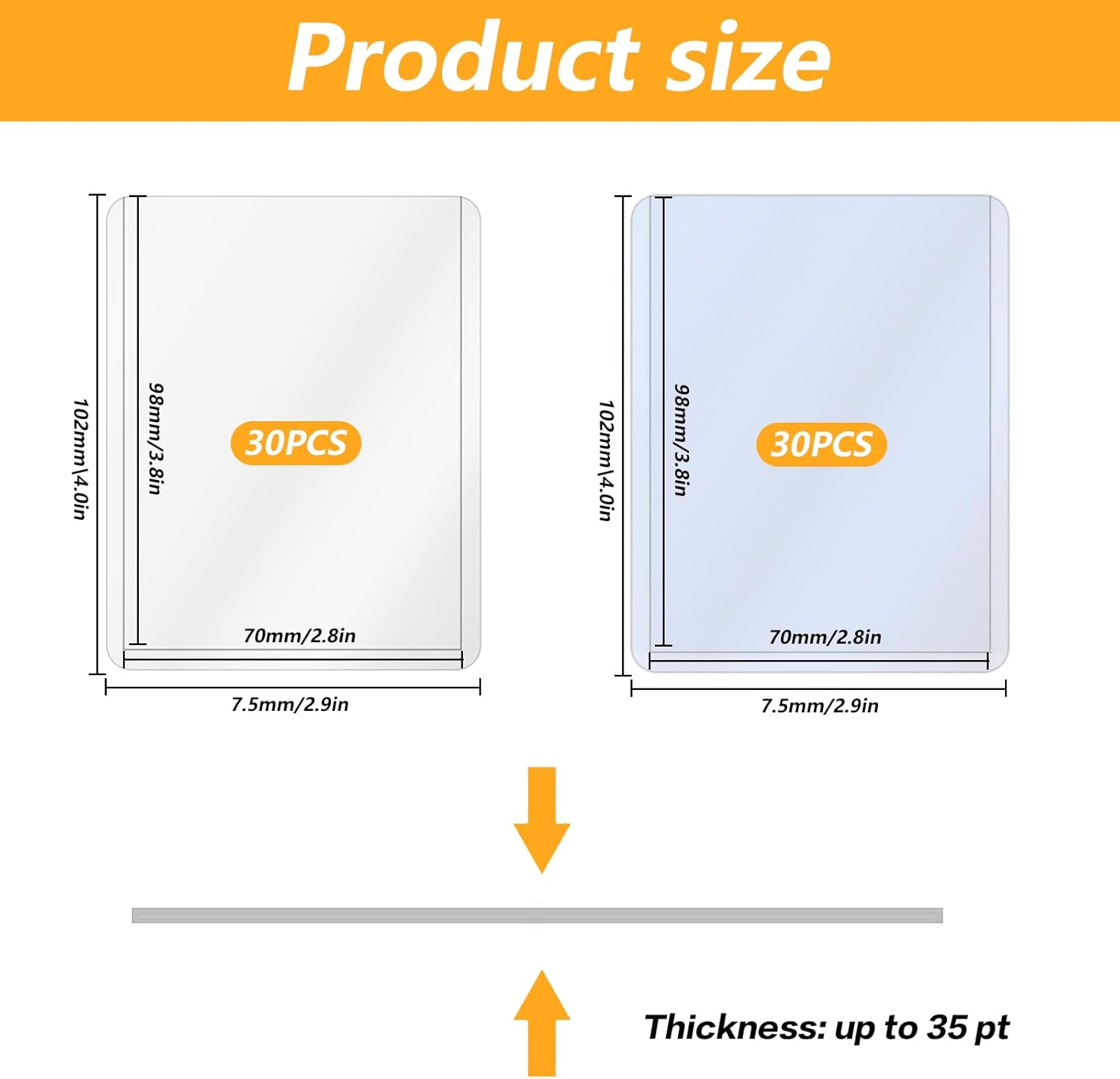 Materiale PVC durevole: i caricatori superiori in carta sono realizzati in PVC di alta qualità, garantendo la robustezza e la durata della custodia protettiva. Non solo può prevenire efficacemente che la carta si pieghi, si pieghi e si usura, ma fornisce anche una lunga durata Design ad alta trasparenza: le custodie per carte sono progettate con alta trasparenza, che può mostrare chiaramente la parte anteriore e posteriore della carta. Non solo protegge la carta, ma consente anche di visualizzare facilmente il contenuto della carta senza estrarre la carta, adatta per l'esposizione e la raccolta Facile da riporre e organizzare: la dimensione delle custodie protettive per carte è di 77 x 101 mm e il design è compatto, facile da riporre e organizzare. Puoi facilmente mettere più carte nella custodia protettiva e classificarle e organizzarle secondo necessità Proteggi le carte: le custodie trasparenti possono raccogliere e proteggere bene le tue carte, proteggere le carte da polvere, graffi, grasso, sporco e mantenere le carte chiare, sicure e ordinate, assicurando che le carte rimangano intatte dopo molteplici usi Ampia applicazione: adatto per carte di varie dimensioni standard, adatto per carte da gioco, carte da baseball, carte fotografiche, carte sportive, carte stelle, carte da baseball, carte da calcio, ecc