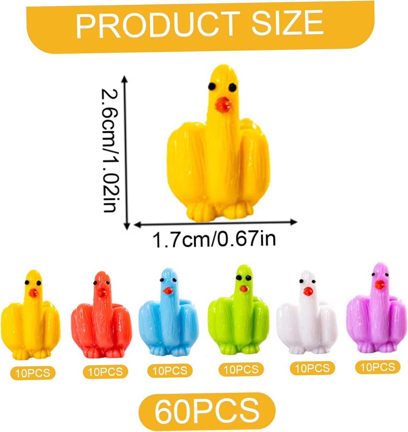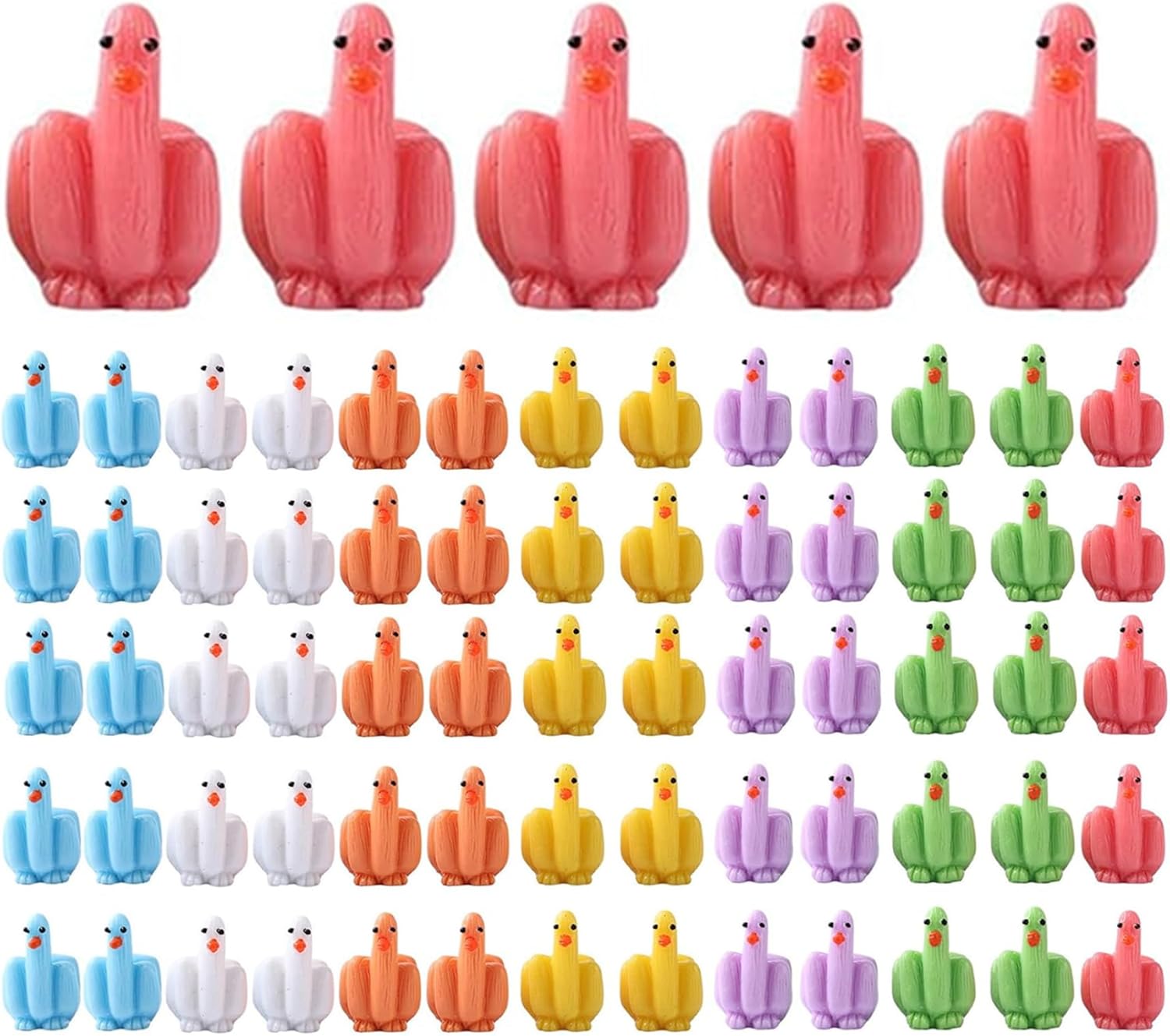 Regalo perfetto o bomboniera: queste mini anatre sono un regalo fantastico o una bomboniera per compleanni, riunioni o eventi speciali. Tutti apprezzeranno il loro design divertente e il loro fascino giocoso, che li rendono ricordi memorabili. Colorato e accattivante: ogni anatra è progettata in uno stile vivace e colorato, assicurando che risalti ovunque venga posizionata. Usali come decorazioni giocose che portano gioia e risate in qualsiasi spazio. Ideale per i collezionisti: ideali per collezionisti e appassionati, queste mini papere aggiungono un tocco divertente e stravagante a qualsiasi collezione. Sono perfetti per mostrare il tuo lato eccentrico o aggiungere decorazioni a tema. Opzioni di decorazione versatili: queste mini anatre in resina da 1 pollice sono ideali per una varietà di usi, tra cui case delle bambole, decorazioni per la scrivania o come accessori unici per le auto. Sii creativo nel modo in cui mostri o usi queste piccole figure affascinanti! Scherzo divertente per la festa: le nostre mini papere da 60 pezzi sono perfette per scherzi a nascondino, aggiungendo un tocco umoristico a qualsiasi riunione. Sorprendi i tuoi amici con queste originali paperelle con un divertente gesto del dito medio!