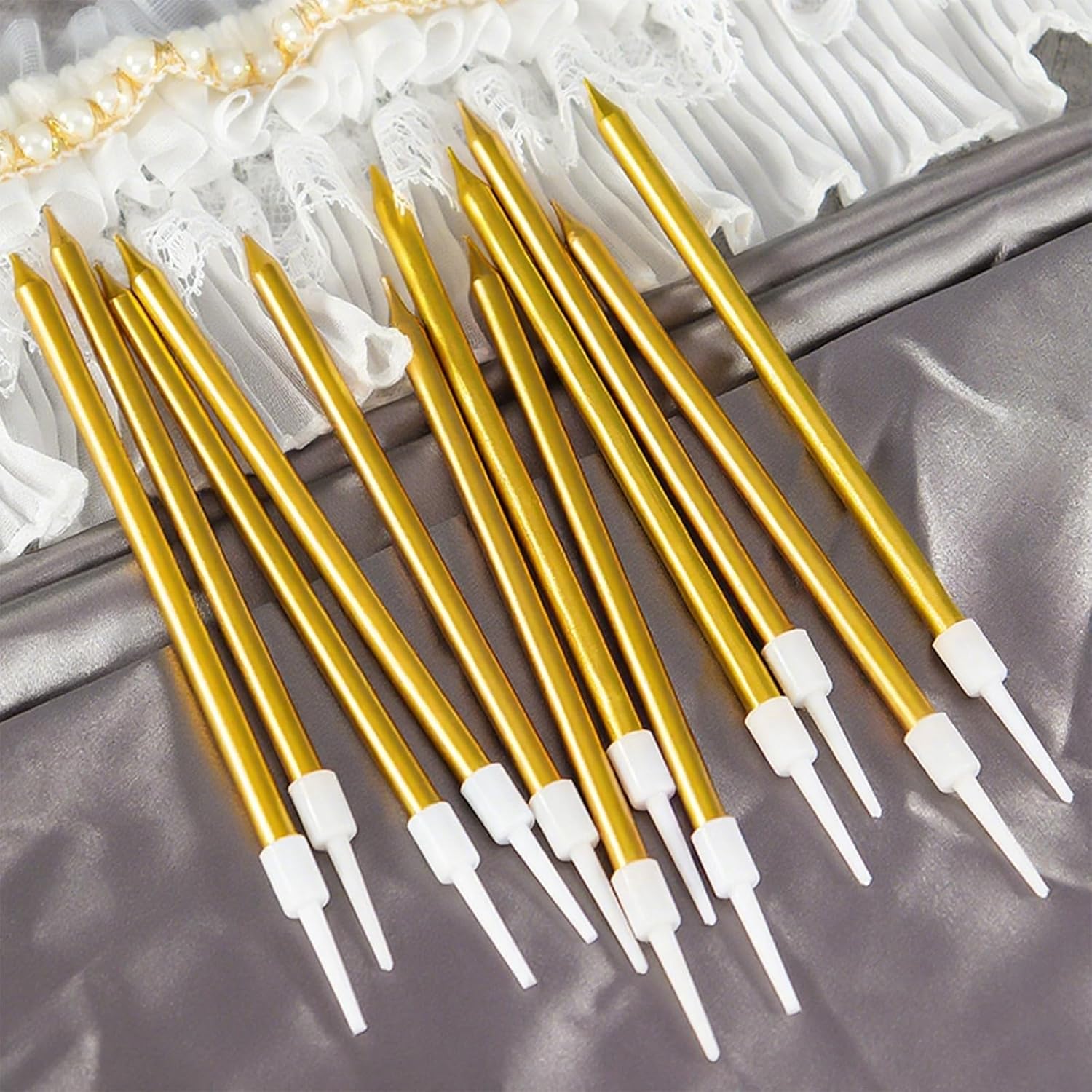 Il pacchetto include: Riceverai 60 candele di compleanno dorate per un'ampia fornitura per decorare più torte. Che si tratti di una grande festa o di una piccola riunione, questo grande cumulo di candele ti assicura di avere abbastanza candele a portata di mano. Materiali di alta qualità: realizzati in paraffina di alta qualità, queste candele di compleanno hanno una fiamma stabile, non tossica, inodore e rispettoso dell'ambiente. Bruciano in modo pulito, non gocciolano la cera e non lo fanno anche dopo un uso prolungato, rendendolo un'opzione sicura e affidabile per fare qualsiasi torta. Design accattivante: superfici dorate lucide ed eleganti, queste candele aggiungono un tocco di eleganza a qualsiasi celebrazione. Facile da inserire e fissare sulla torta, il loro aspetto scintillante e la loro estetica moderna promuovono immediatamente l'atmosfera festiva. Prestazioni eccezionali: le fiamme sono stabili e vibranti quando bruciano e il loro design allungato garantisce che rimangano visibili e verticali. Il tempo di bruciatura prolungato offre un sacco di tempo per cantare, festeggiare e fare un desiderio, aggiungendo gioia a ogni momento di compleanno. Ampia gamma di applicazioni: perfette torte e dessert, queste candele versatili si adattano a una varietà di occasioni, tra cui compleanni, matrimoni, battesimi infantili, anniversari, San Valentino, Natale e altro ancora. Il loro fascino universale li rende un must in qualsiasi decorazione festiva.