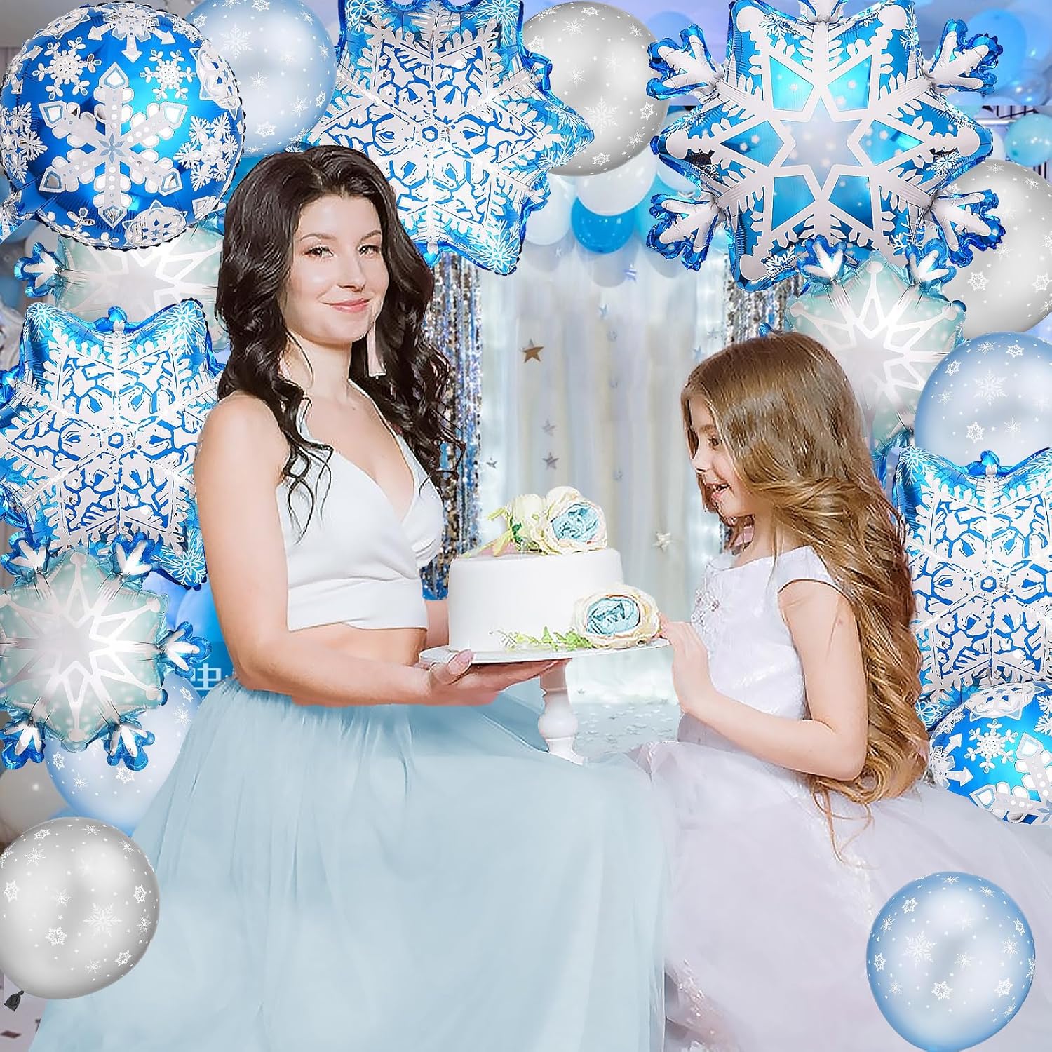 Palloncini con fiocchi di neve: riceverai 10 palloncini foil con fiocchi di neve, 50 palloncini stampati con fiocchi di neve, 2 colori, blu e argento, 25 di ogni colore, creeranno un momento felice e indimenticabile per te. Materiali di alta qualità: i nostri palloncini con fiocchi di neve sono realizzati in foglio di alluminio e lattice di alta qualità, sicuri e non tossici, facili da gonfiare, durevoli e una buona decorazione per la tua festa. Puoi tranquillamente lasciare che i tuoi bambini interagiscano con i palloncini e si divertano. Facile da decorare: questo palloncino di compleanno può essere riempito con elio e aria, può essere utilizzato da solo o combinato con altre decorazioni con palloncini, puoi divertirti a creare decorazioni per feste con familiari e amici. Design raffinato: i palloncini in lattice sono stampati con motivi di fiocchi di neve blu e argento, i palloncini in foil con fiocchi di neve sono belli e accattivanti. Ottengono il miglior effetto visivo se utilizzati per la decorazione in ogni occasione. Forniture per feste versatili: aggiungi un tocco di magia invernale a ogni occasione con le nostre affascinanti decorazioni con palloncini. Perfetto per feste di compleanno, feste a tema invernale, decorazioni natalizie e altro ancora. Bellissimi palloncini invernali decorano la tua stanza, le finestre, il giardino e altro ancora, aggiungendo una vivace atmosfera natalizia e invernale!
