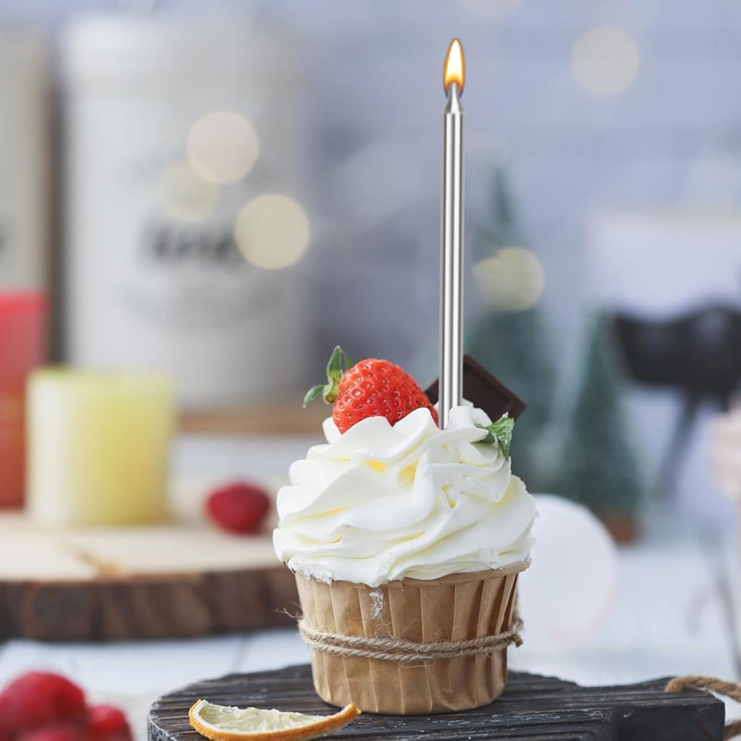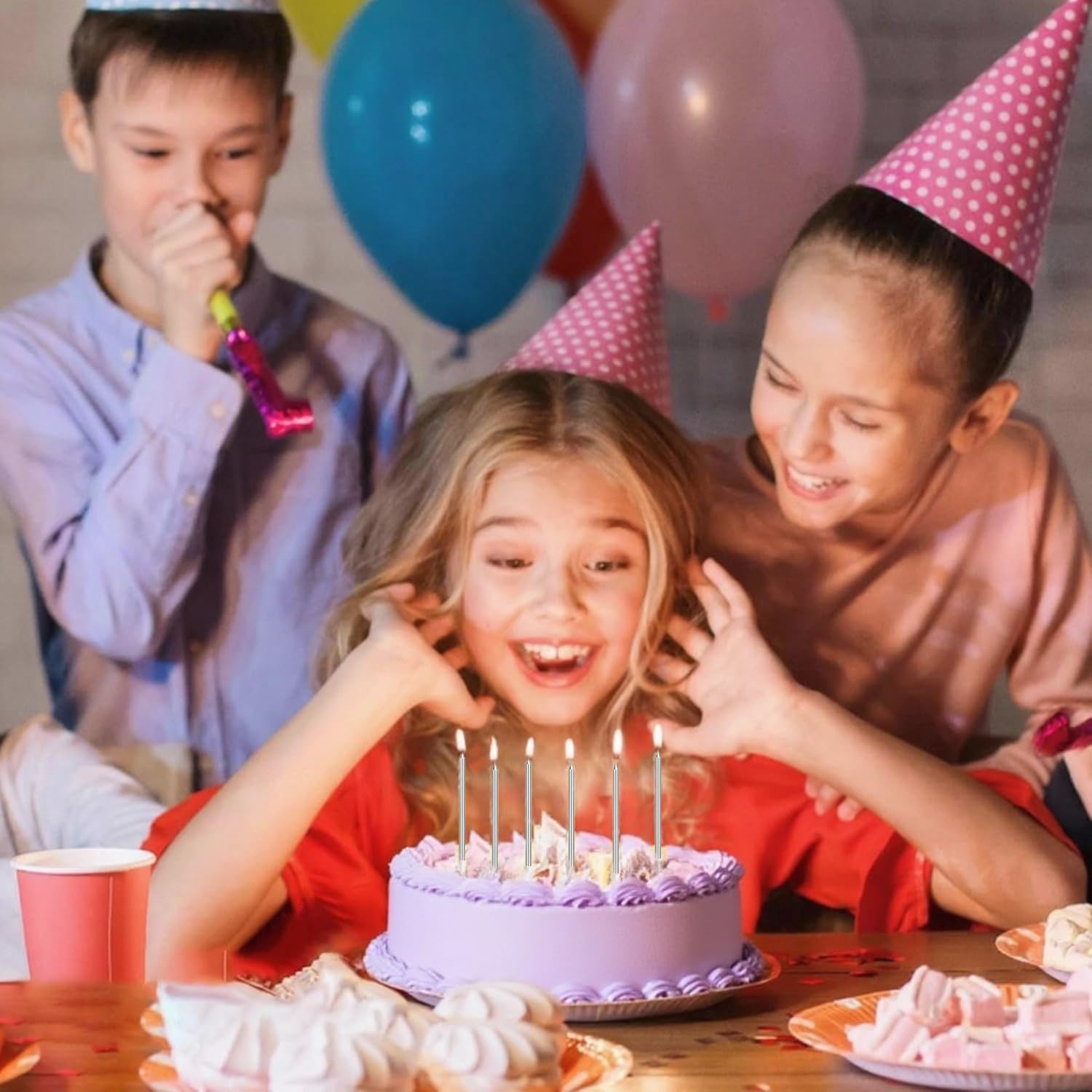 Materiale sicuro: le candeline di compleanno sono realizzate in paraffina di alta qualità, sono squisitamente realizzate, facili da accendere, bruciano inodore, sono atossiche e sicure da usare. Le candeline sottili sono perfette per decorare la tua torta. Posizionamento stabile: il set di candeline di compleanno è dotato di una base che garantisce stabilità quando inserite nella torta. La lunghezza è di 13,5 cm e il tempo di combustione è di circa 6 minuti, adatto alla maggior parte delle torte. Stile versatile: la luce accesa è stabile e può creare scenografie splendide, luminose e delicate. L'aspetto argentato si adatta a qualsiasi stile di torta, è semplice ma elegante e può rendere la tua festa ancora più spettacolare. Ampia applicazione: adatto per compleanni, festa della mamma, matrimoni, addii al nubilato, baby shower, festa della mamma, festa del papà e altre celebrazioni. Rendi la tua festa più colorata e creativa. Servizio clienti soddisfacente: ci impegniamo a offrirti un'esperienza di acquisto soddisfacente. Se hai bisogno di assistenza con il tuo ordine, non esitare a contattarci in qualsiasi momento. Il nostro team è pronto a rispondere entro 24 ore e a risolvere qualsiasi problema.
