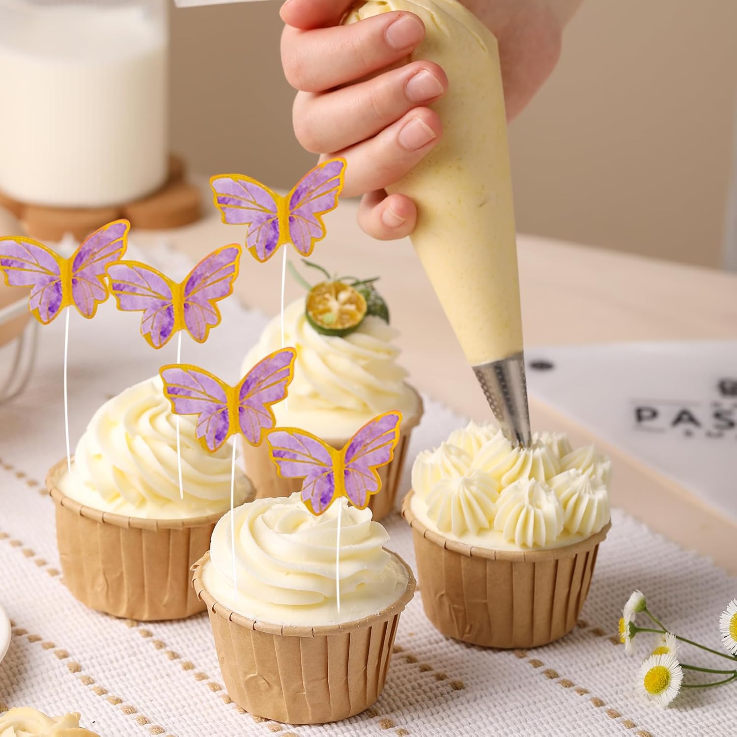 Decorazioni per cupcake a forma di farfalla 3D: aggiungi un tocco magico ai tuoi dessert con queste decorazioni per cupcake 3D a forma di farfalla. Ogni topper è splendidamente progettato per far risaltare torte, cupcake e pasticcini in occasione di compleanni, matrimoni o qualsiasi festa nel paese delle meraviglie, dando ad ogni trattamento una vivida decorazione per torta a farfalla. Qualità premium e materiali sicuri: i nostri topper per cupcake a farfalla sono realizzati con materiali di alta qualità per alimenti. Le decorazioni per torte a farfalla in colori misti sono durevoli, riutilizzabili e leggere, garantendo che rimangano saldamente su cupcake o torte migliorando la presentazione del dessert. Perfetti per molteplici occasioni: questi topper per cupcake a forma di farfalla sono ideali per feste di compleanno, baby shower, matrimoni, eventi a tema paese delle meraviglie e decorazioni quotidiane per cupcake. Trasforma le tue torte e cupcake in capolavori artistici utilizzando topper per cupcake a farfalla e decorazioni per cupcake a farfalla. Facile da usare e versatile: basta inserire questi topper per torta a farfalla nei tuoi cupcake, torte, muffin o pasticcini per un aggiornamento istantaneo. La decorazione per cupcake a farfalla è facile da posizionare, rendendo la decorazione senza stress sia per principianti che per panettieri esperti. Set di 60 pezzi in viola: ogni confezione contiene 60 decorazioni per cupcake a forma di farfalle viola vivide, che li rendono ideali per grandi eventi e feste. Goditi la flessibilità per decorare dessert, creare decorazioni per torte a farfalla 3D e condividere momenti creativi con amici e familiari.