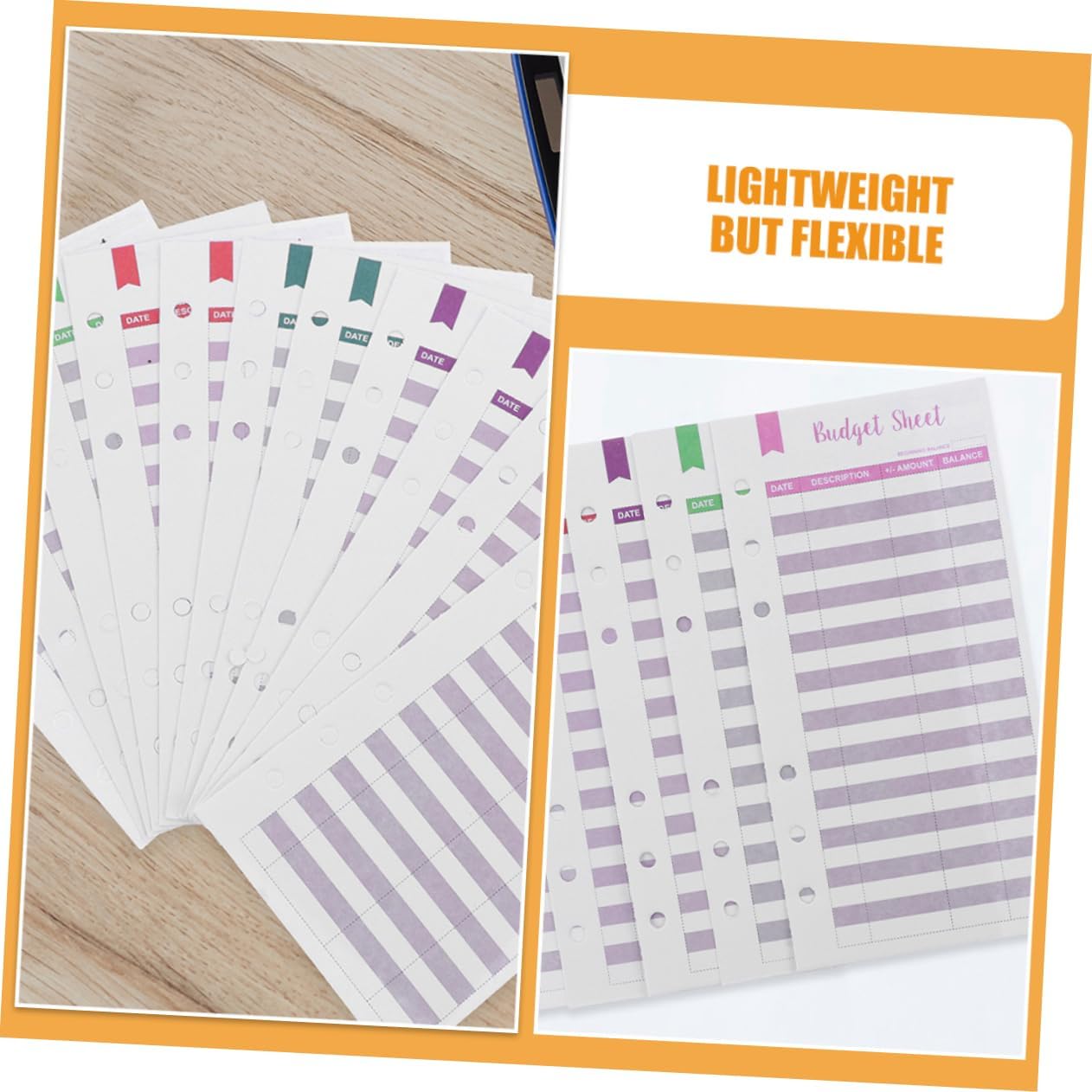 Budget Sheet è adatto per l'uso in case, uffici, aziende e altri luoghi con un'ampia di applicazioni. Condividilo con i tuoi amici perché questa carta budget è pratica e utile. Materiale sicuro, puoi essere di usarlo. Il foglio di budget può aiutarti a registrare il tuo budget in dettaglio, comodo e pratico. Per fissare e raggiungere obiettivi finanziari, per sviluppare buone abitudini, questo prodotto è molto utile. Il foglio di bilancio che registra tutte le entrate e le uscite è facile da usare. Multifunzione e conveniente.