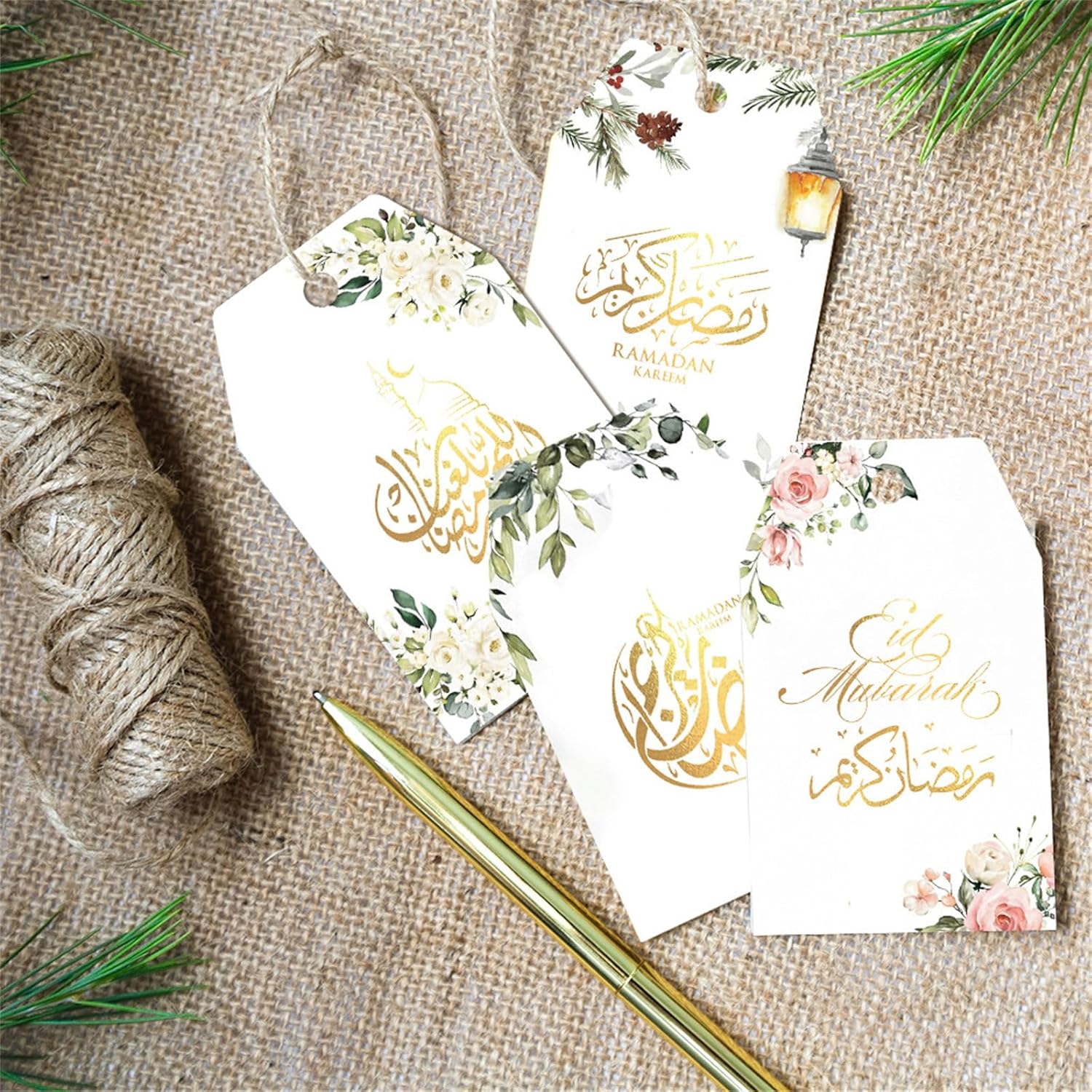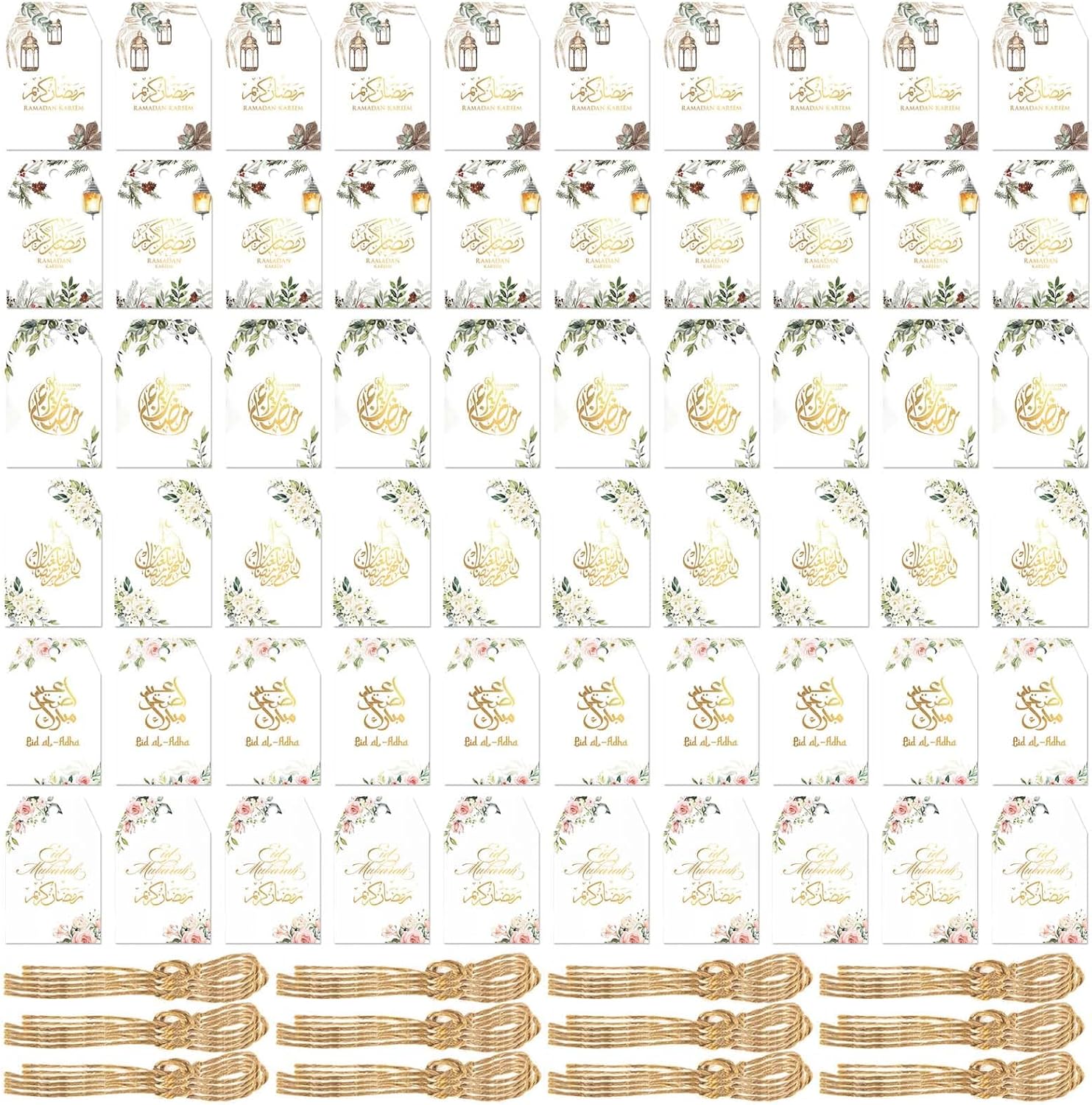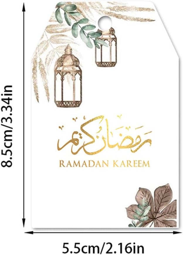 Adatto a famiglie, proprietari di negozi e organizzatori di eventi comunitari che desiderano celebrare gli spiriti del Ramadan e dell'Eid Per decorazioni domestiche, vetrine, luoghi religiosi e riunioni sociali, questi biglietti portano un fascino speciale a qualsiasi ambiente Realizzati in cartone, questi biglietti sono robusti ma portatili, presentano una stampa facile da usare che garantisce colori luminosi e stabili Migliora la tua celebrazione del Ramadan e dell'Eid con le nostre 60 carte Ramadan, progettate per aggiungere un tocco di festival a qualsiasi decorazione o Con spago incluso, facile da appendere o attaccare questi biglietti a tema festival a regali, forniture per feste o oggetti decorativi per un tocco personalizzato