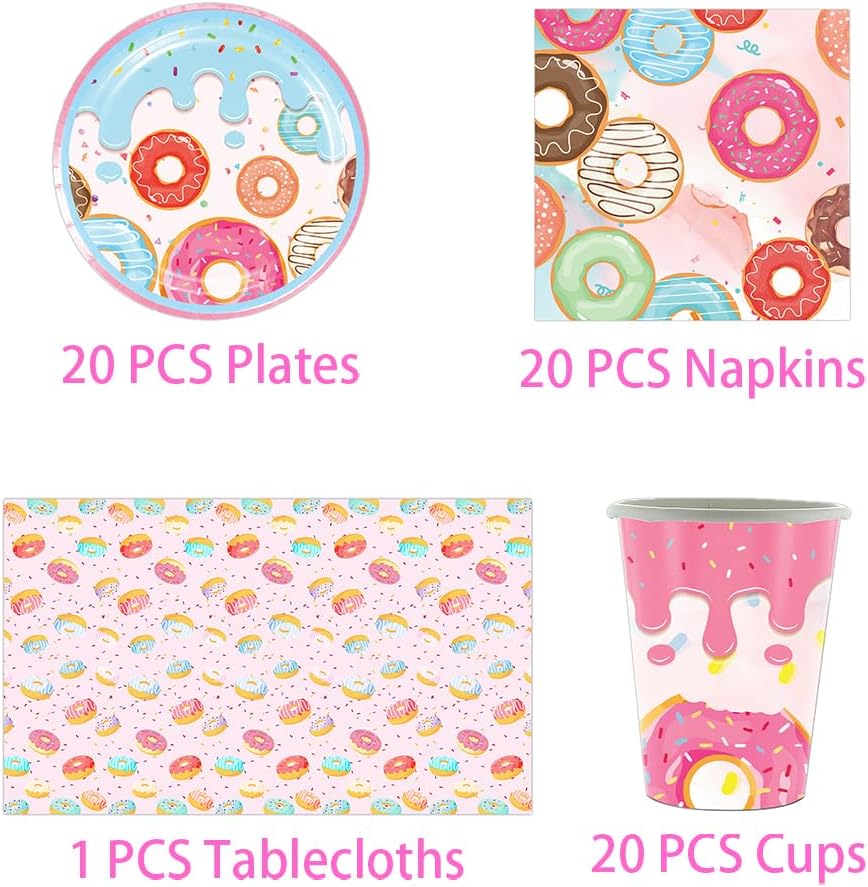 SET INCLUSO: Il nostro partyware a tema ciambella include 20 piatti da 7 pollici, 20 bicchieri di carta, 20 tovaglioli e 1 tovaglia, sufficienti per 20 ospiti. MATERIALI DI ALTA QUALITÀ: Il nostro set di decorazioni da stoviglie per feste è realizzato in materiale biodegradabile, non tossico, ecologico, inodore, resistente, riutilizzabile e sicuro per bambini e adulti. DESIGN UNICO: Ogni piatto, tazza, tovagliolo e tovaglia del nostro set di stoviglie per feste è splendidamente stampato e amato dai bambini di tutte le età, ideale per le feste a tema per bambini. RISPARMIO DI TEMPO: Le nostre stoviglie per feste sono facili da trasportare e da usare e rappresentano un'alternativa alle stoviglie tradizionali. Utilizzarle per la vostra festa vi farà risparmiare molto tempo e vi permetterà di trascorrere più tempo con i vostri amici e familiari. USO VERSATILE: Le nostre stoviglie per feste possono essere utilizzate per molte occasioni, come feste di compleanno, feste a tema, carnevali, Natale, Pasqua, Halloween, anniversari, riunioni di famiglia, picnic e così via.