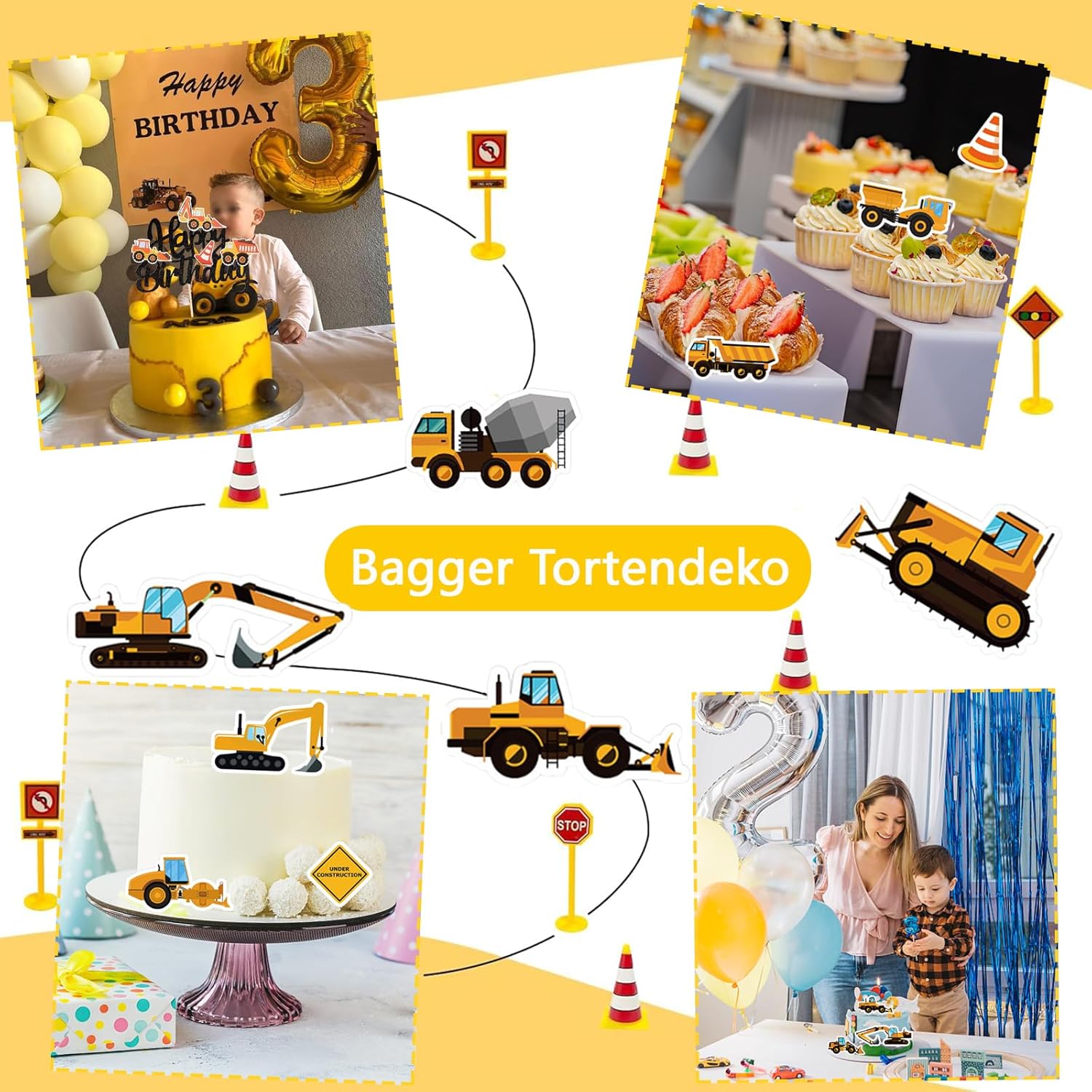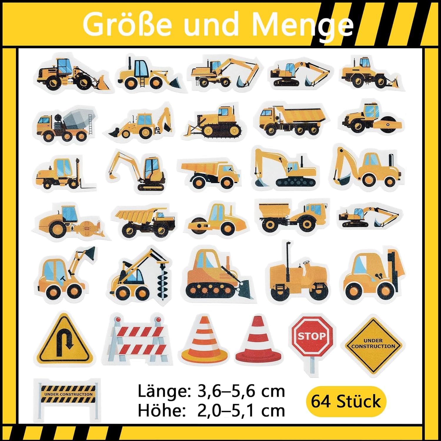 Lista della confezione per decorazioni BAGGER: il set di decorazioni per cupcake con escavatore contiene 64 decorazioni per torte, tra cui escavatori, cartelli stradali, pale gommate, autocarri, rulli stradali, carrelli elevatori, betoniere, camion e altre decorazioni per auto Facile da usare: nessuna struttura più complicata: già in pochi minuti la decorazione perfetta per torta di compleanno è pronta per essere posizionata rapidamente e senza sforzo sui vostri muffin e torte Molteplici possibilità di decorazione: questa decorazione per torte da 64 pezzi contiene escavatori, trattori e camion, ideali per creare cupcake, muffin e così via, per rendere il vostro cibo delizioso, aggiungete un tocco meraviglioso alla vostra tavola Perfetto per feste di compleanno dei bambini: appositamente progettata per i bambini, questa decorazione porta il divertimento e l'eccitazione di una festa a tema in cantiere direttamente sul tavolo e rende la festa di compleanno vivace e unica Consigli: design su un lato, il retro è bianco pianura. Confezionato in una scatola trasparente, molto leggero e portatile, facile da riporre e trasportare