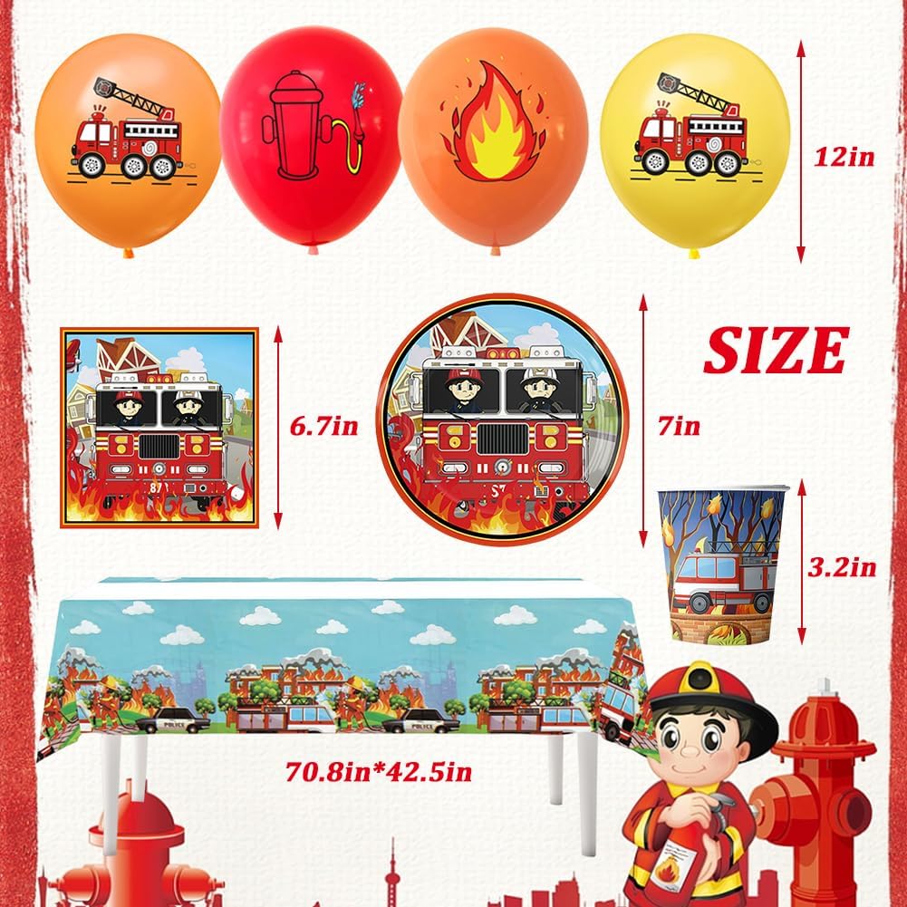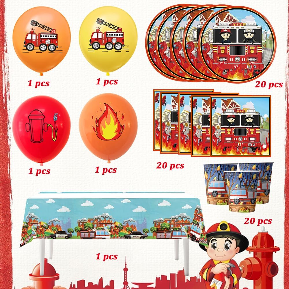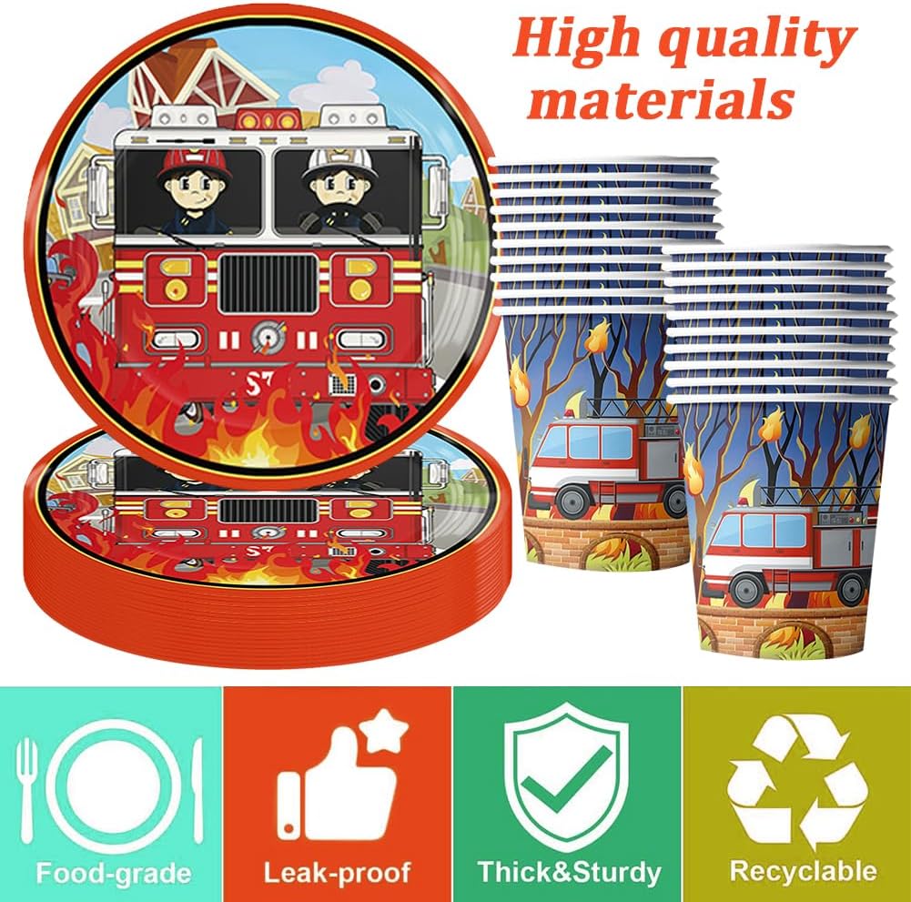 Materiale: Questa bella imbracatura del partito dei vigili del fuoco fatta di materiale di carta spessa di alta qualità, che rende il set di imbracatura robusto, impermeabile, resistente al taglio e durevole. Risparmia tempo: Facile da usare: facile da pulire dopo la festa, in modo da avere più tempo per il vostro tempo libero. trascorrere più tempo con la famiglia o gli amici! Design: ogni ragazzo ha un sogno del pompiere onirico, il bel set di decorazione della festa di compleanno del pompiere renderà il tuo ragazzo molto felice, il pompiere mostrerà il tuo gusto e personalità e realizzerà la tua fantasia del pompiere. Stoviglie per feste: Il set da 65 pezzi 20tazze, 20 piatti, 20 asciugamani di carta, 1 tovaglia, 4 palloncini, Nota: non riscaldare nel microonde! Adatto per la maggior parte delle occasioni: Adatto per feste a tema, Feste di compleanno per ragazze, feste di ringraziamento, riunioni di famiglia, pic-nic, eventi all'aperto, ecc.