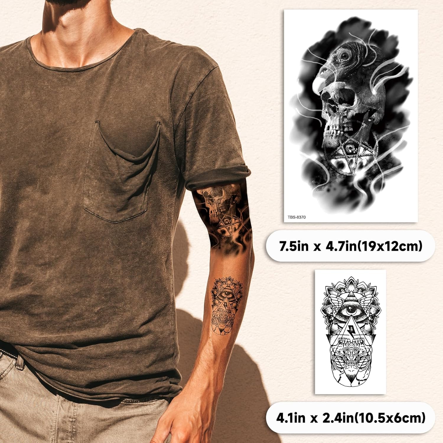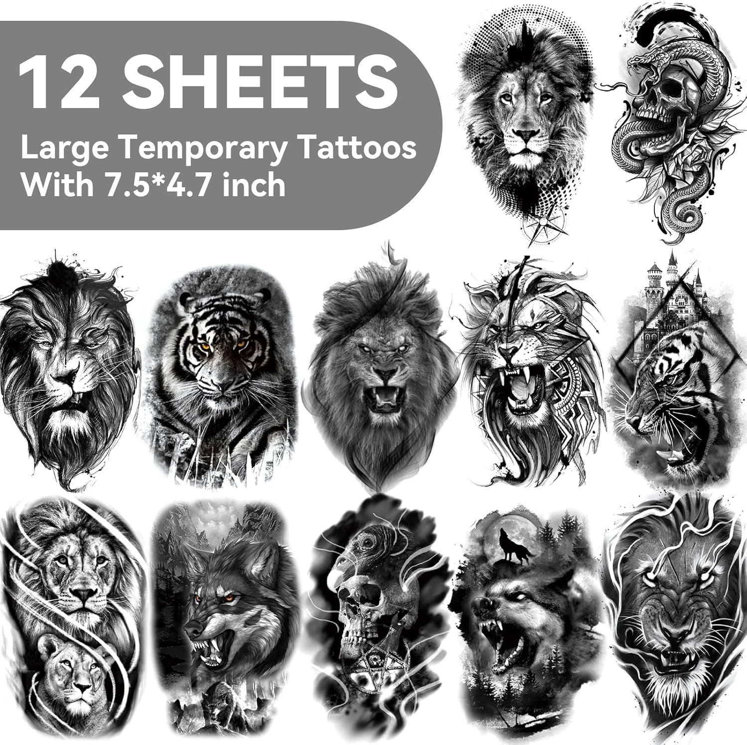 【200 stili di tatuaggi temporanei per adulti】 Una confezione contiene due dimensioni: misura grande 7,48 x 4,72 pollici e misura piccola 4,13 x 2,36 pollici. Manicotti neri per tatuaggi sull'avambraccio con molti disegni come leone, tigre, lupo, teschio, ecc. I tatuaggi temporanei più piccoli contengono molti elementi diversi. 【Materiali sani e facili da usare】 I tatuaggi per adulti sono sani, rispettosi dell'ambiente, indolori e sicuri da usare con molti tatuaggi temporanei. Sono facili da trasferire sulla pelle con acqua in 10-20 secondi. I tatuaggi temporanei sono facili da rimuovere, lavabili e possono essere rimossi con alcool o olio per il corpo. 【Aspetto realistico dei tatuaggi temporanei】 Questi tatuaggi finti sono molto realistici. Coloro che vogliono un tatuaggio, ma non hanno il coraggio di rischiarne uno vero, possono provare questo adesivo tatuaggio finto per godersi la bellezza dell'adesivo senza dolore. 【Ottimo per tutte le stagioni】 I tatuaggi temporanei di lunga durata sono adatti per quasi tutte le occasioni, come spiaggia, palestra, accompagnamento di feste, accessori per club, accessori per balli in maschera, costumi, moda estiva, festival, matrimoni, accessori per festival, vacanze, concerti, festival musicali, decorazioni per la casa, ornamenti, armadietti, artigianato, tazze, bottiglie, tavolo, scrivania, auto. Varietà di tatuaggi temporanei per adulti nel nostro negozio: siamo sicuri che troverai un tatuaggio temporaneo che ti piace nel nostro negozio! La nostra selezione spazia tra diversi stili e modelli per soddisfare tutti i gusti e le occasioni.