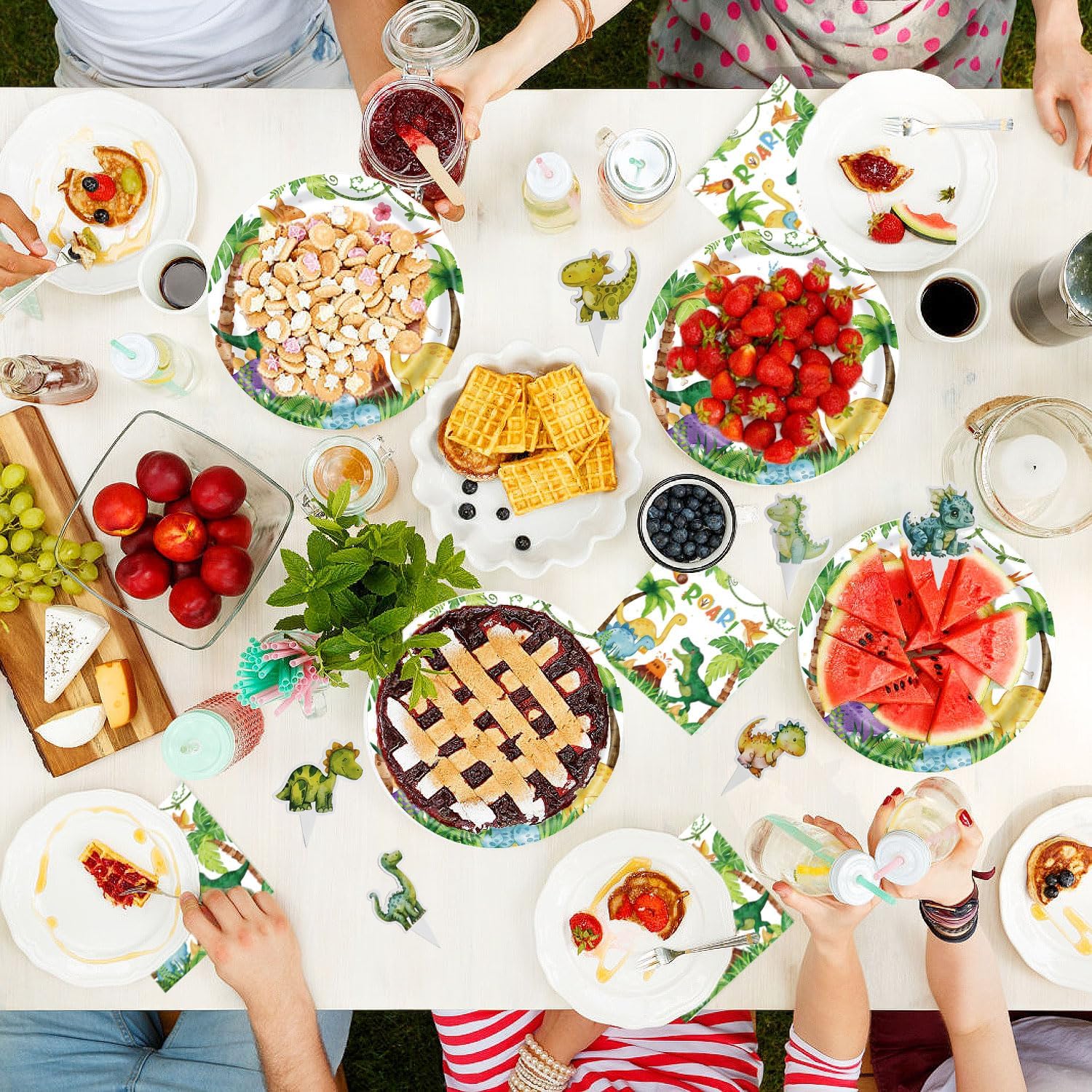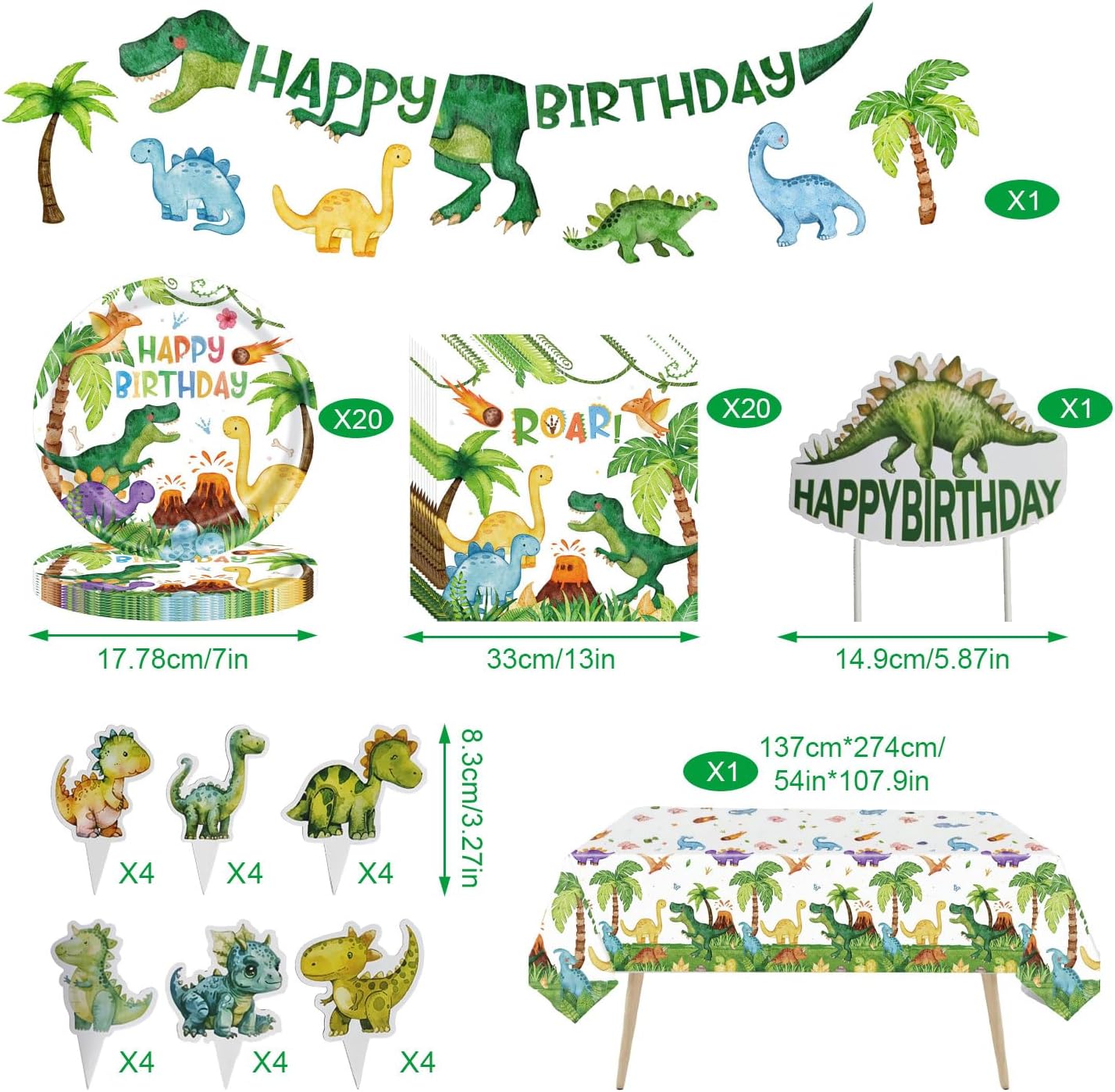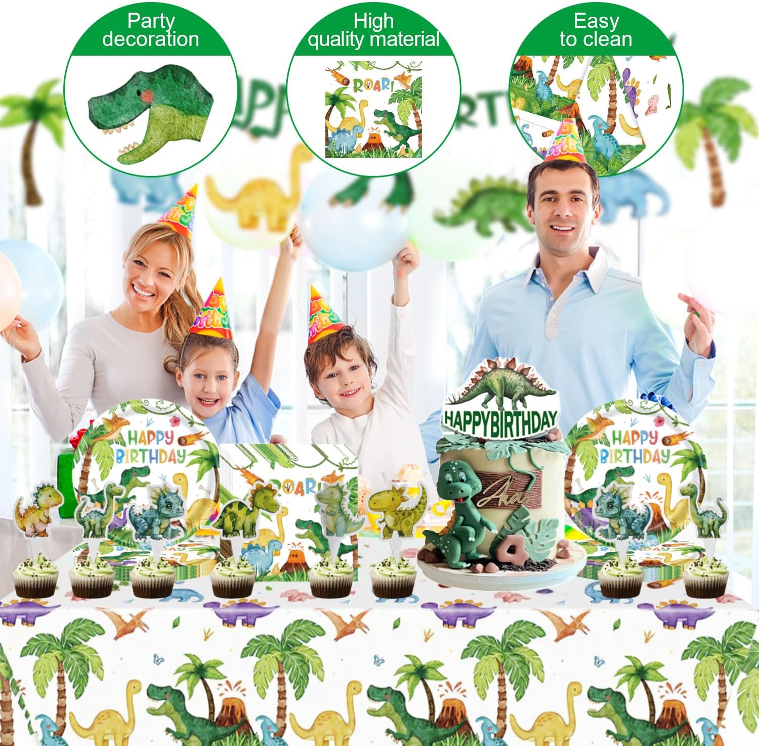 【Deco Festa Dinosauri】Kit Festa Compleanno di dinosauro adatto per 20 ospite. Le includono 1pc verde dinosauro banner, 1pc dinosauro grande cake topper, 24pcs dinosauro cupcake toppers, 20pcs 7 pollici Piatti Dinosauri Compleanno, 20pcs tovaglioli Compleanno Dinosauri e 1pc Tovaglia Dinosauri per Compleanno 【Materiale Alta Qualità】Questo set di Festa Compleanno stoviglie per dinosauri è realizzato in materiale di carta spessa di alta qualità, forte, durevole, non facile da strappare. Stoviglie per Feste di Compleanno adatto per contenere dessert, popcorn, caramelle,torte. 【Set Compleanno Dinosauri】Kit Festa di dinosauro presenta molti simpatici modello di dinosauro. Kit Party ricchi elementi di dinosauro per creare un'atmosfera divertente, aggiungere più divertimento e sorpresa per voi. Perfetto per una festa di compleanno a tema dinosauri per dinosauri. 【Risparmiare Tempo】Le Piatti Compleanno Bambino sono riciclabili. Kit Compleanno dopo l'uso, basta gettarlo nella cestino. Non c'è bisogno di spendere tempo ed energia in più per la pulizia, più tempo per la vostra famiglia. Goditi la festa dei dinosauri. 【Ampia Applicazione】Set Decorazioni Compleanno perfette per feste a tema dinosauri, compleanni per bambini, Natale, picnic, feste, barbecue, oggetti di scena per foto, decorazioni per tavoli e così via.