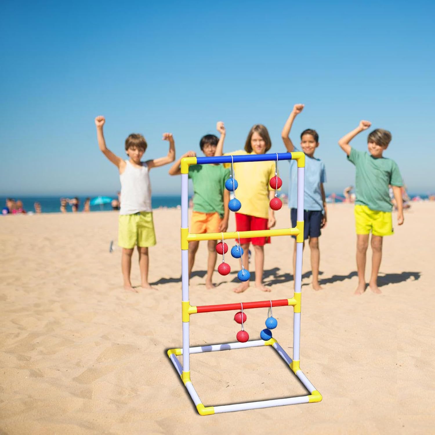 Composto da componenti di buona qualità e progettato per resistere a vento e pioggia Facile da installare e smontare, da trasportare Questo set di stand per equitazione con palline, adatto per intrattenimento all'aperto per luoghi all'aperto come cortili, spiaggia, aggiungendo divertimento e interazione Adatto per famiglie, riunioni di amici, attività di team building aziendale e appassionati di giochi all'aperto di varie età