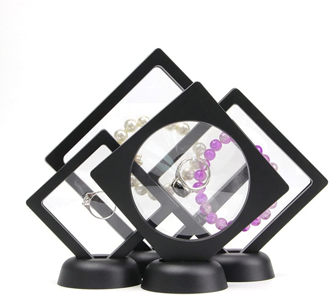 Sarà saldamente fissato dalla pellicola TPU quando l'articolo viene inserito nella scatola di visualizzazione. Pertanto, può essere visualizzato in tutte le direzioni proteggendo gli oggetti. Un film elastico vuoto è attaccato su entrambi i lati della scatola. Quando l'articolo viene messo nella scatola, sarà strettamente sospeso e fissato da due strati di film, in uno stato sospeso, senza agitare. Con uno stile moderno, porterà molto più attraente del normale. Fai sì che le persone prestino maggiore attenzione ai tuoi preziosi oggetti da collezione. Puoi mettere in esso i tuoi preziosi gioielli, medaglie, monete commemorative e altri oggetti, migliorando notevolmente l'effetto di visualizzazione 3D degli articoli, evidenzia l'alta gamma e la squisitezza, e può proteggere i tuoi oggetti mentre mostra i tuoi oggetti squisitamente, gioca il ruolo di anti-vibrazione, anti-usura, anti-polvere, antistatico e così via. Confezione: 6 pz telaio quadrato & rotondo interno galleggiante telaio espositore, nero, 90x90CM/3,5x3,5 pollici con 6 stand multifunzionali